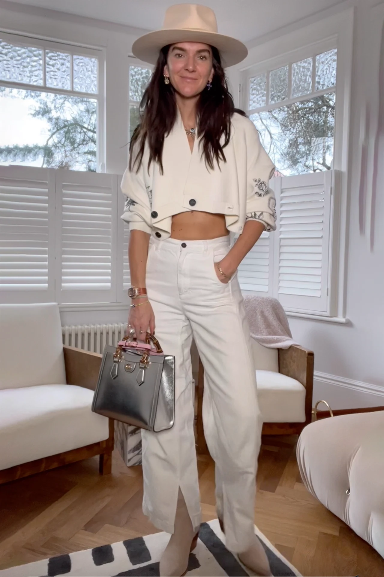 Saturday allows for a little downtime and a hotel stay in London. Even though the weekends are slower for me I still like to get up and dressed for the day whatever I am doing. For today’s outfit, I styled one of our new bodies (underwear as outerwear) with low-rise jeans and our classic Fedora trim hat. For date night, I’d layer this look with an oversized blazer or one of my husband’s shirts on top. For Sunday strolls, I’d wear it under a big knit.