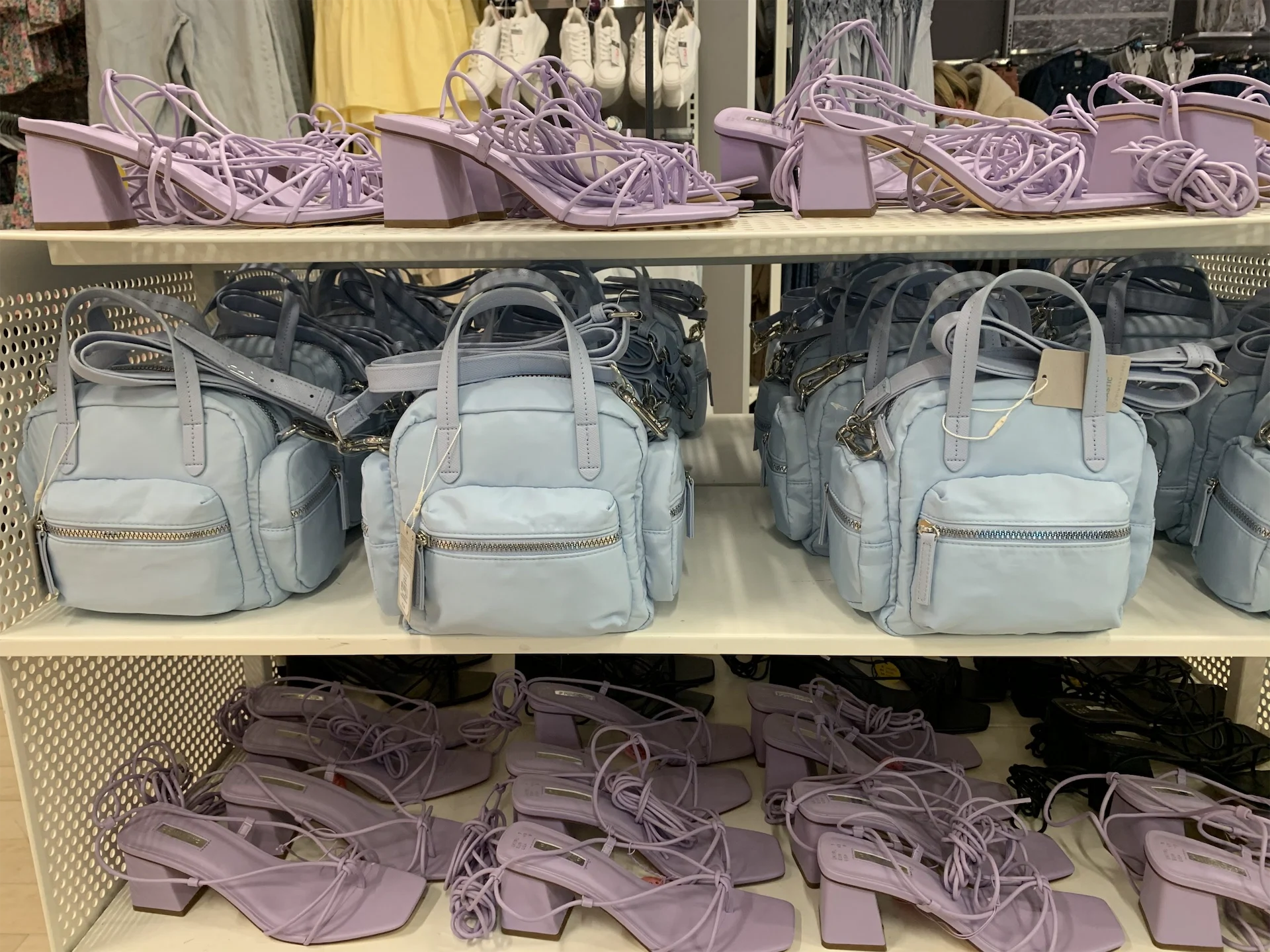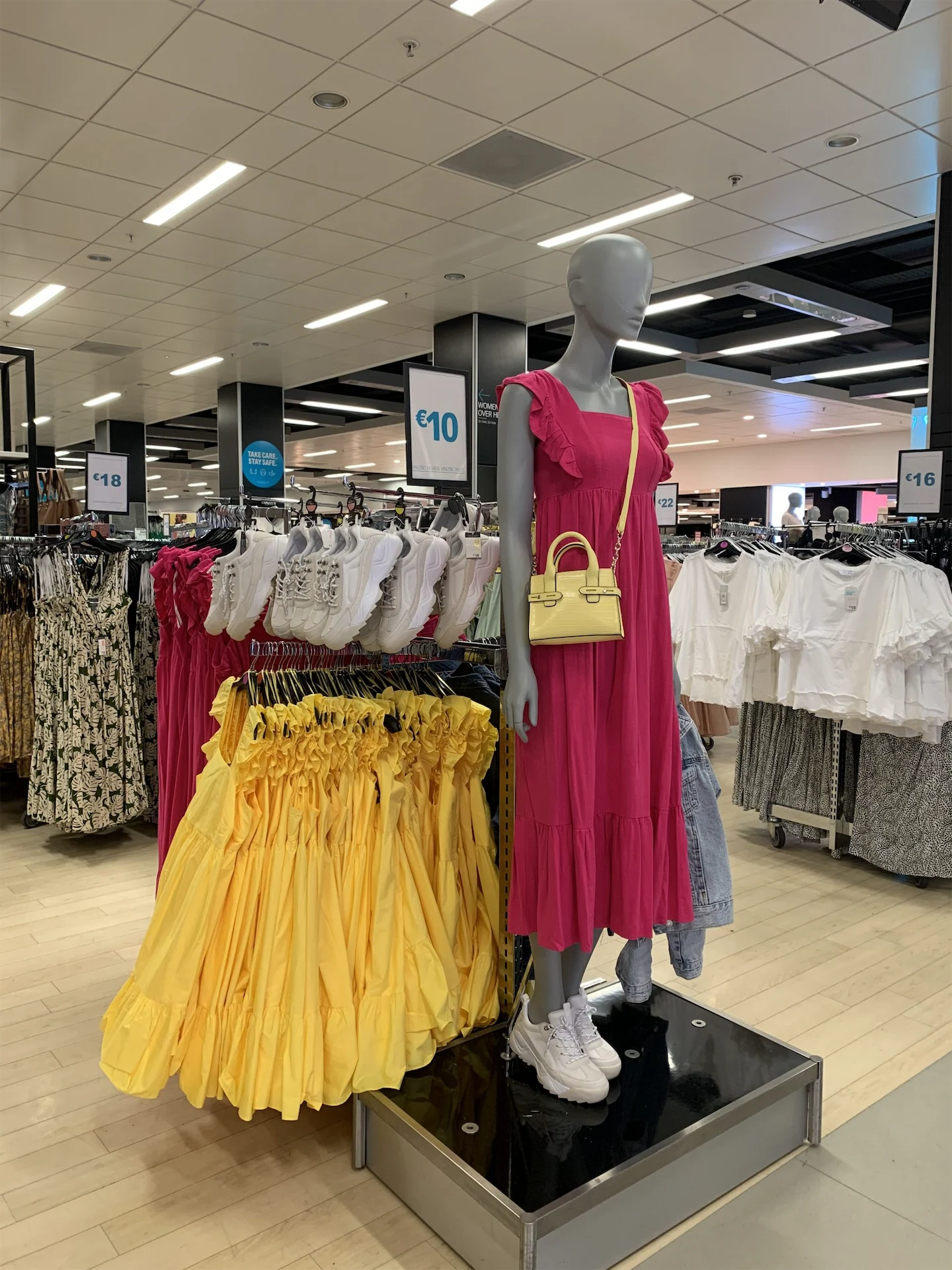 Only open for pre-booked appointment slots a handful of days, I was surprised (but probably shouldn’t have been) to see that sizes in lots of things had already sold out. Closed for much of this year, demand for Penneys stock is at an all-time high so don’t expect there to be three and four of everything. That’s not to say that the shop shelves are bare though, far from it in fact and there are racks upon racks of pastel-coloured summer attire. From strappy lilac heels to Clueless-inspired pyjamas, there’s plenty to choose from so fret not.