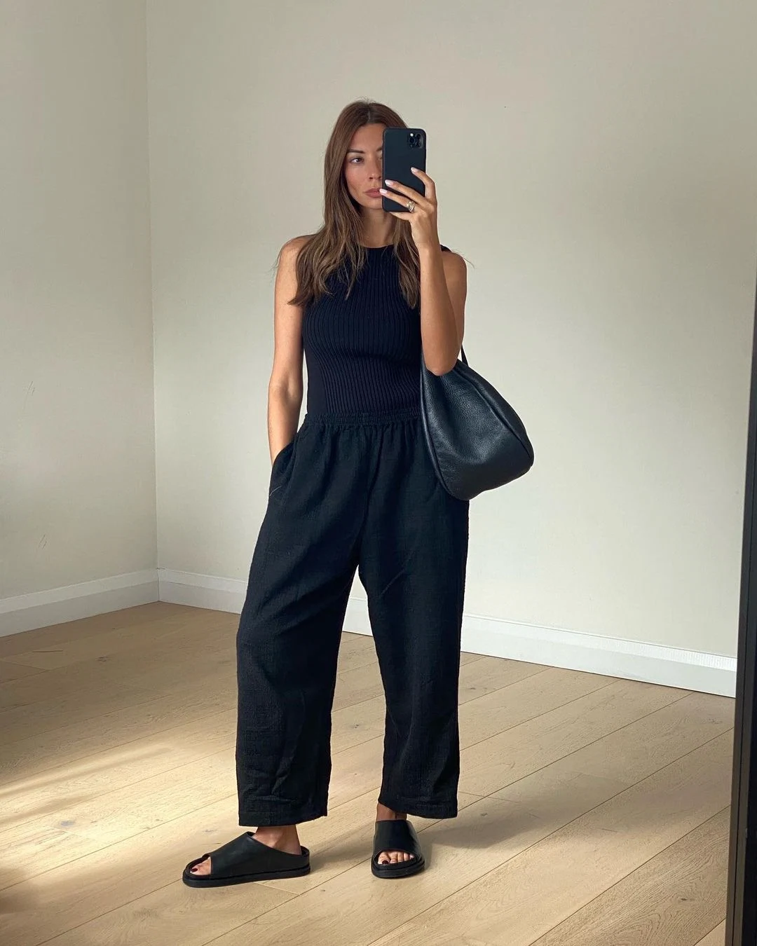 I’ve been wearing this black boxy over-the-shoulder bag all summer long.
