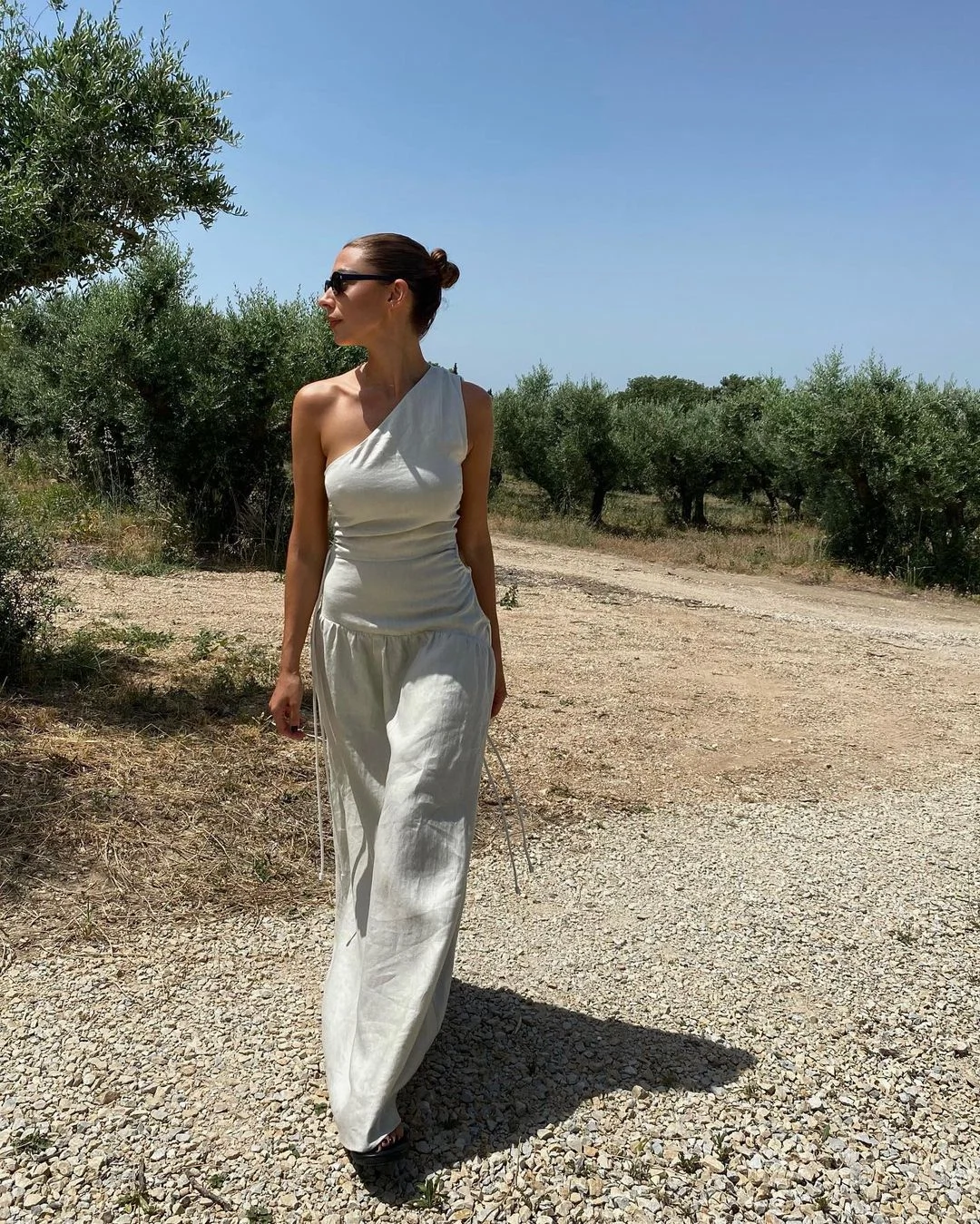 There’s no doubt about it, I love a knitted cream dress in the summer. This elevated dress via Jigsaw looks very high-end. I would balance the dress with chunky sandals for a more laid back look.