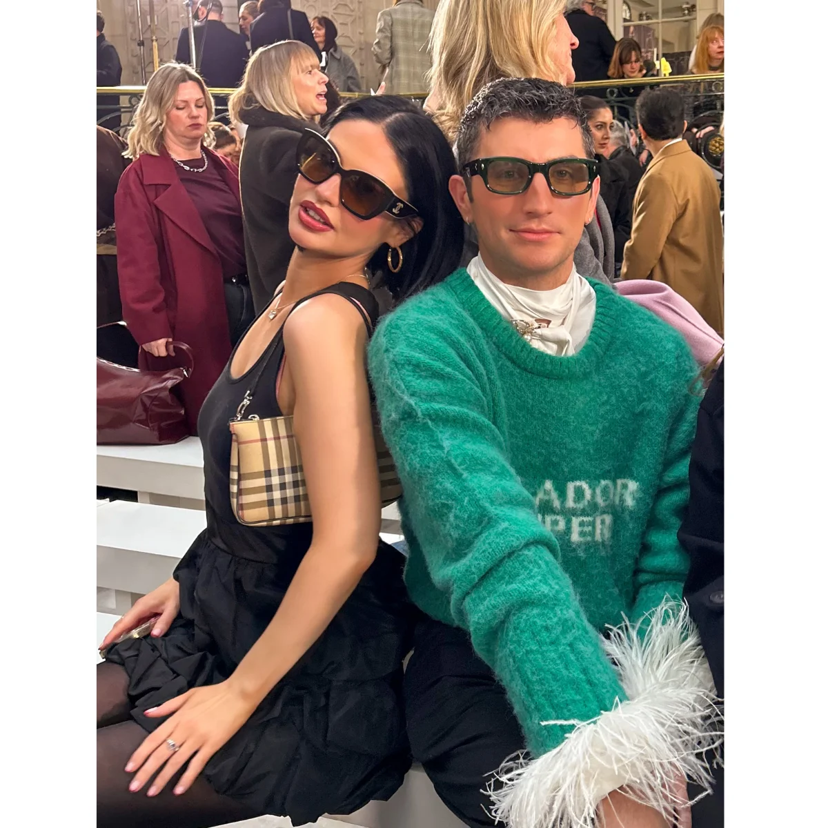 By this point, I had admittedly run out of big outfit energy and was feeling the exhaustion of the week, so I kept things more relaxed. I wore cream JW Anderson jeans with a blue striped JW top, paired with a new Zara leather jacket and, as seen earlier in the week, my Ganni cap. Róisín was also championing Irish design in a ruffled denim top by AOIFE.