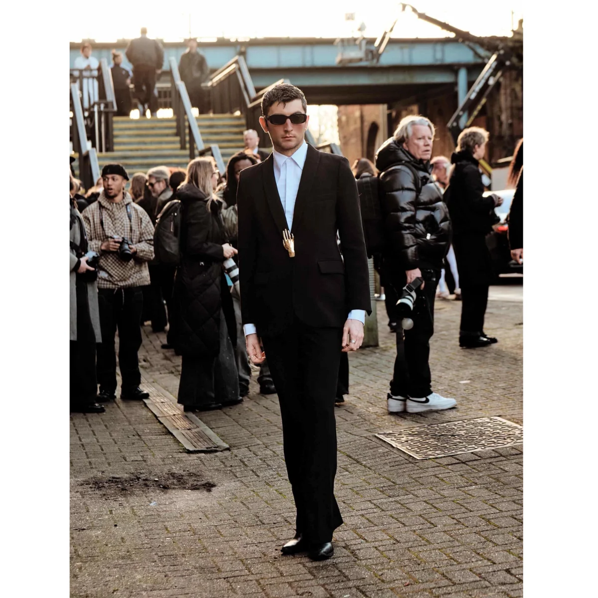 Taking subtle inspiration from Jonathan Anderson’s debut Dior menswear collection, I finished the look with a Dior brooch, vintage sunglasses sourced from Brick Lane Market last summer which are a fashion week essential, while tailored Stradivarius trousers and my forever-reliable loafers from Schuh grounded the look. And, of course, I brought the incomparable Olivia Spuds as my plus one, fresh from her cameo in Netflix’s America’s Next Top Model documentary.
