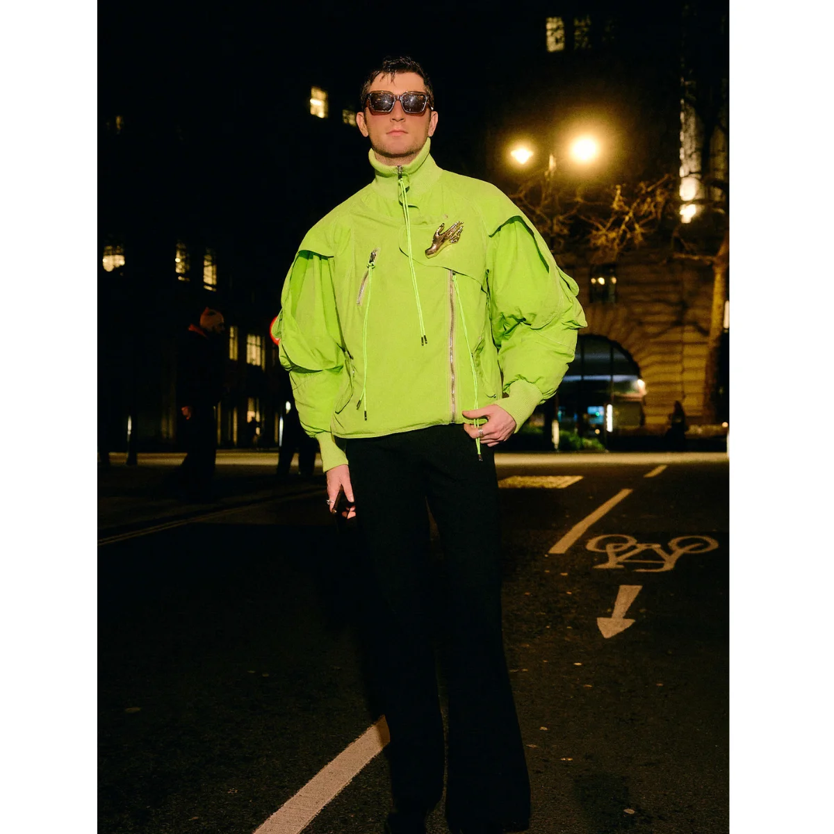 Later in the evening, I attended the Charlie Constantinou show at 180 Strand. I hadn’t planned a change of clothes, but thankfully Eoin had overpacked and lent me a stunning Colin Horgan jacket, along with a quick sunglasses switch. I was genuinely delighted, as it meant I could continue championing Irish design, especially from Colin, who is such a talent.