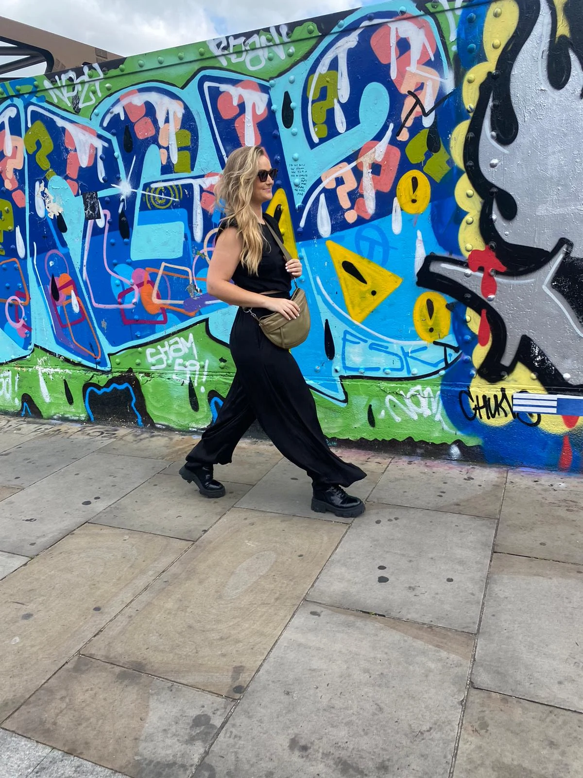 Today is an admin day. All black to match the mood of having to catch up on emails, invoicing, excel sheets and lots of behind-the-scenes planning shoots and styling clients! It’s not all beautiful clothes and fun days on set. I’m always in a flowy pair of trousers or a skirt. These black wide-leg trousers are from Zara many moons ago and have served me well as a solid go-to. I’ve paired them here with a plain black crop top and sunnies from & Other Stories. This look is easy and put together for popping around town in between emails. My bag is also & Other Stories. They do really great leather bags that get even better with age. You will always find a pair of black chunky boots in my wardrobe. These are from The Kooples but I recently picked up a new pair from All Saints, both of these would be my first point of call when it comes to great leather biker boots. I love to pair my biker boots with girly feminine dresses in the summer too to add some edge.