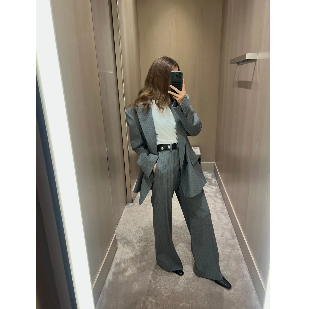 Tuesdays always feel more like Mondays to me, but they’re also when I really get into the flow of work. Between wardrobe updates and occasion-wear appointments, I find that a sharp suit is the ultimate way to feel put together and ready for anything. This oversized grey suit is from The Frankie Shop, paired with a simple white tee from COS – truly the best €35 you’ll ever spend! Finished it off with a Khaite belt and boots.