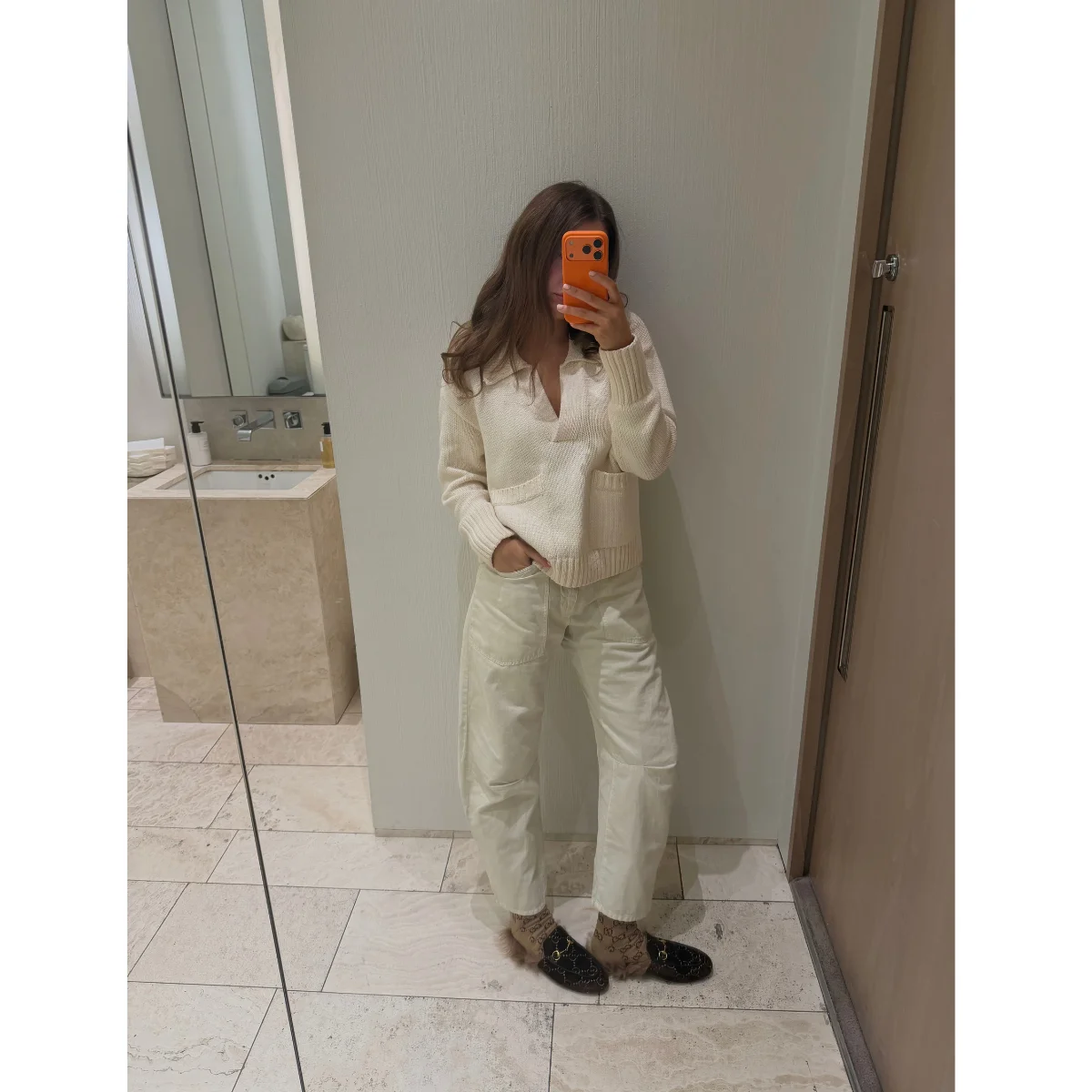 One thing I picked up in 2025 is my newfound love for colour blocking. Creams on creams, chocolates on chocolates, I just think it’s the easiest way to look like you know what you’re doing. I’m wearing a Zara jumper I snagged in 2021 during Covid, my Nili Lotan Shon cargos that I just cannot seem to take off, and a little Gucci moment down below with these cool Princeton loafers with fur from Vestiaire Collective. I love collecting pieces that not many others have, and my cosy Gucci socks (a very generous gift from a client) are the perfect finishing touch.