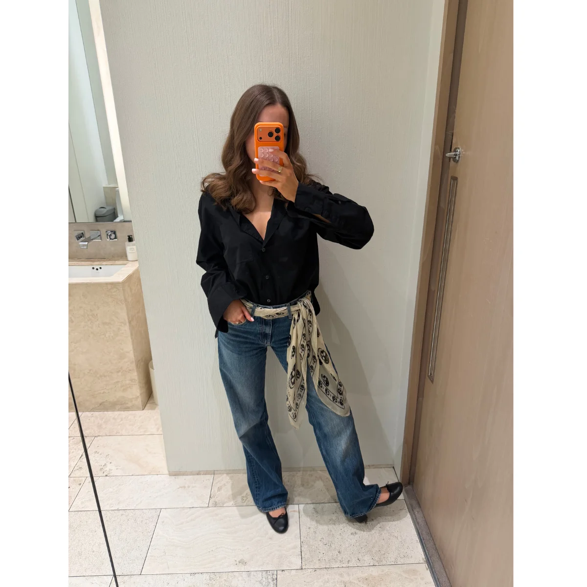 I always find myself in something clean and easy on a Monday. I recently picked up this crisp black shirt from The Frankie Shop, and I never knew how much I needed a black shirt until now. I have been wearing it at least once a week since I got it in Paris, along with my cute little Repetto ballerina pumps. These have been on the wishlist for so long, so I’m thrilled to be incorporating them into my SS26 outfits. I finished with Zara true blue jeans, and to make the look more Megan, I’ve added my mum’s vintage Alexander McQueen silk scarf around my waist as a belt. A super easy but chic look to get all my jobs done on a Monday.