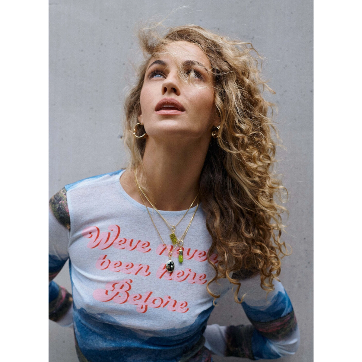 Inspired by years of travelling the world with her modelling work, this collection plays with textures and mixed metals, even drawing inspirations from her late grandmother’s locket. Paying homage to all these inspirations in the hope that you can create your own story from these pieces, it’s the charm necklace that truly grabs attention.