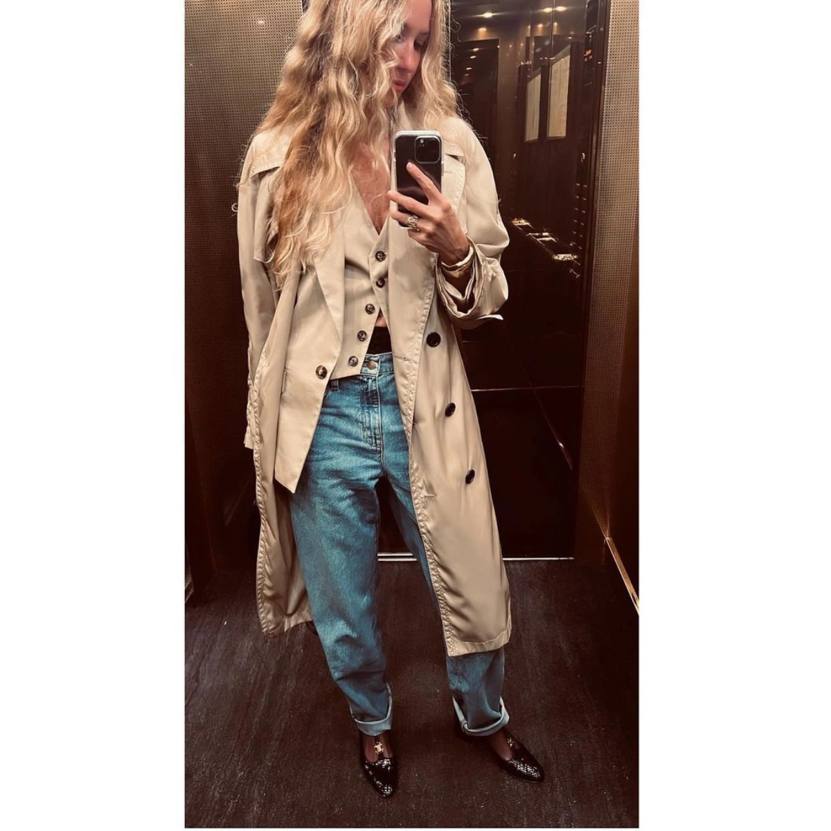 A trench, a waistcoat and a pair of loafers