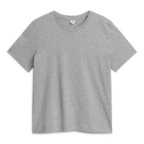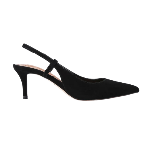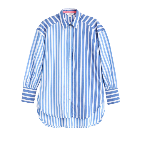 A poplin shirt, a midi skirt and pointed shoes
