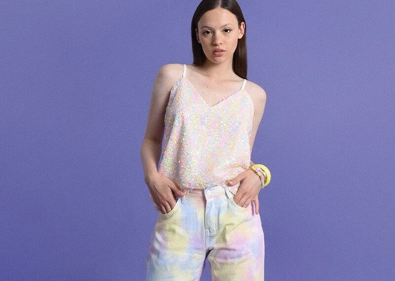 From tie dye jeans and sequin camisoles to floaty tiered dresses and block colour jumpsuits, these items will help you express vitality through your clothing, and blend style and comfort together for when you’re stepping out under the sun.