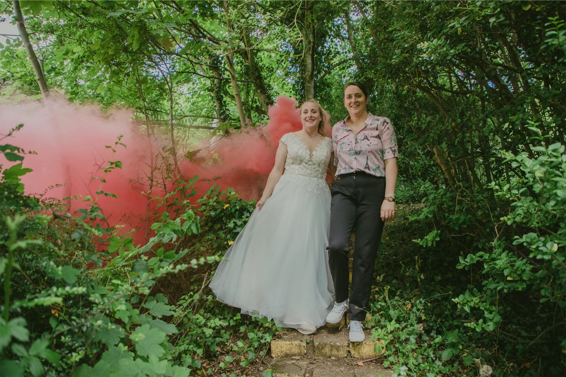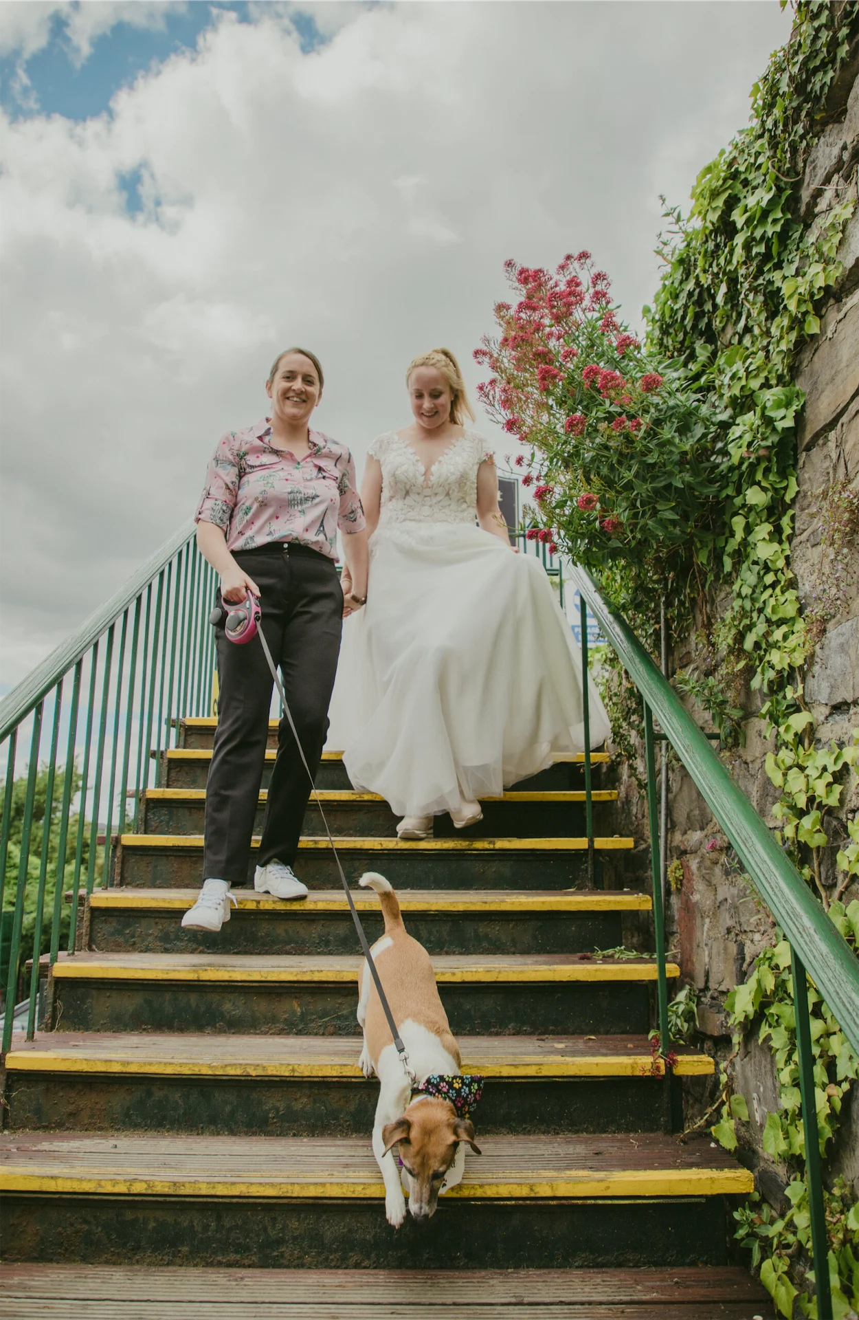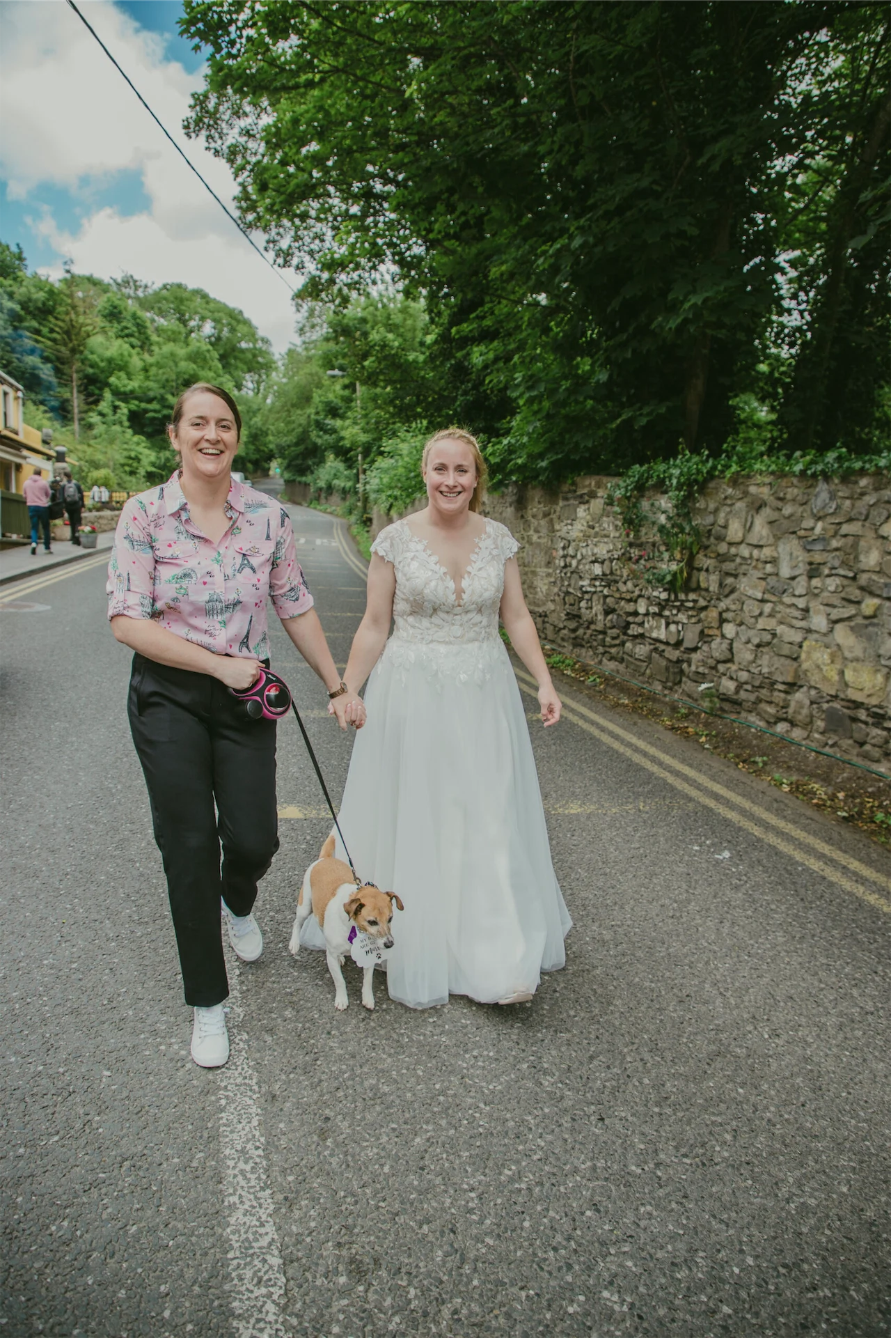 Opting for a low-key wedding with elegant touches, Amy and Lisa celebrated their big day at The Anglers Rest in Chapelizod. Their beautiful photos were captured in the nearby Phoenix Park with their adorable dog Buttons.