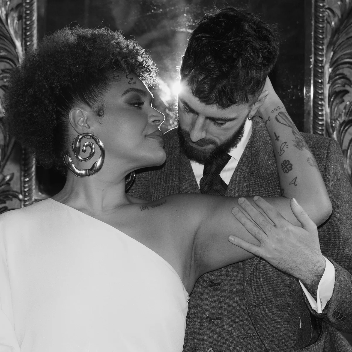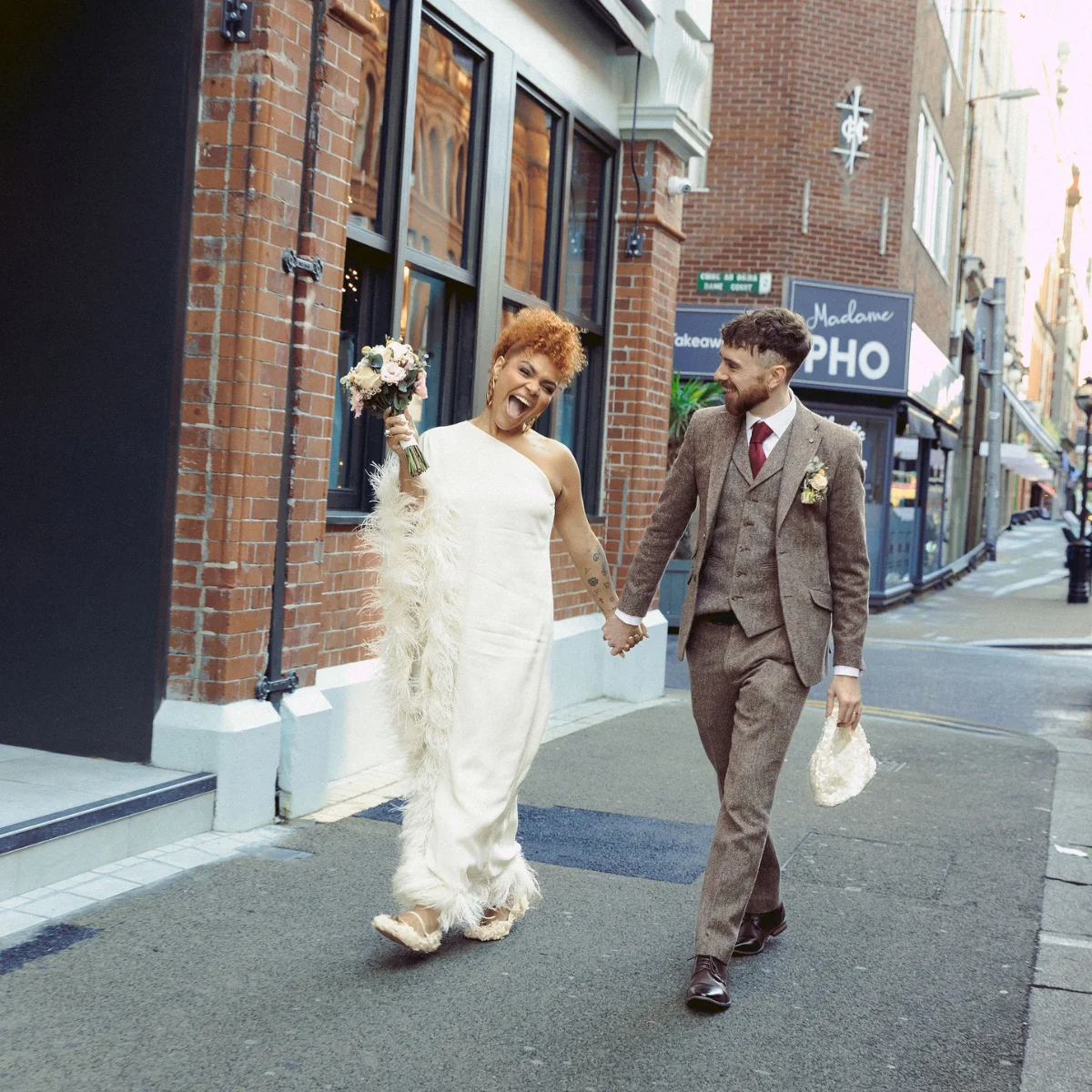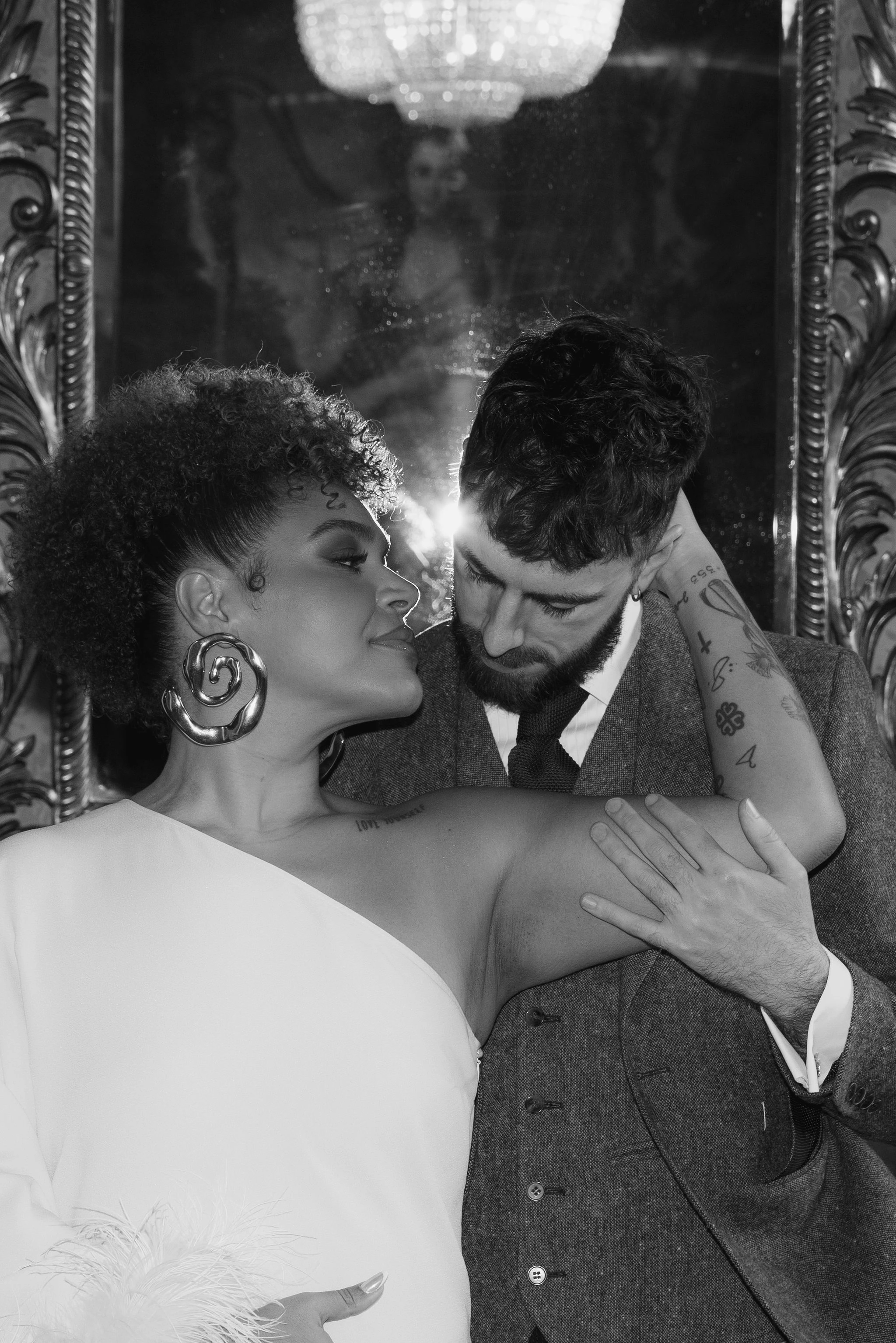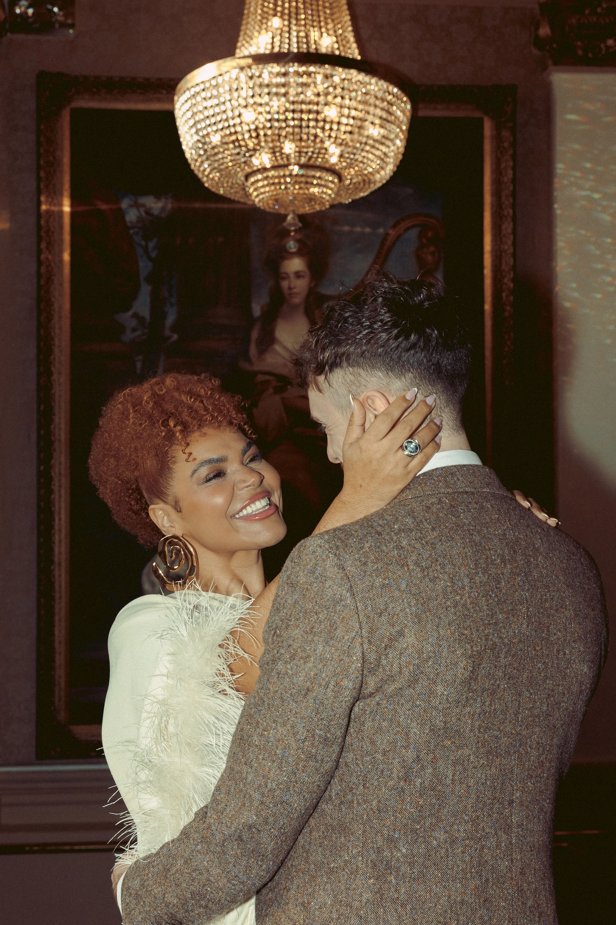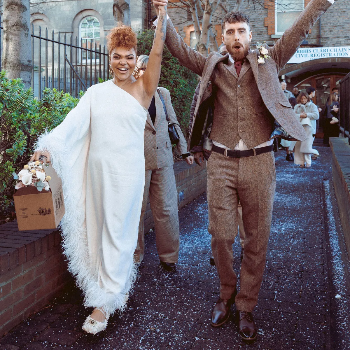 Hair: Rendy Hair. Make-up: Adrianna Dryniewicz. Wedding creator: Jess Andie. Bouquet: The Garden. Bubbles: The Hoxton. Food: Fallon & Byrne, Podoca, and Bambino. Dress: Taller Marmo at Hurr. Suit: Tangos. Cake: Cake Me! By Claudia Medeiros. Afterparty: The Bar With No Name.
