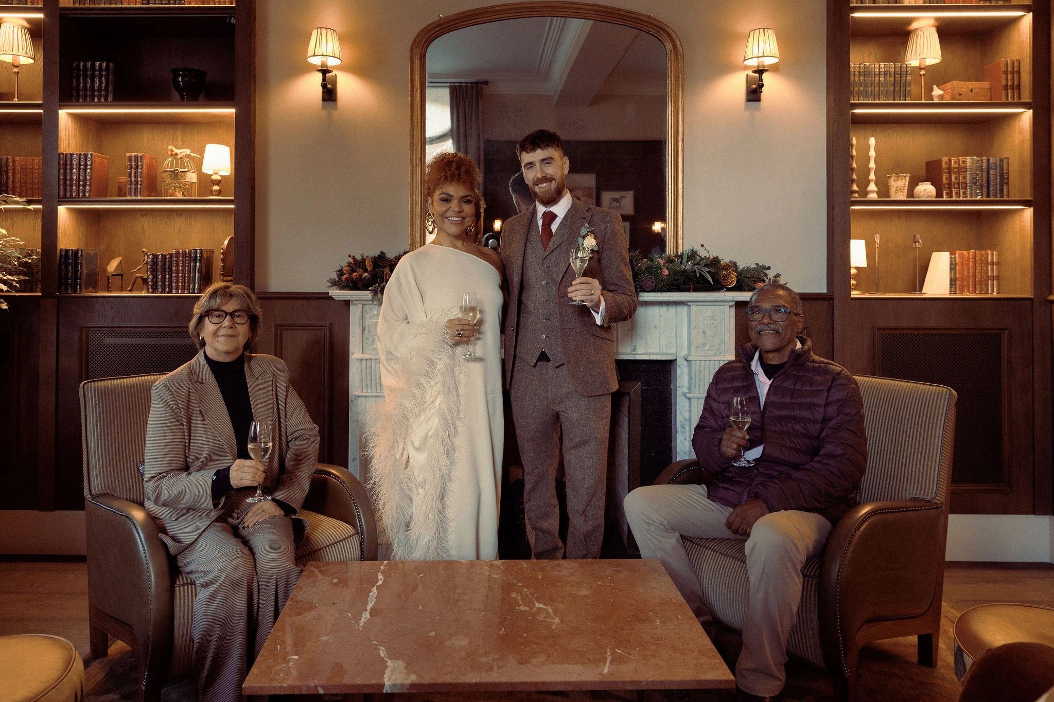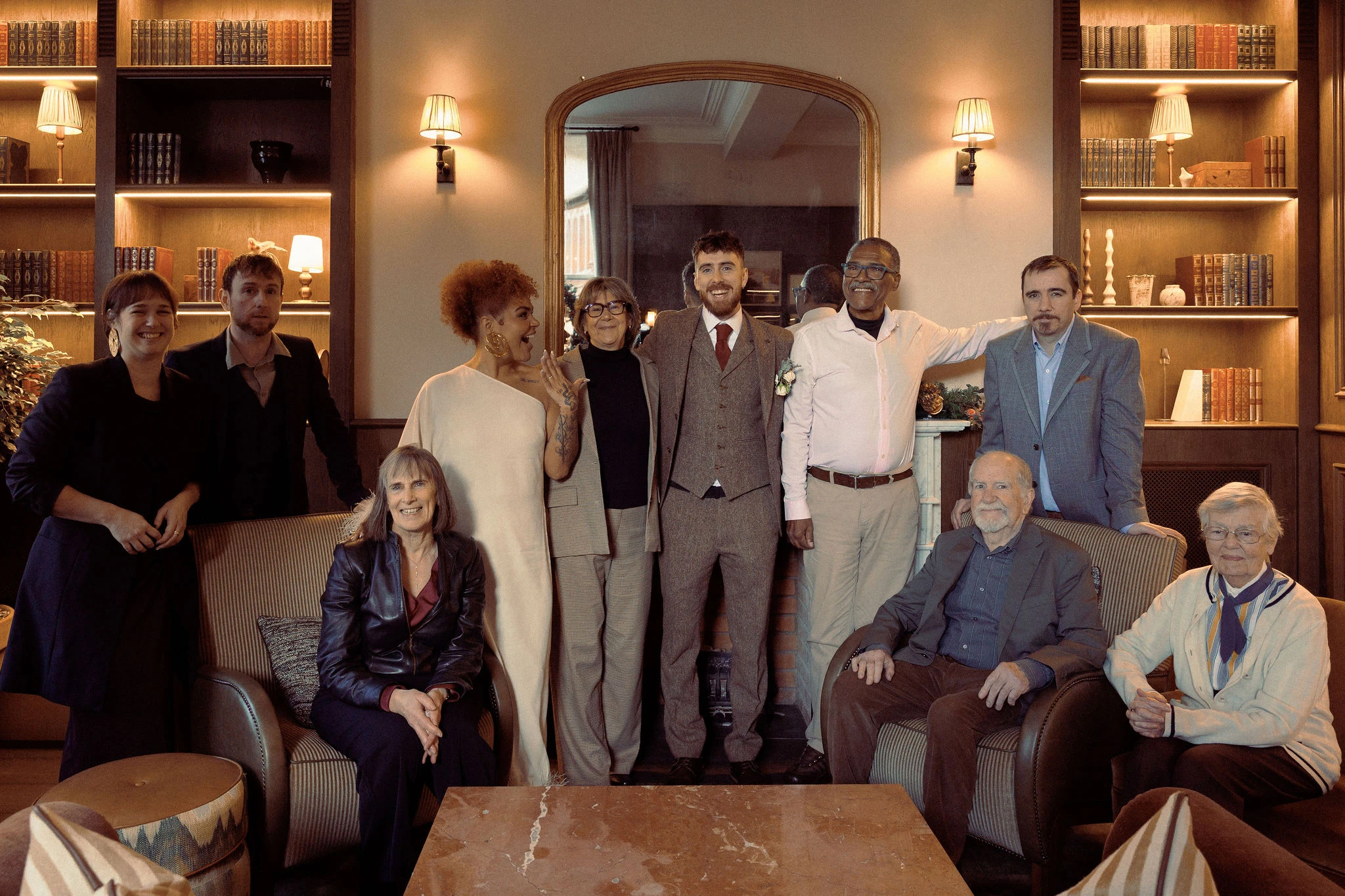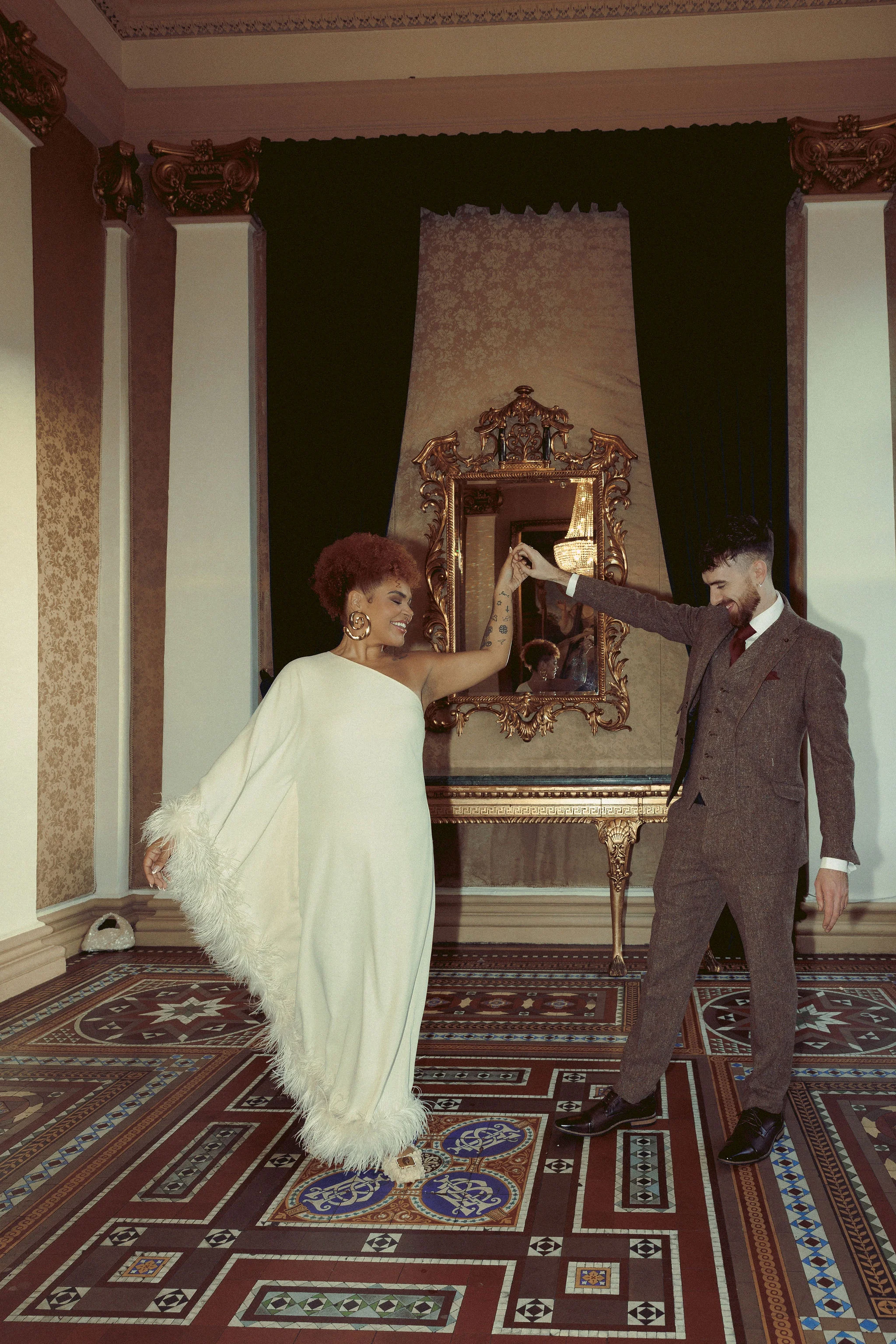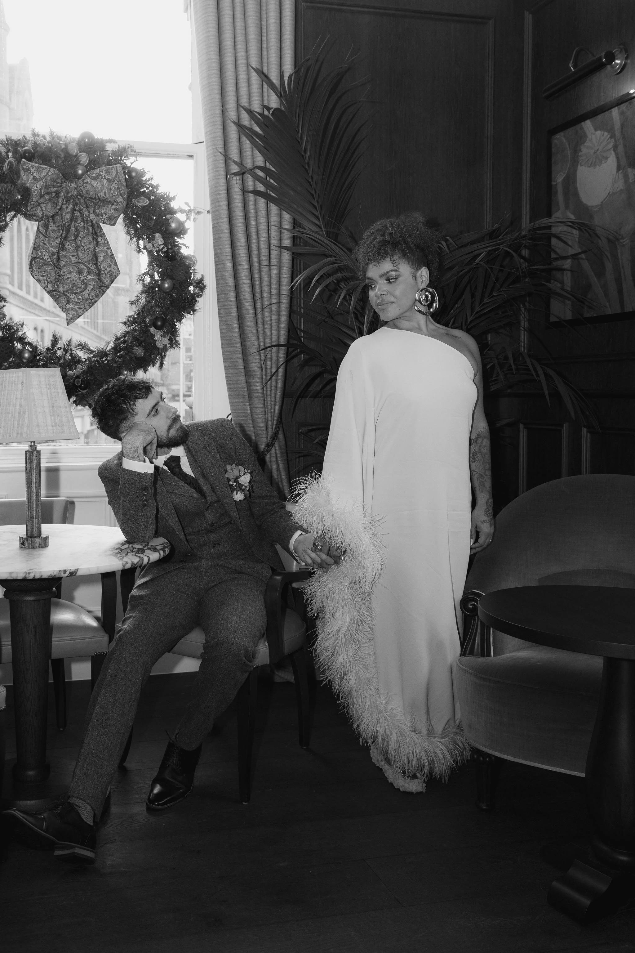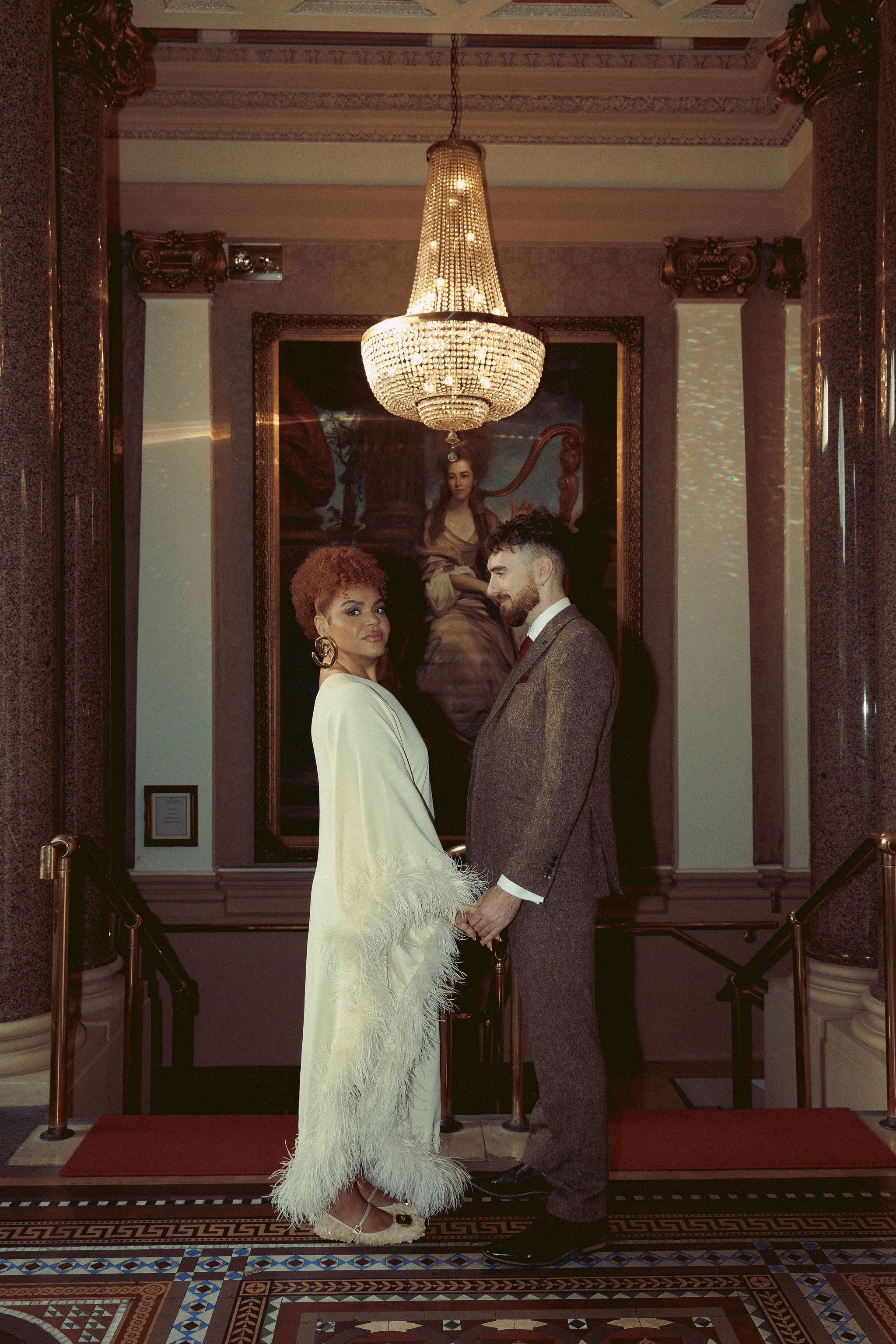 Hair: Rendy Hair. Make-up: Adrianna Dryniewicz. Wedding creator: Jess Andie. Bouquet: The Garden. Bubbles: The Hoxton. Food: Fallon & Byrne, Podoca, and Bambino. Dress: Taller Marmo at Hurr. Suit: Tangos. Cake: Cake Me! By Claudia Medeiros. Afterparty: The Bar With No Name.