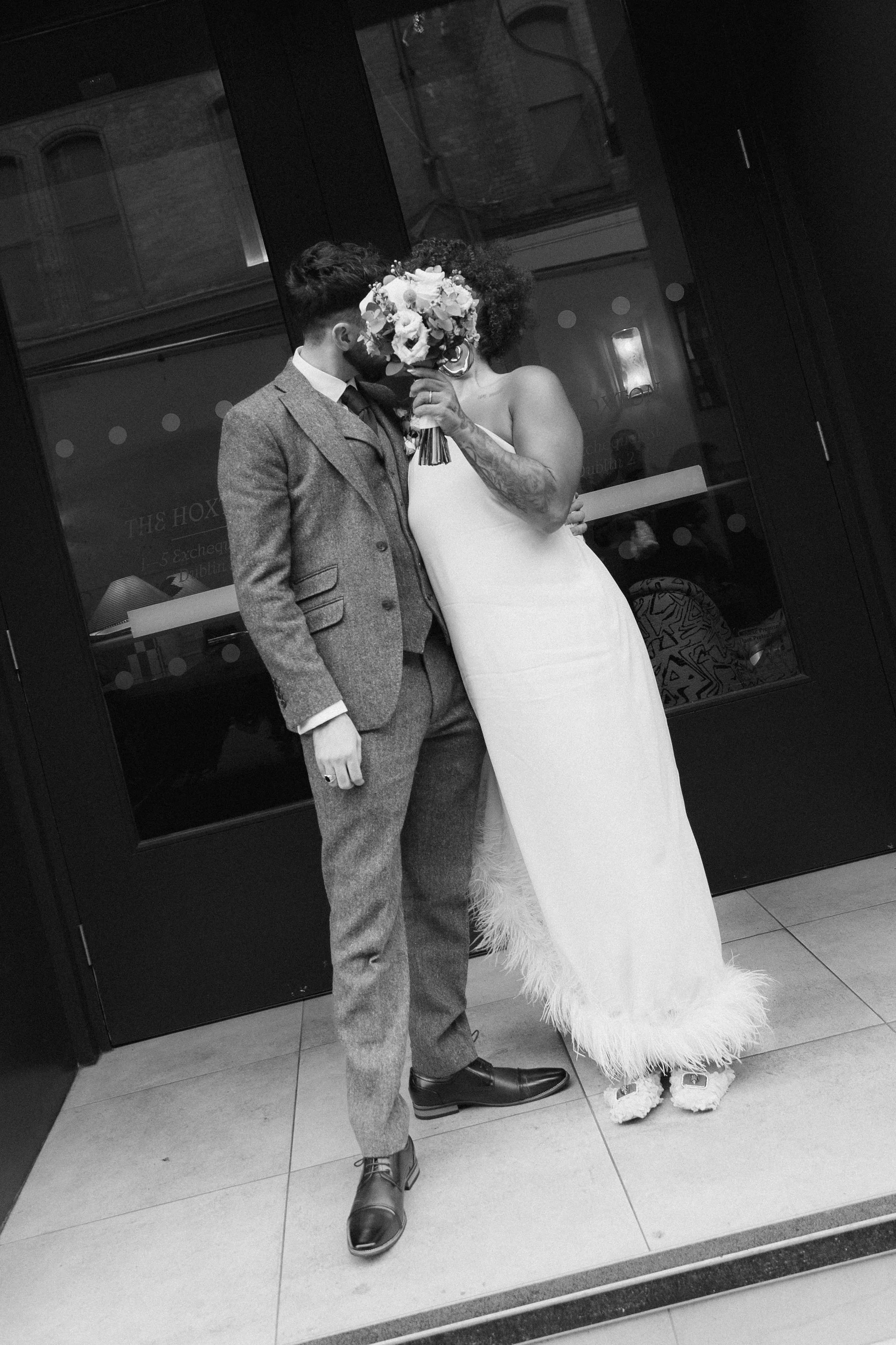 The original plan was to go from the registry to our lunch with no stops in between, but my lovely mother-in-law, Hellen, suggested having a prosecco hour nearby so we could do speeches, take family pictures, gather everyone together for the big congratulations cheers, and she couldn’t have had a better idea. It was perfect! The Hoxton Hotel accommodated us perfectly at their ground-floor bar. The staff were really helpful, and we couldn’t recommend them enough.