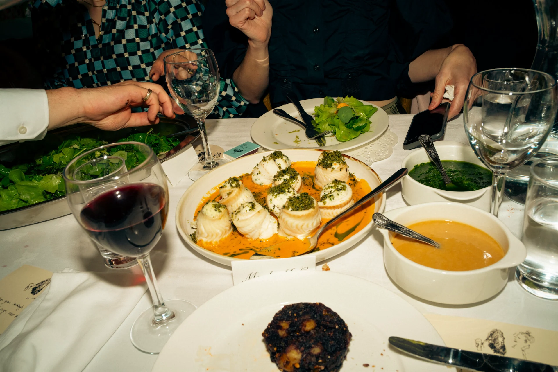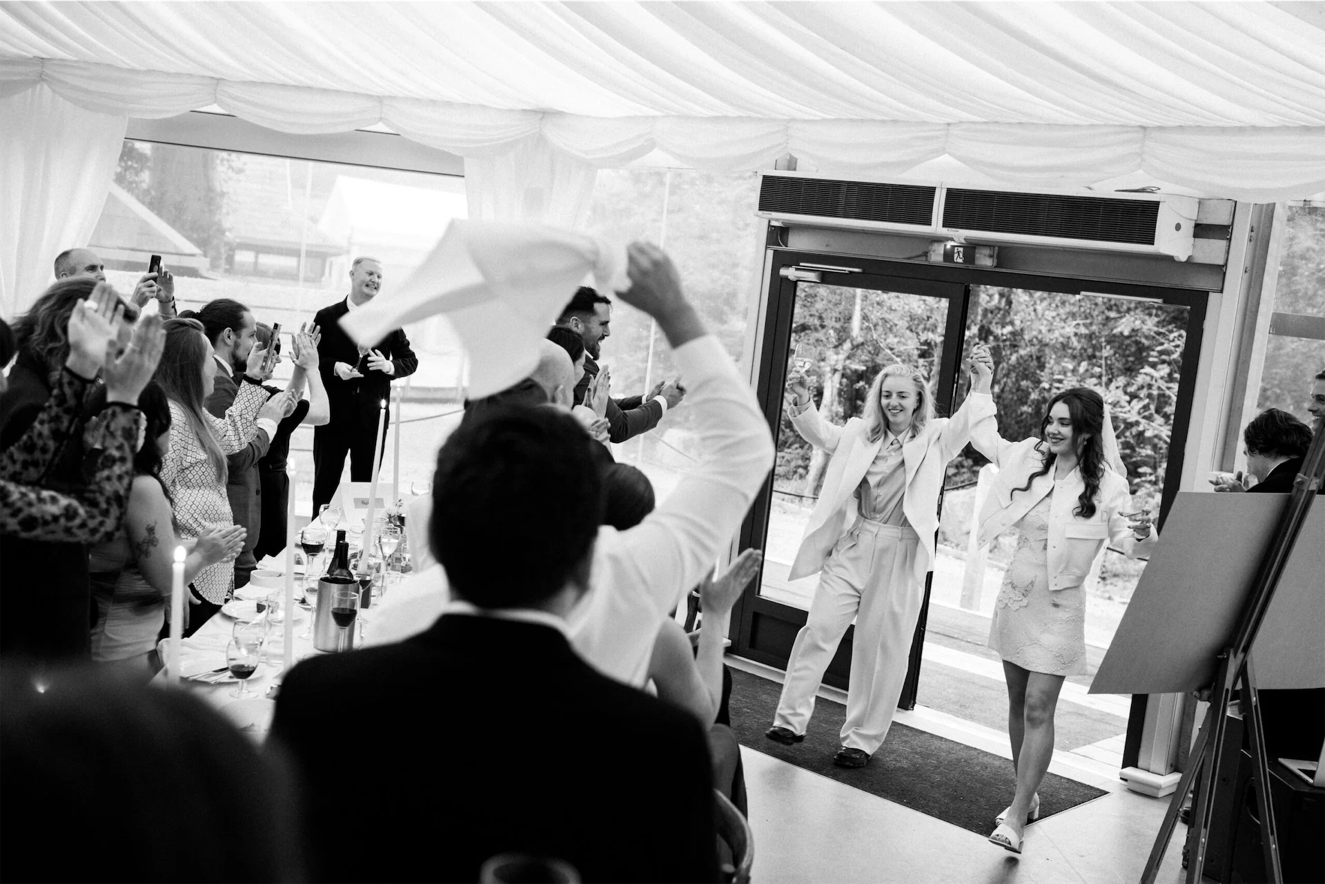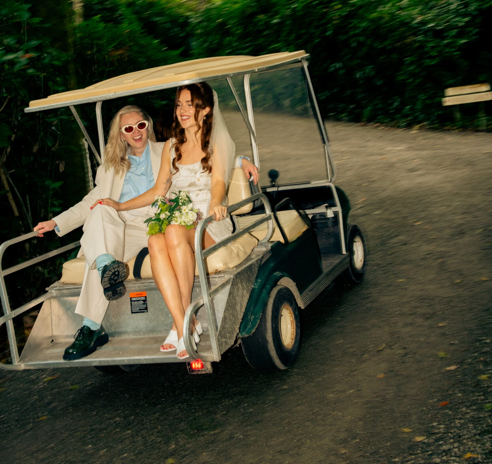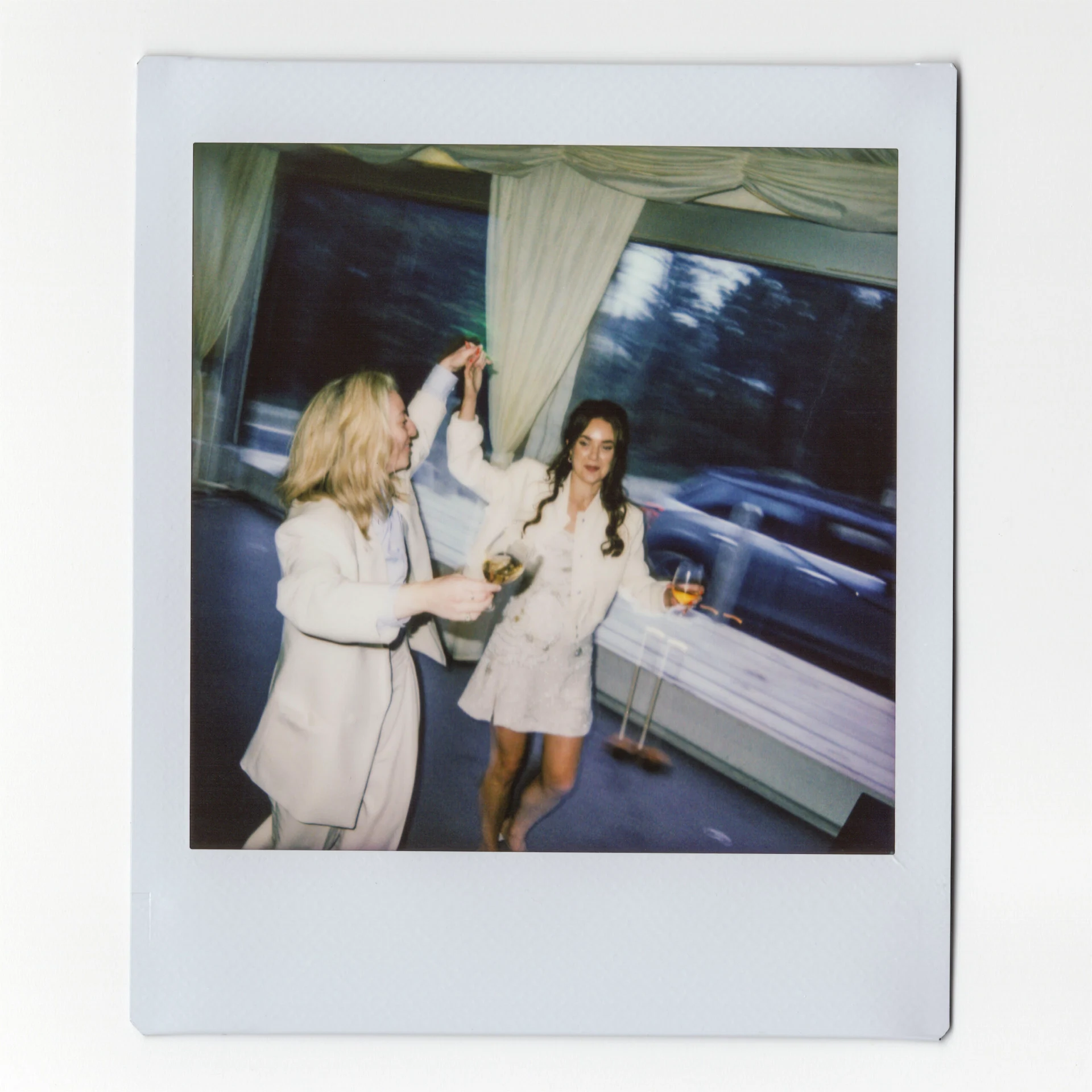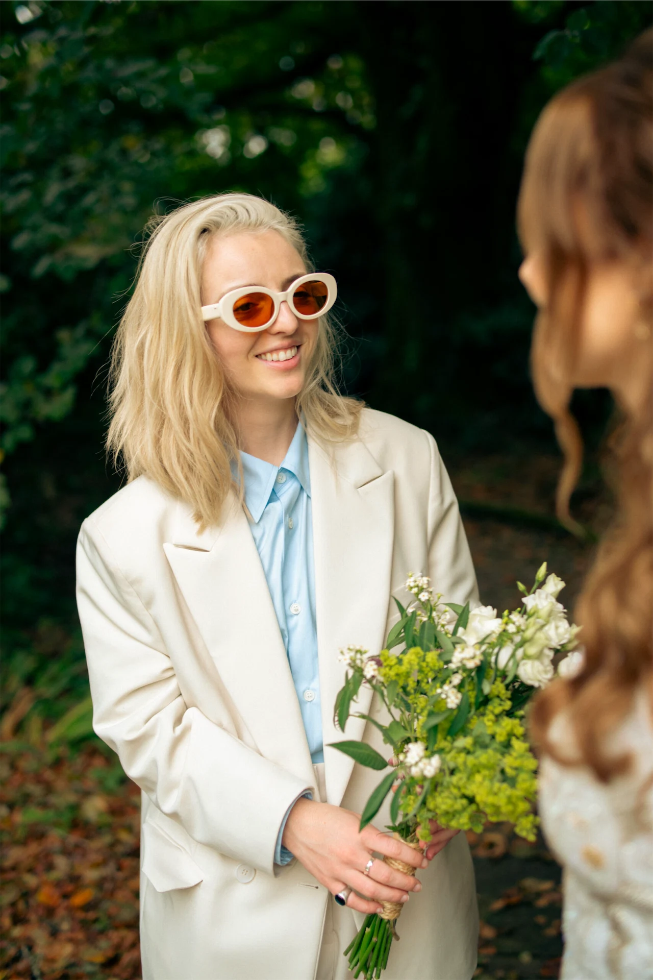 I wore a dress from Clio Peppiatt and Dee wore a suit from The Frankie Shop and Dries Van Noten.