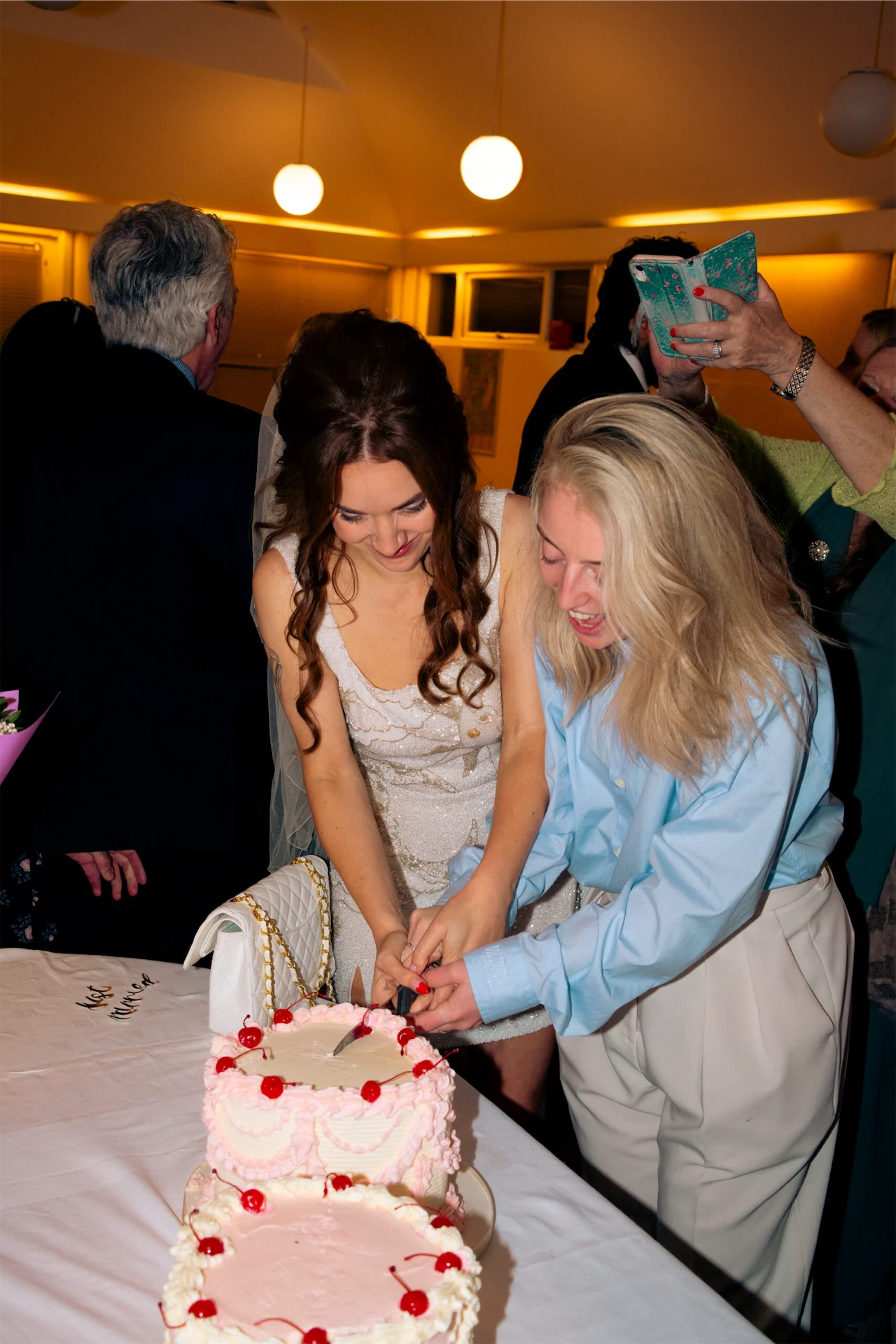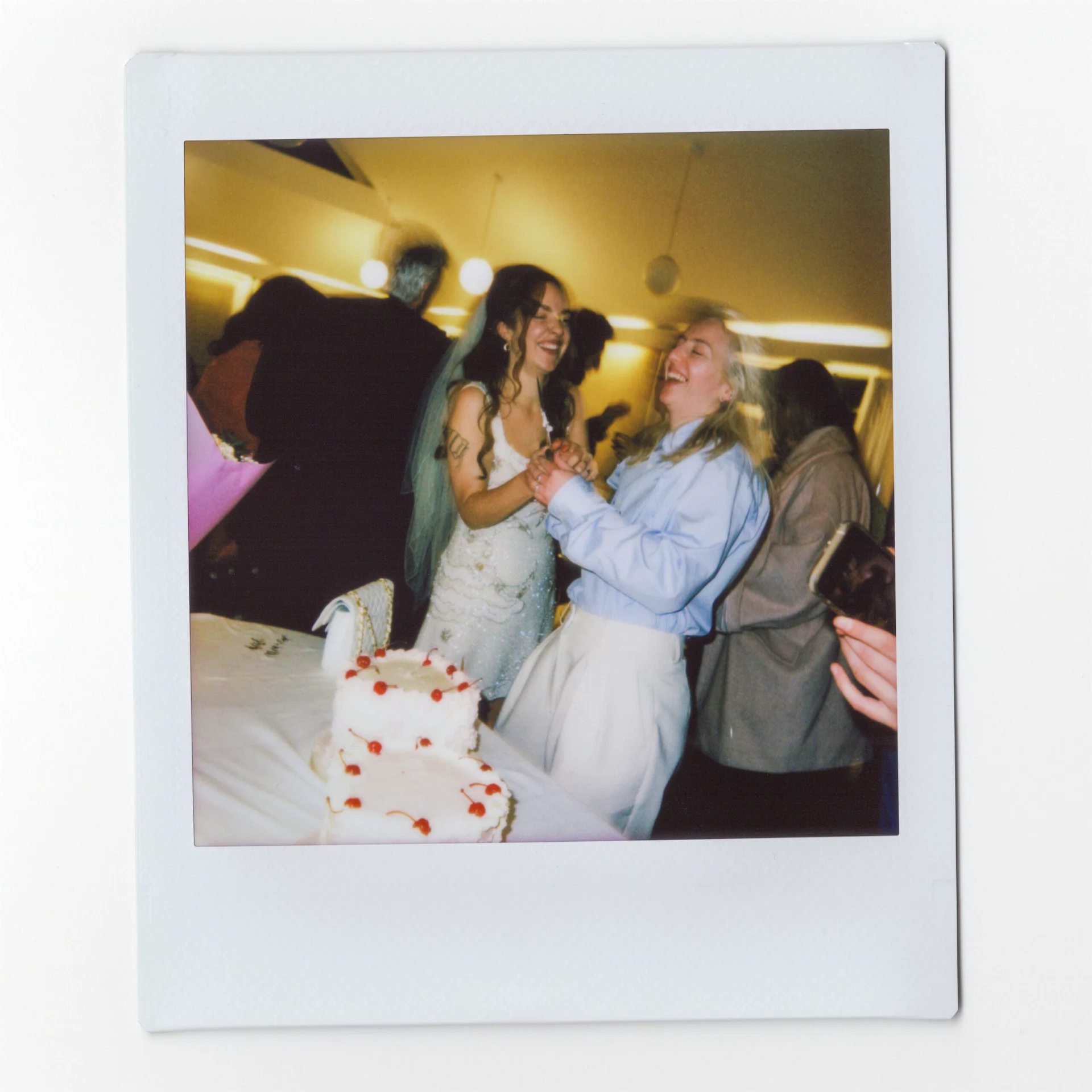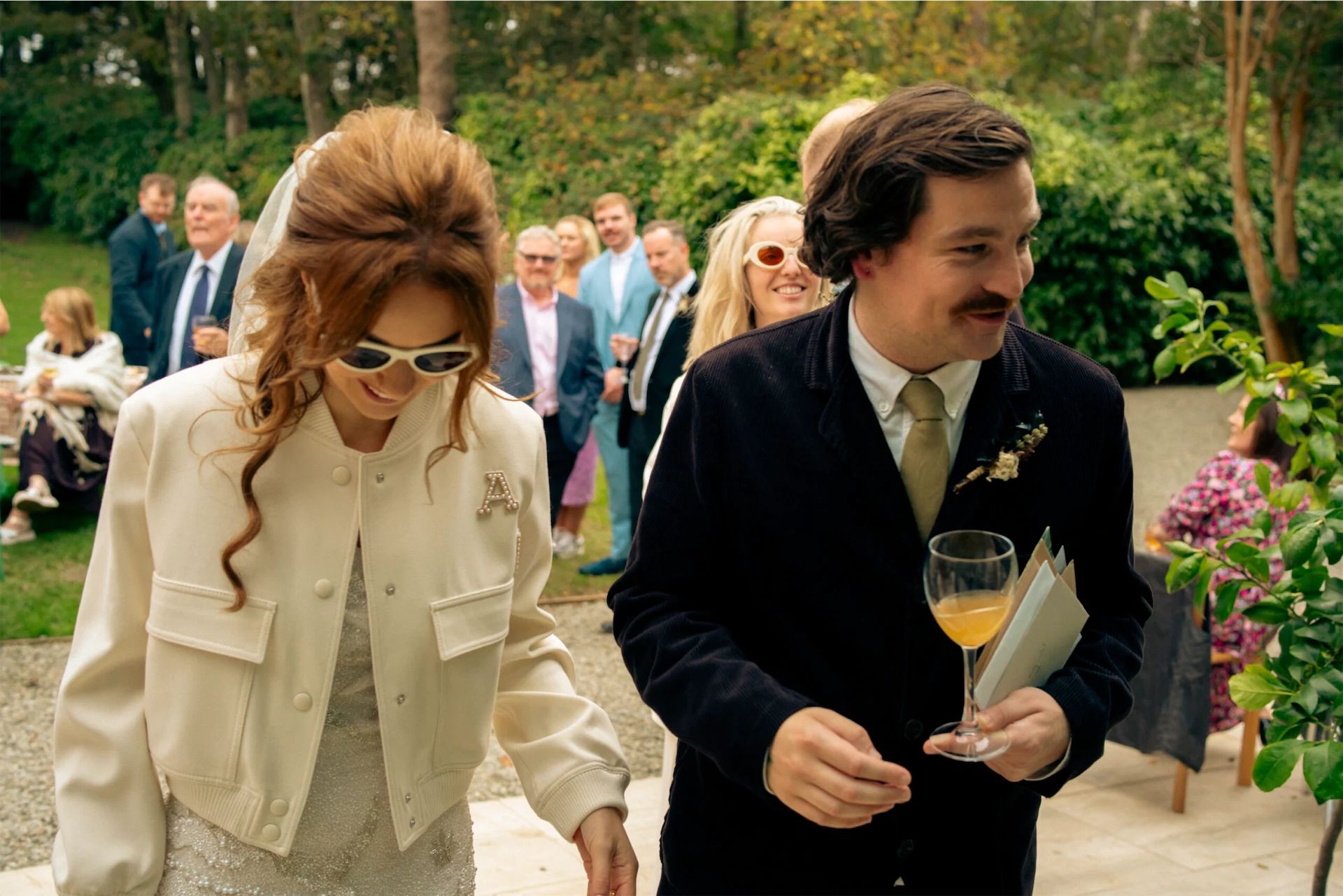 Wedding Dress: Clio Peppiatt. Wedding Suit: The Frankie Shop and Dries Van Noten. Cake: Lily Pink Bakery. Hair: Molly Farrell. Catering: Mark and Sadie, formerly of Pilgrim’s. Band: The Birdmen.