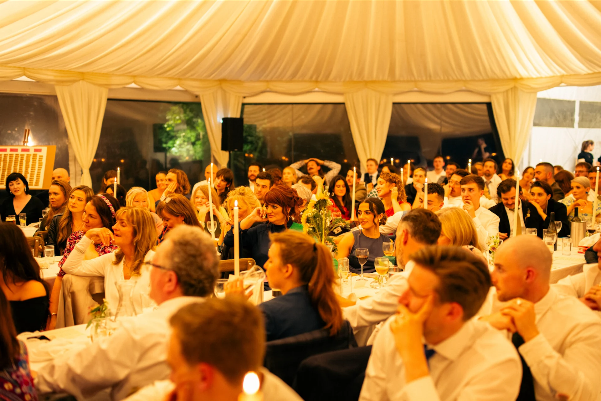 Dee designed cute matchboxes and beer mats for the bar using a sketch an American tourist drew of us in the Cobblestone. Our friend Niamh made us canvas signs to dot around the land to direct our guests to each part of the day. Our friends really pitched in the day before to get the tables set up, we were very grateful to have such creative people around us.