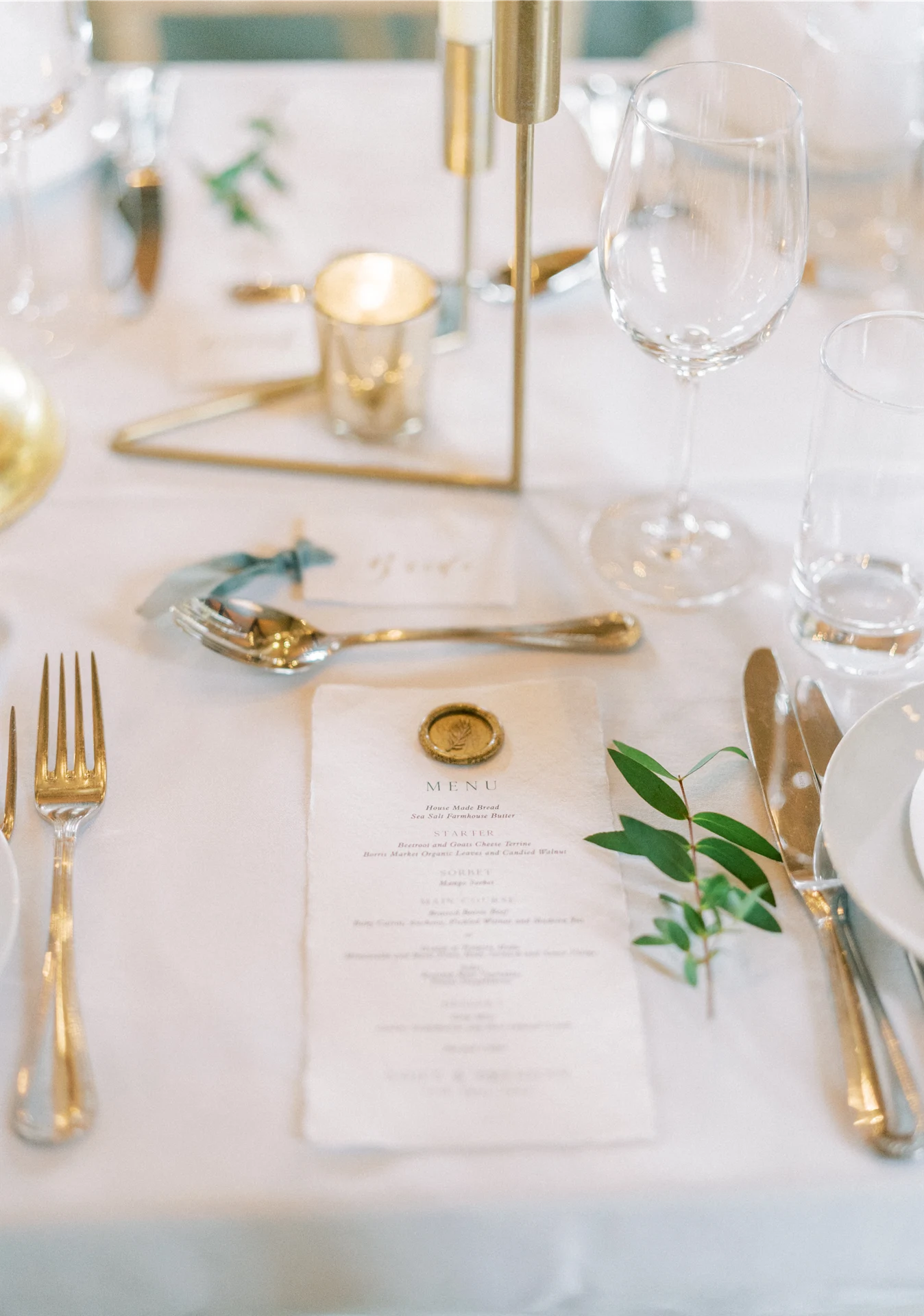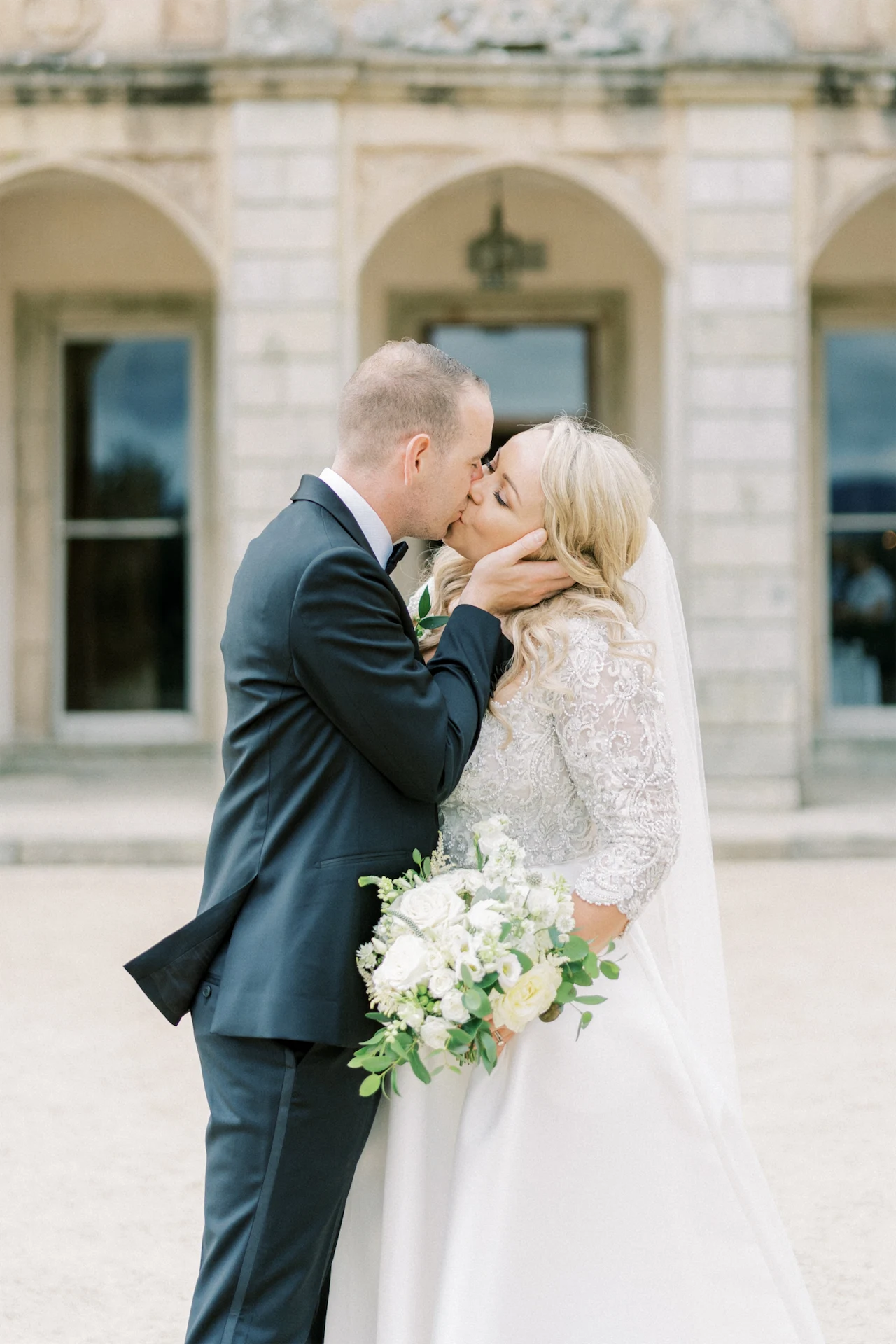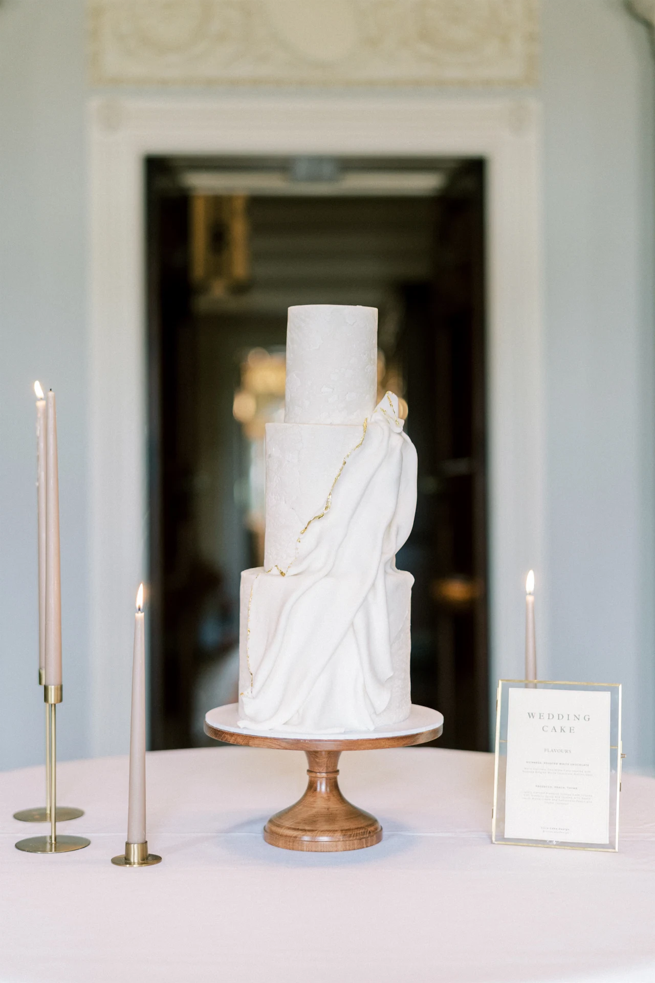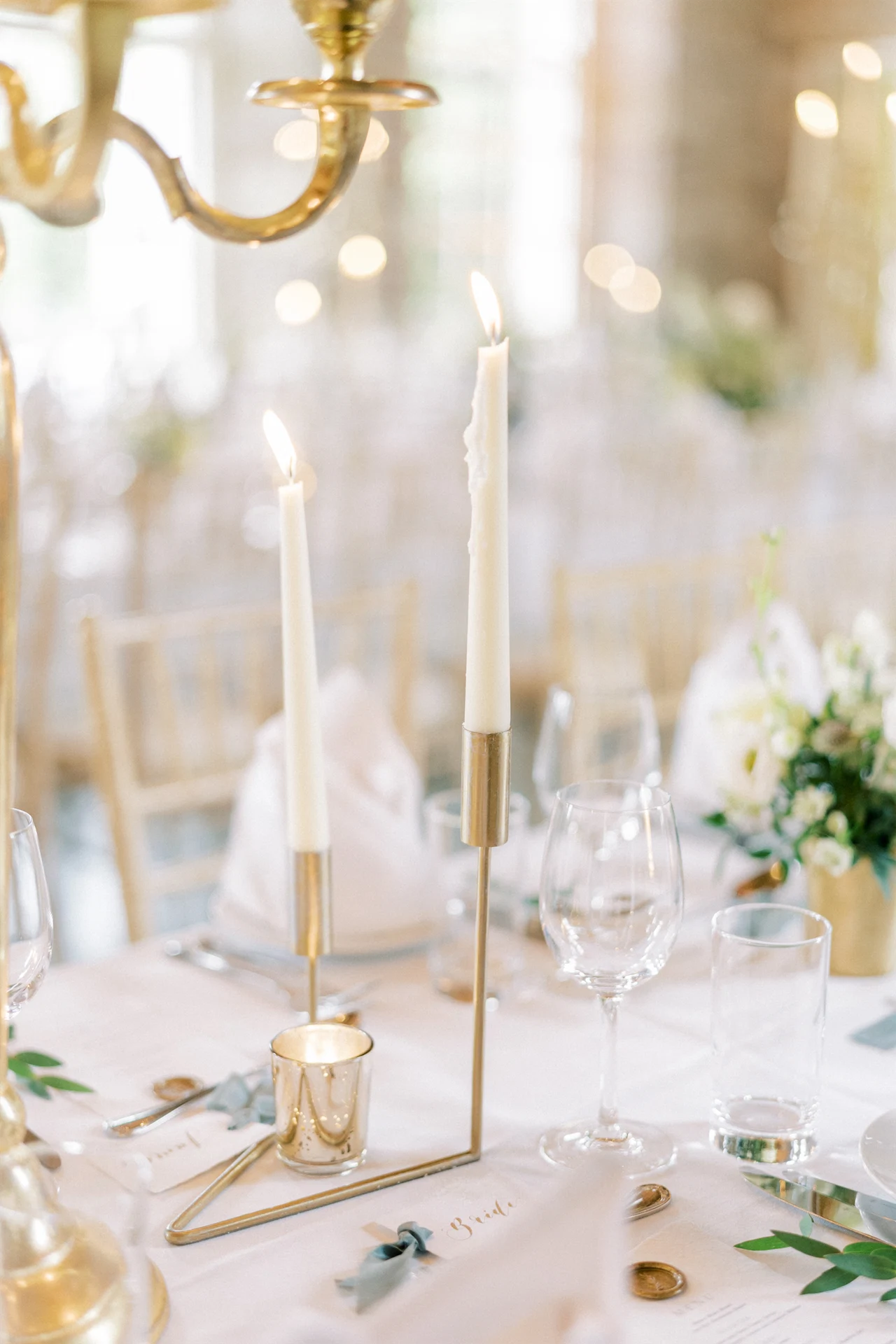 We wanted to go with something very classic, elegant, and timeless to complement the grandeur and history of Borris House (Downton Abbey vibes!). We picked a mix of green and white flowers with lots of foliage and texture as well as tapered candles and candelabras to create some height and warmth in the large space.