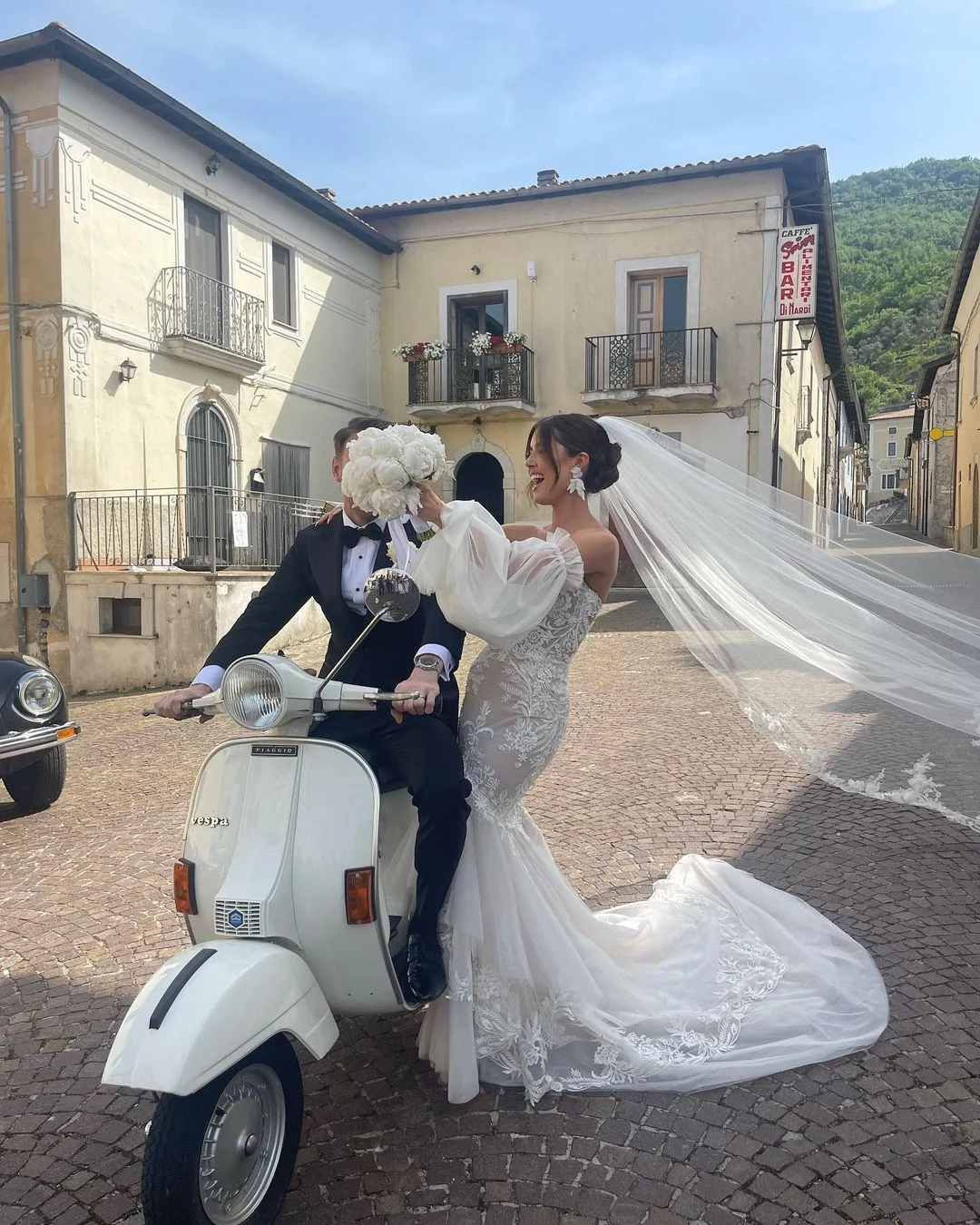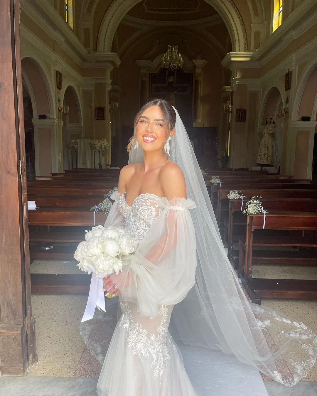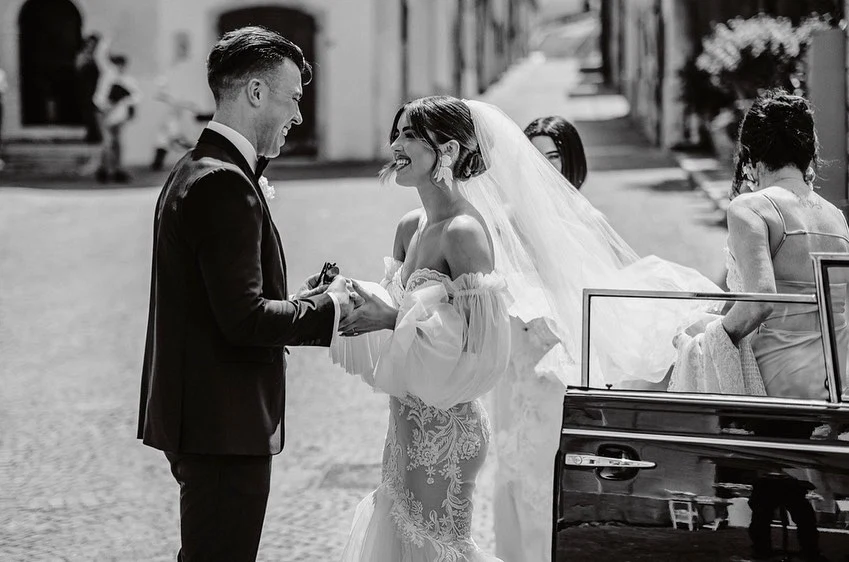 Bonnie Ryan tied the knot with her primary school crush in a picturesque destination wedding. Everything from her romantic, tulle-sleeve dress to the Italian mountainside setting has us swooning.