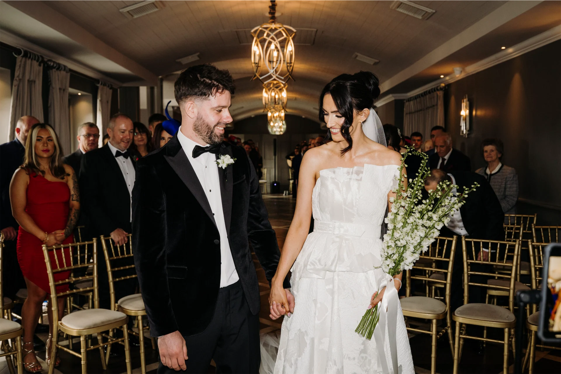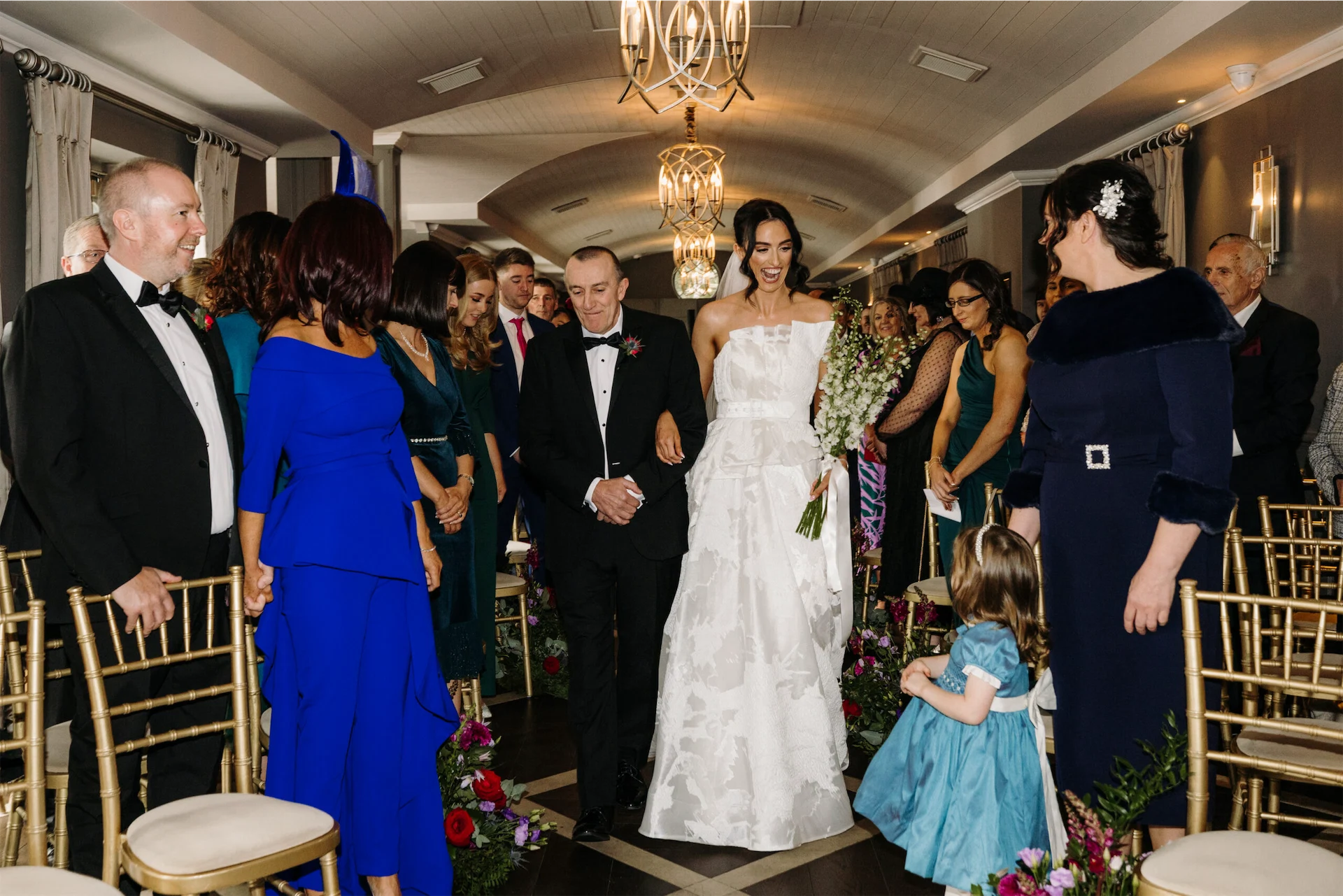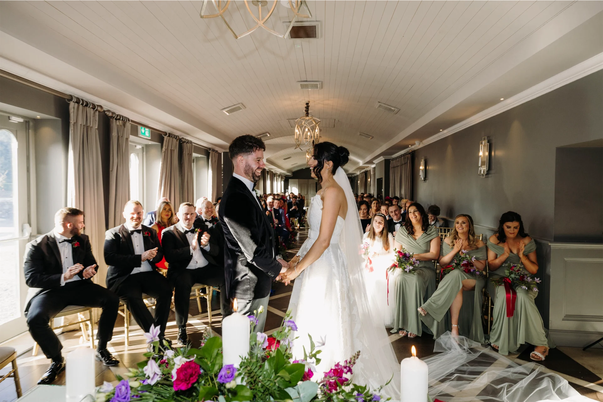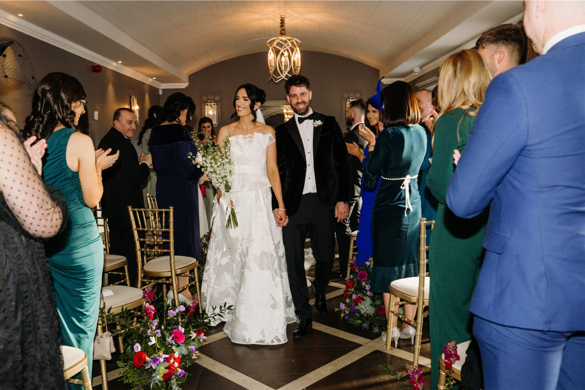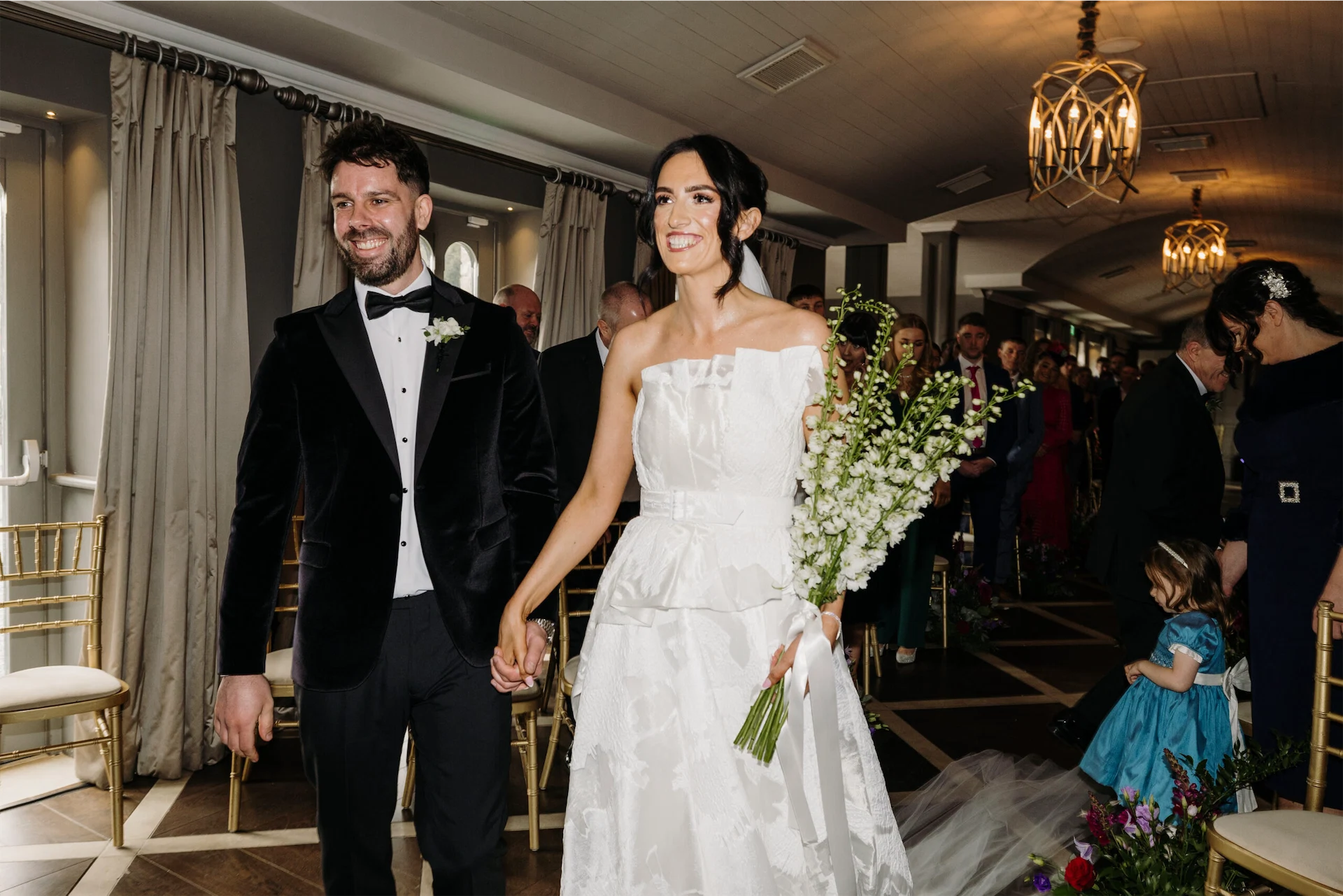 We had our ceremony on site in Kilkea Castle, Co. Kildare. We opted for a spiritual ceremony and our celebrant was Tom Farell, who made the ceremony so special — we laughed throughout!