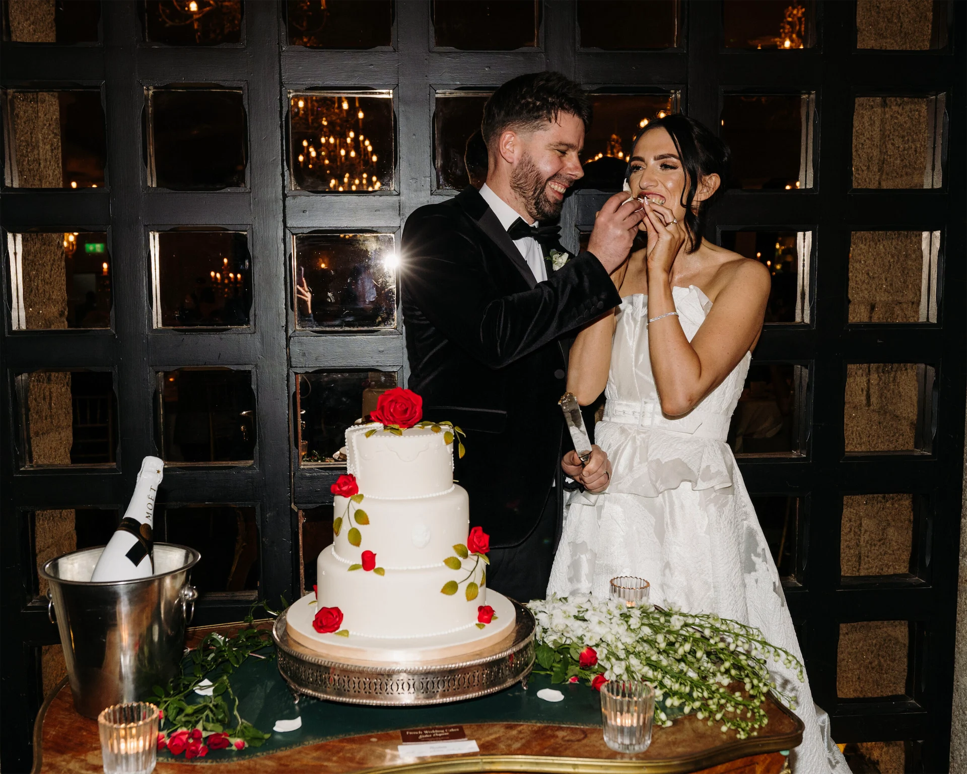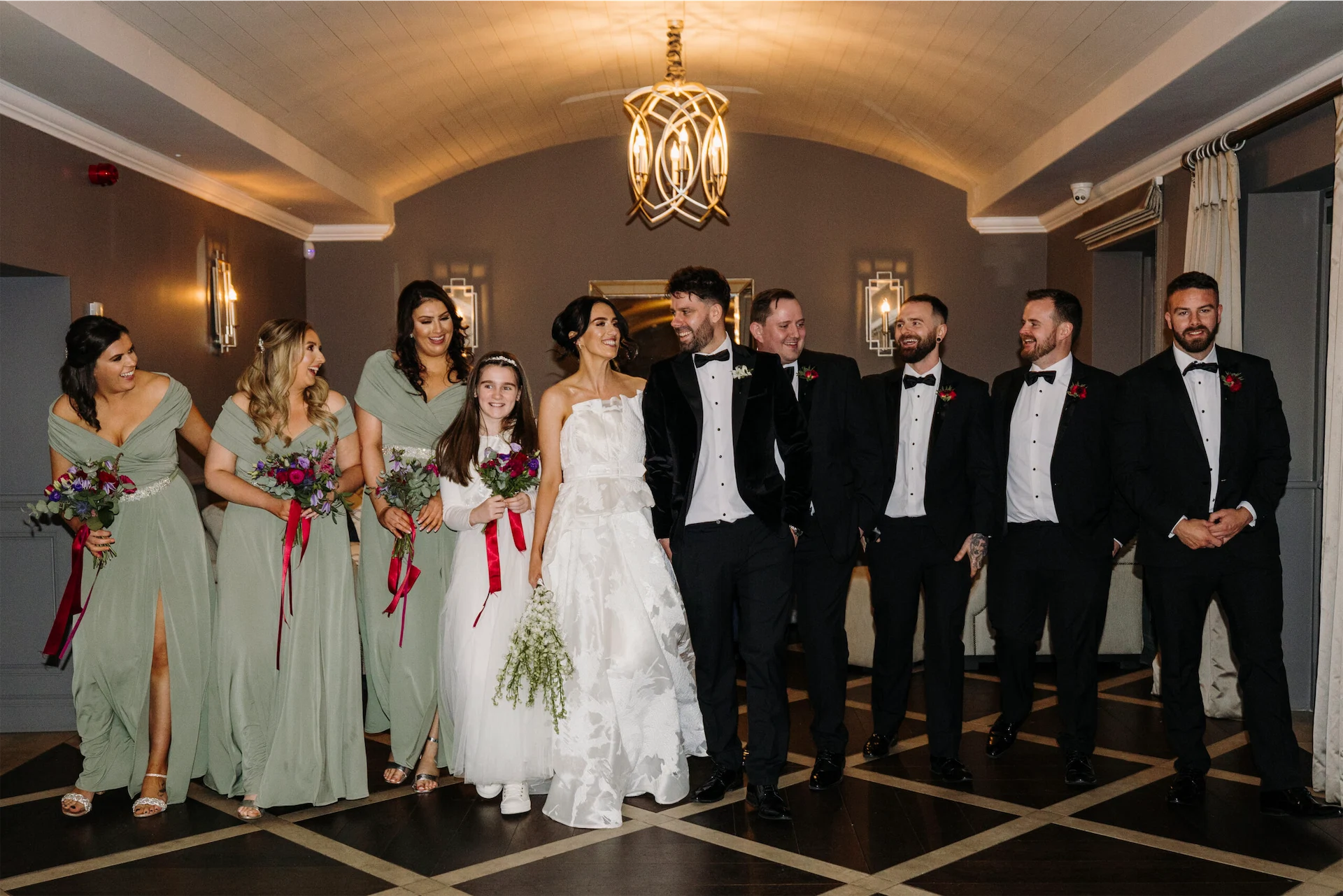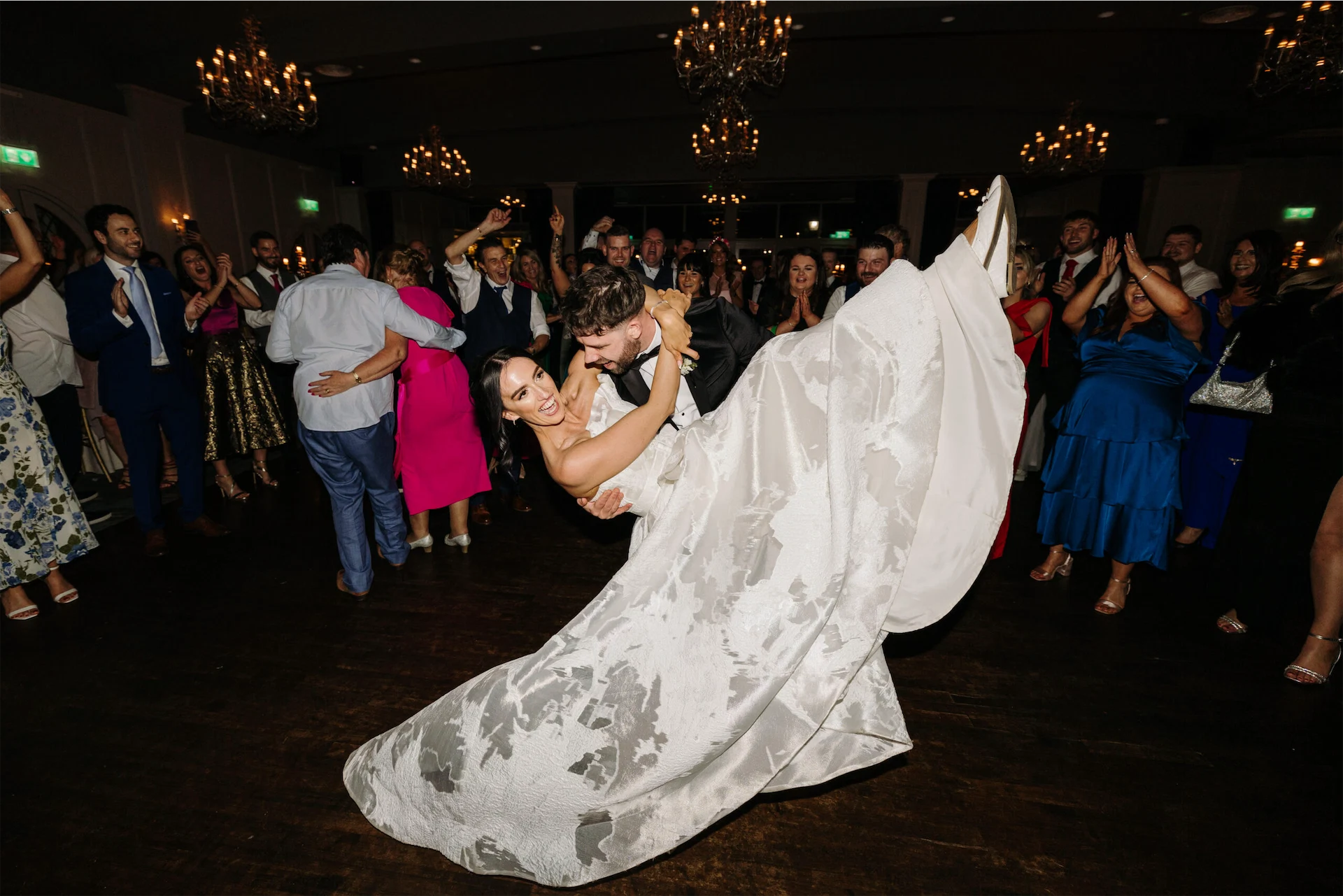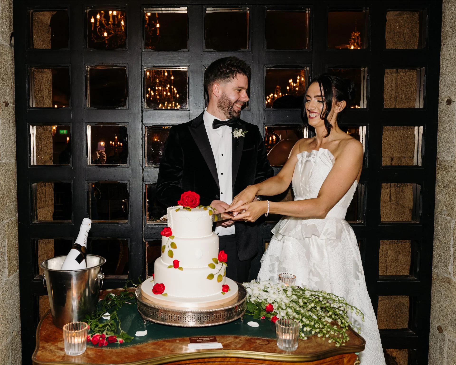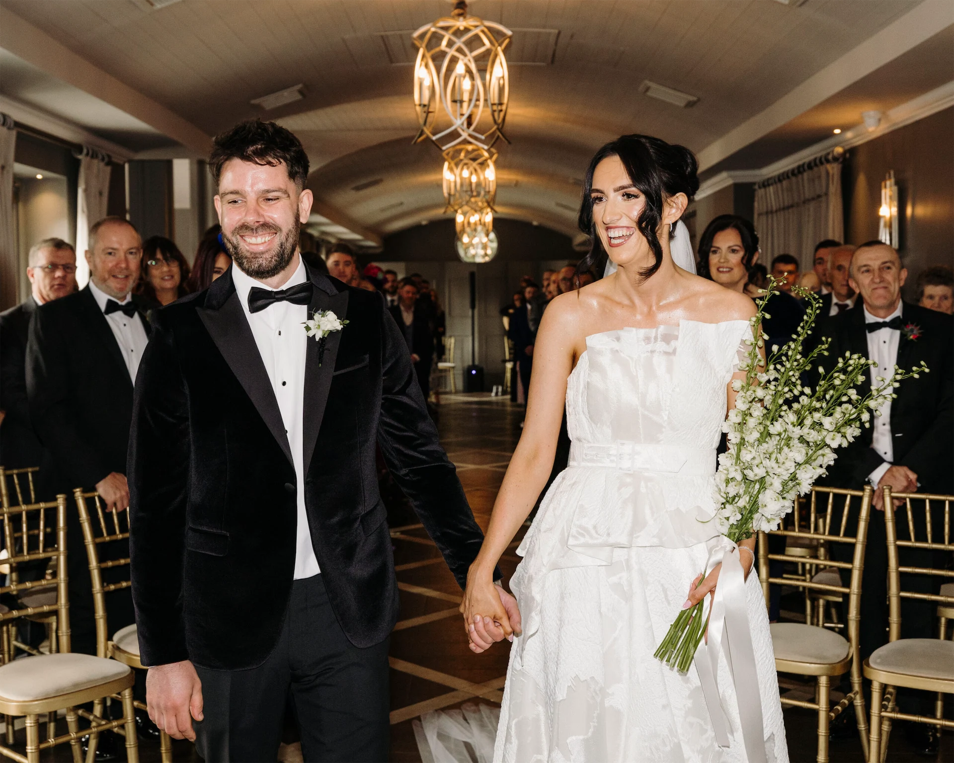 Wedding Dress: Georgia Young Coutour, from The One by Sinead Corcoran. Suit: The Man’s Shop, Newbridge. Make up: Leah Mas Makeup. Hair: Aisling Kelly. Photography: Elaine Barker. Wedding Content Creator: The Wedding Content Company by Aine Leech. Cake: French Wedding Cakes by Julien Drapier. Music: The HoneyVoom Duo. Band: Evolution. Décor: Total Flower Designs by Siobhan and Angie. Stationary: Horizon Designs. Bridesmaids: Folkster. Groomsmen: Richie Whelan’s Menswear, Naas.