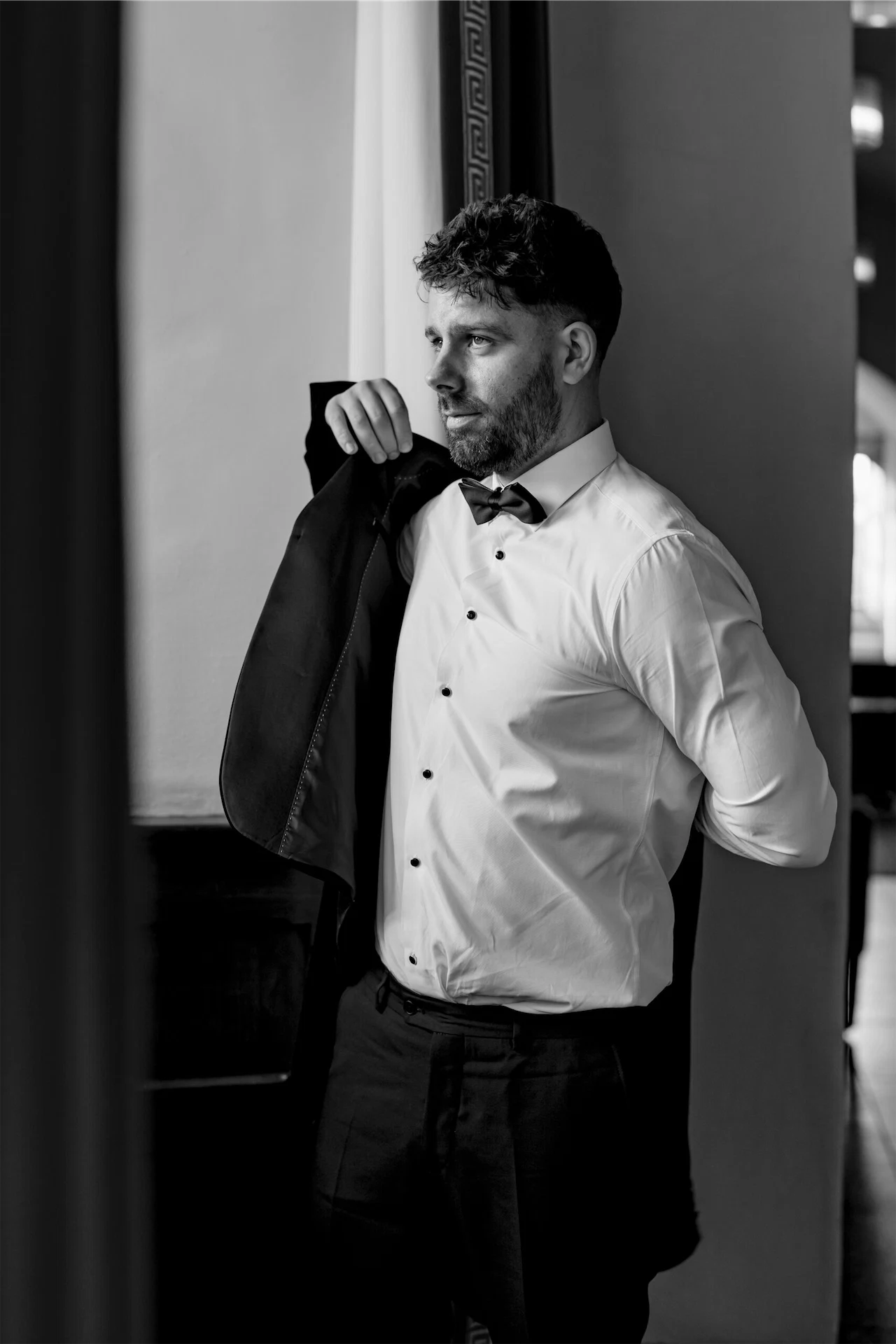 Dwayne wore a black velvet tuxedo from The Man’s Shop, Newbridge.