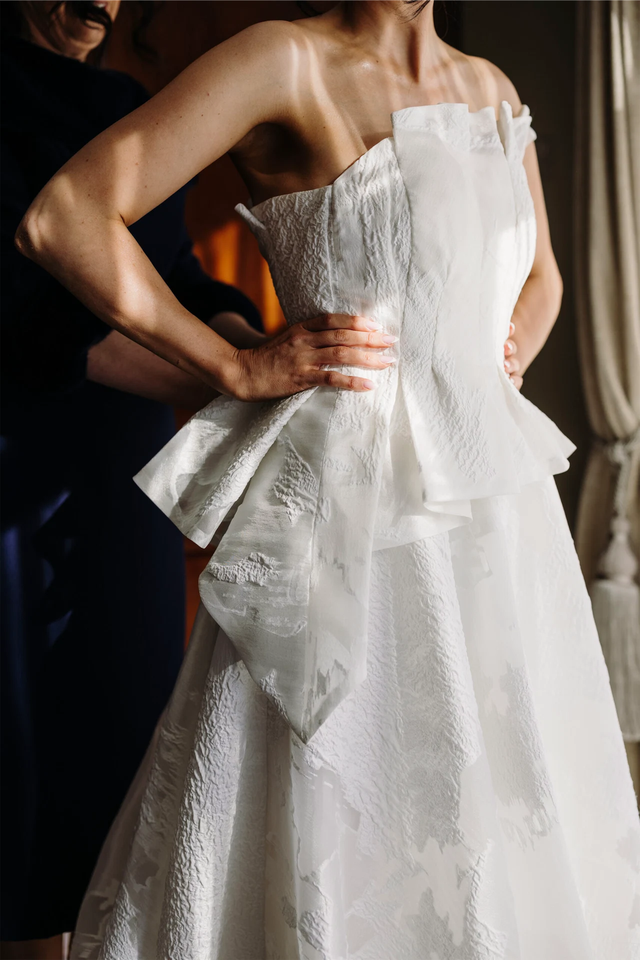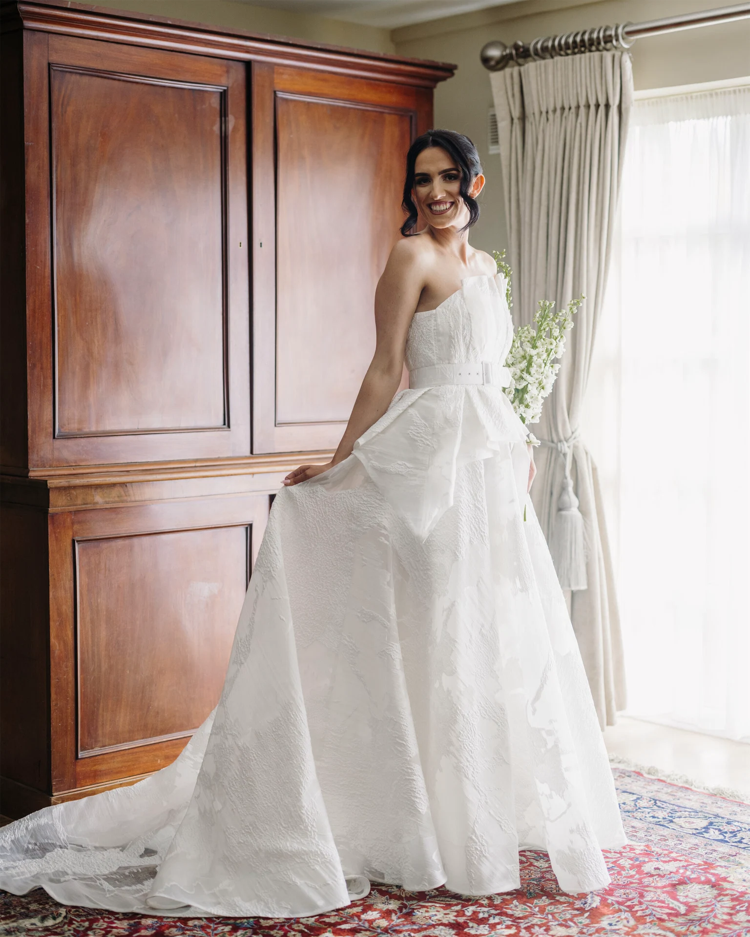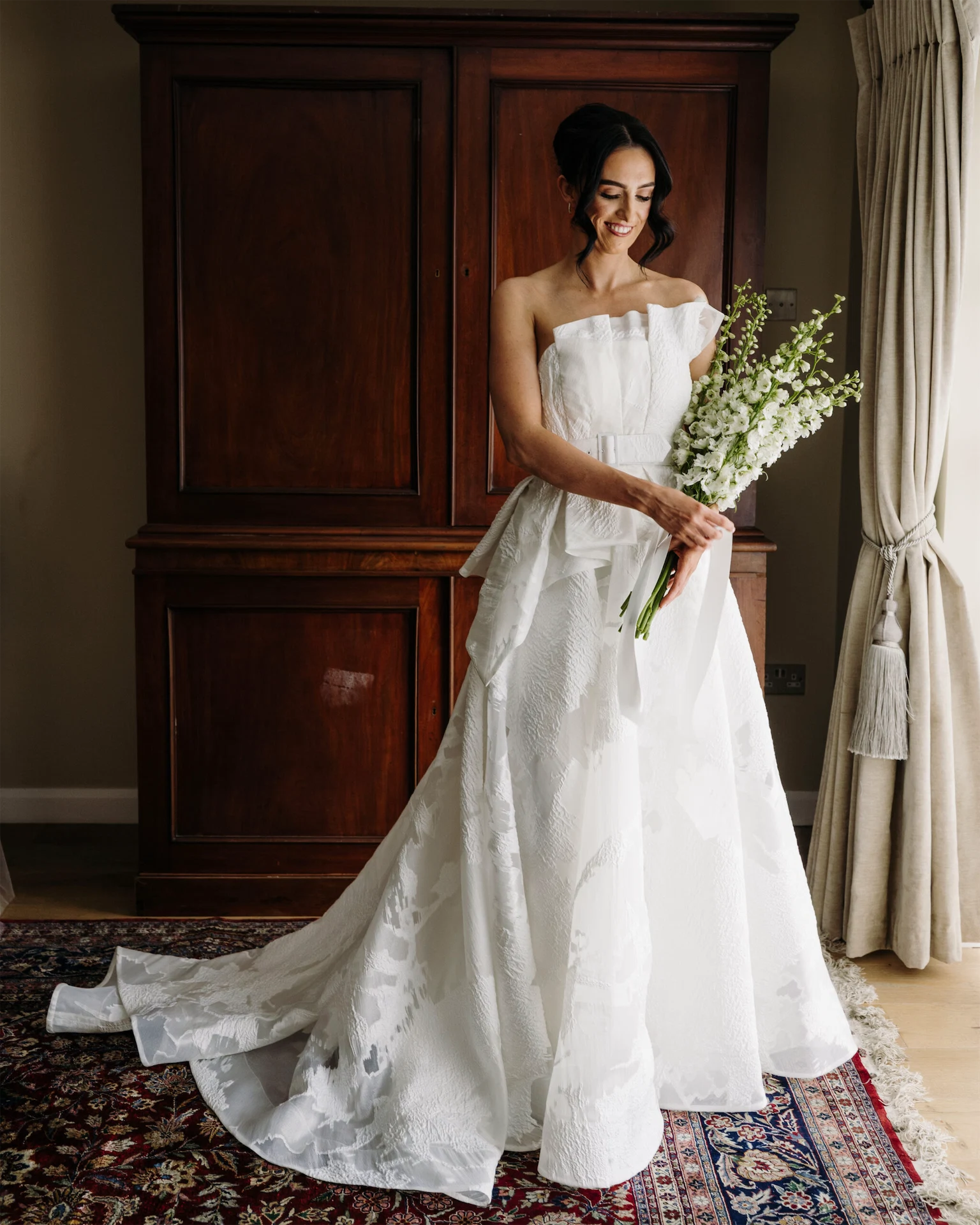 My dress was by Georgia Young Coutour ‘Vasette’ purchased in The One by Sinead Corcoran in Rathmines, Dublin. It was the first dress I tried on and said yes to within minutes. I kept the dress a secret from everyone bar the two mums. It was a hard dress to keep a secret but so worth it!