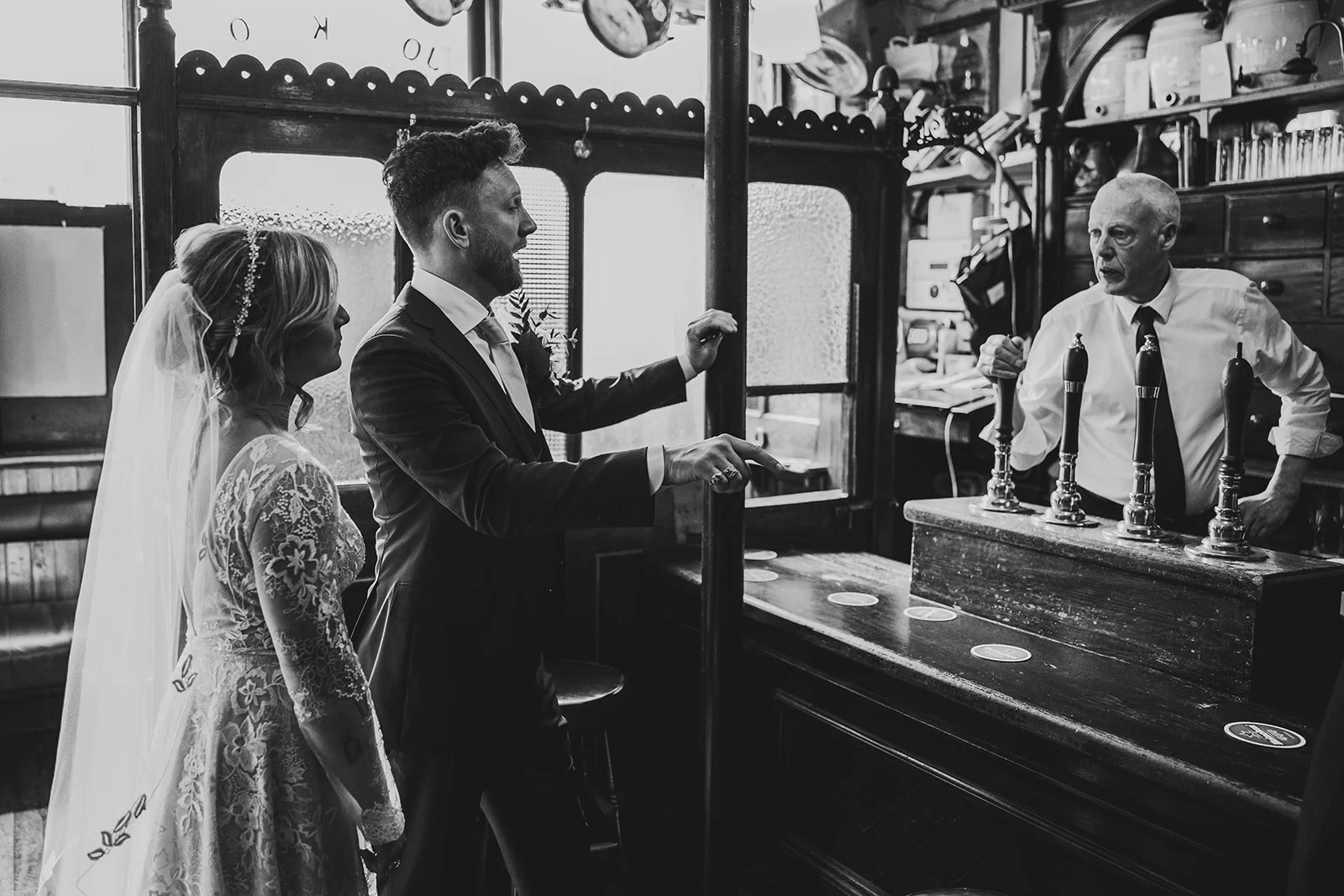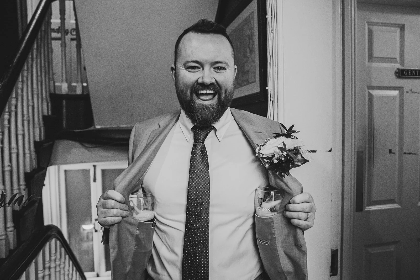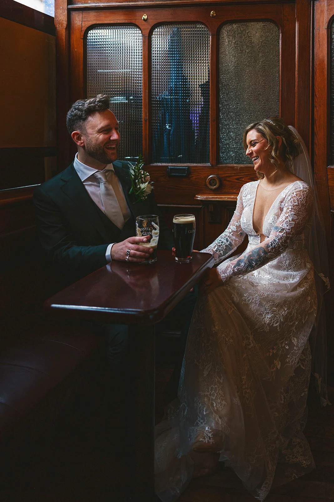 Our photographer, Katie, planned a wonderful first look for us that included a stop at a local pub to enjoy a pint together before the ceremony and it was the best part of the day for us.
