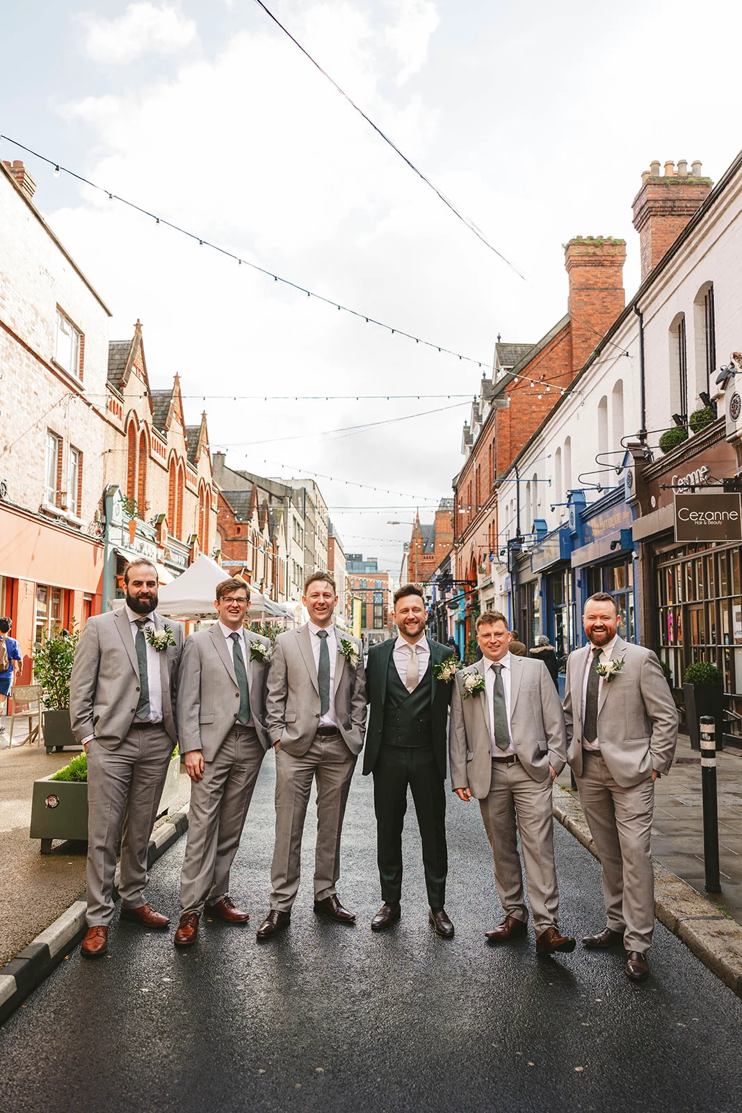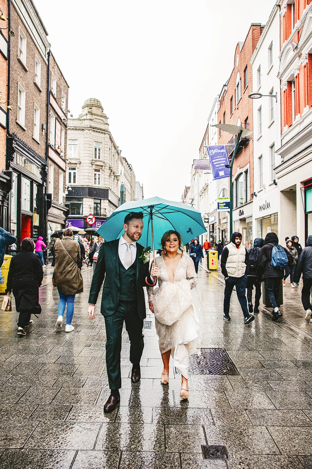 Bride’s Dress: BHLDN. Groom’s Suit: Suit Supply. Florist: Lisa Nevin. Hair & Make-Up: Friends & Fiona Henry. DJ: Dermot Kelly, Velvet DJs. Violinist: Hazel Alexander. Venue, Food & Cake: Fallon & Byrne.