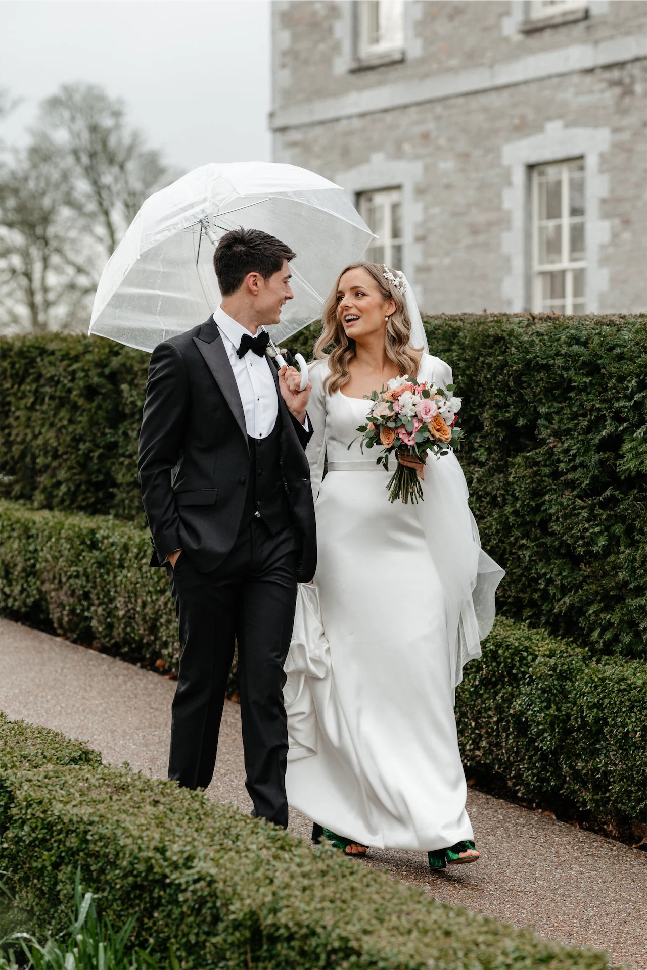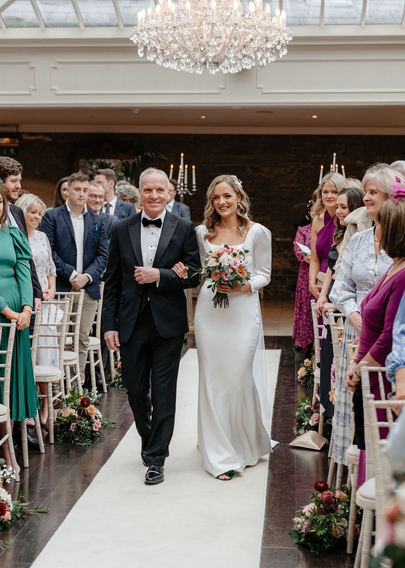 With tasteful green touches to mark the day, Catherine and Chris tied the knot at Tankardstown House on St Patrick's Day – with spring time blooms and candles alighting the beautiful orangery.