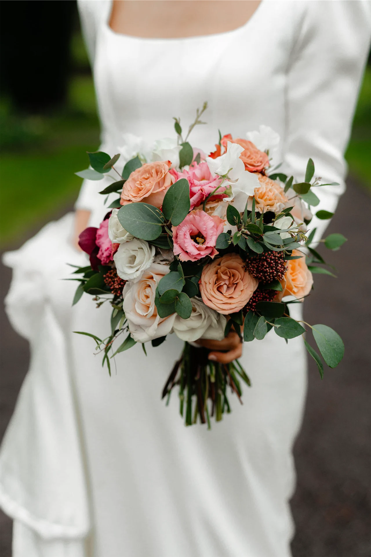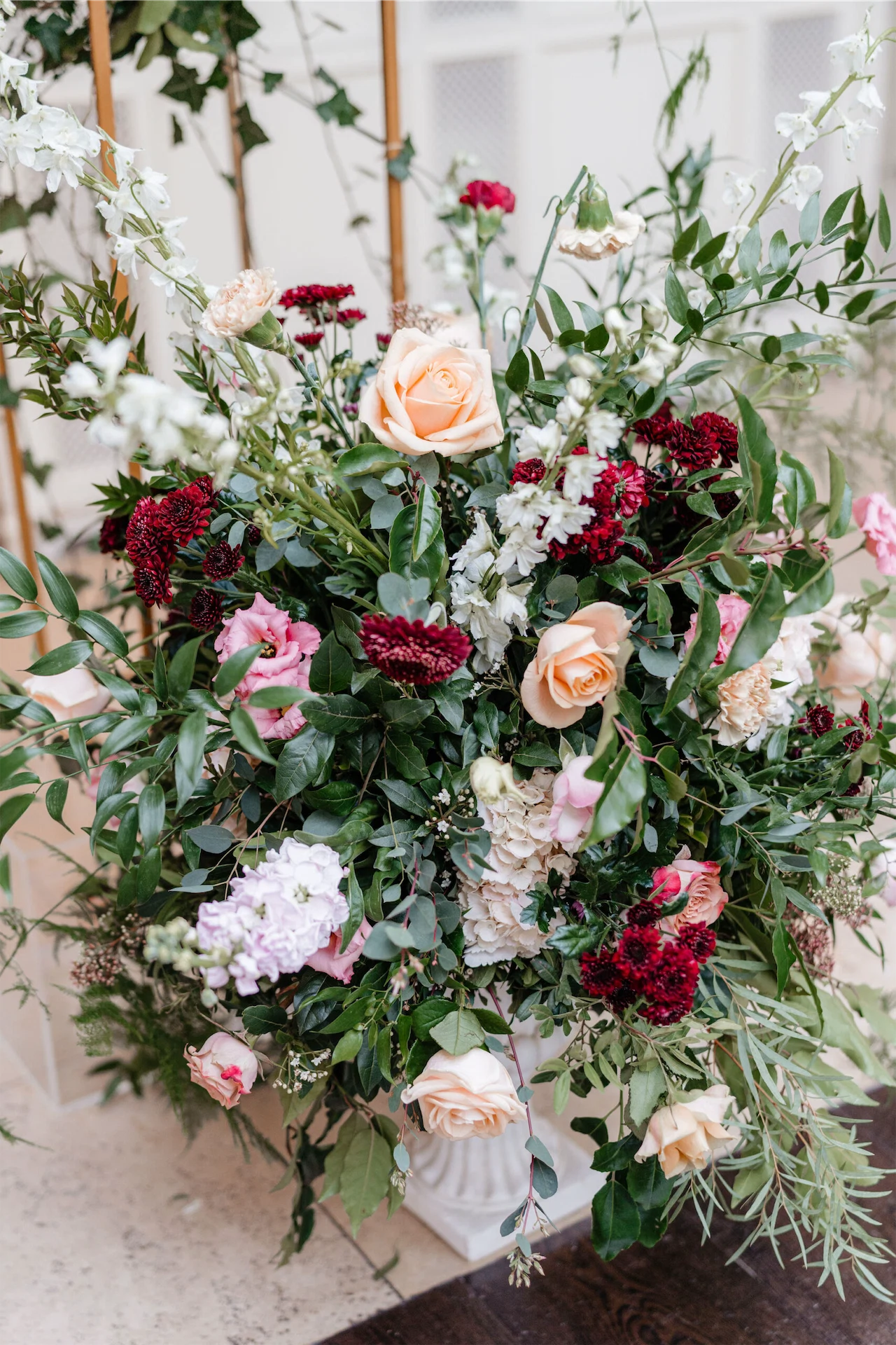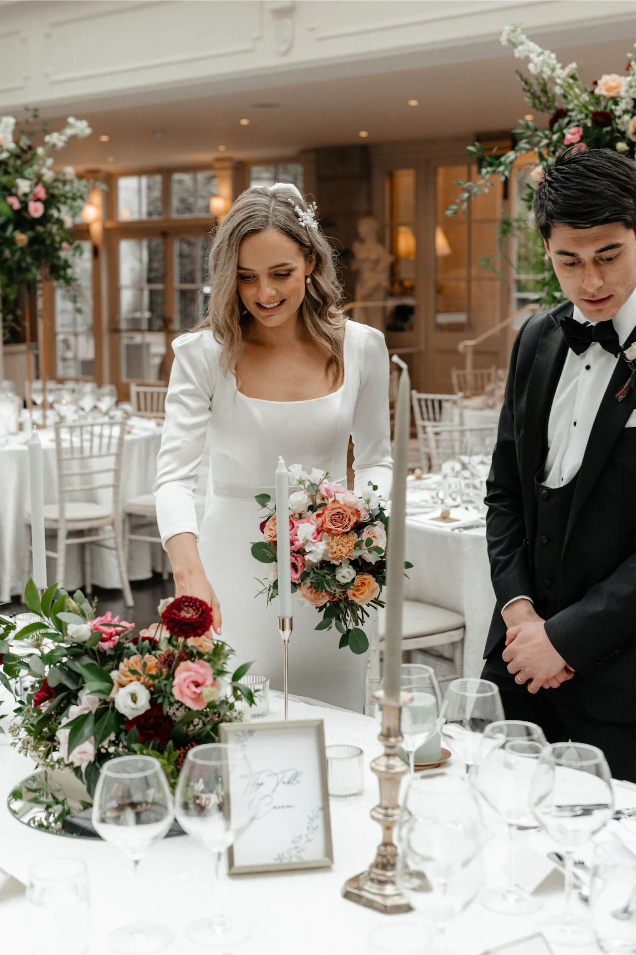 The flowers were done by The French Touch – I’d love to take credit for them, but I simply sent them a colour palette and some general ideas for the shape and size of the bouquets and they absolutely nailed it! With plenty of green running through the wedding, we wanted to steer a little away from anything too Christmassy, so we were sure to include plenty of lighter pinks and creams to lean into more of a spring time vibe.