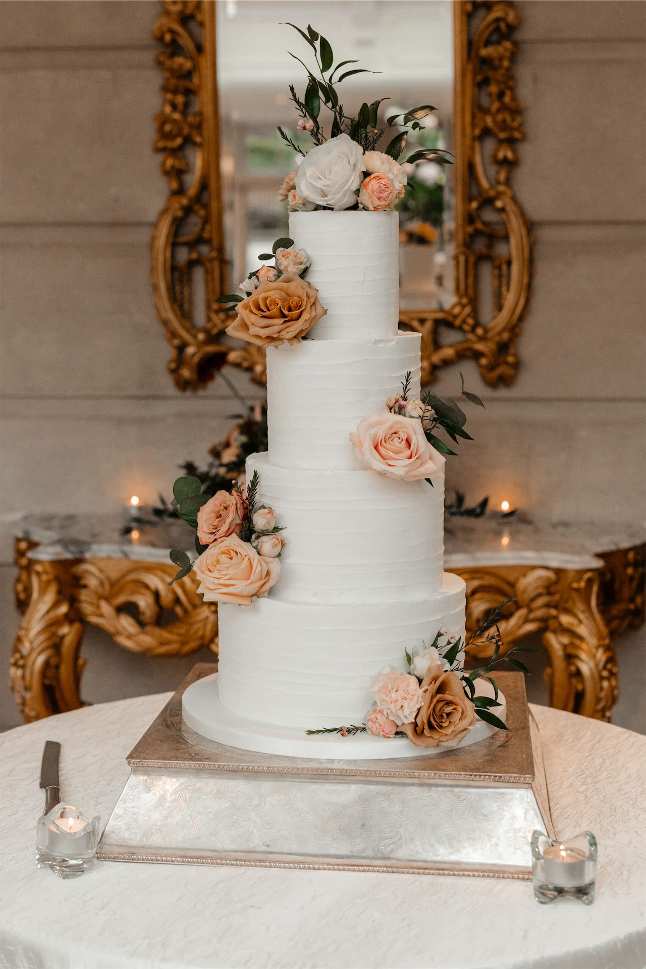 The gorgeous and simple cake was from Little Topper Cakes and was exactly as we imagined it with simple white icing and decorated with flowers. We sourced the candles ourselves, buying out the tea light section in Ikea and a couple of lovely fluted tea light holders from Penneys. To emphasise the spring element, we selected pillar candles from Ikea in varieties of pinks and lighter greens with simple gold trays to place them on.