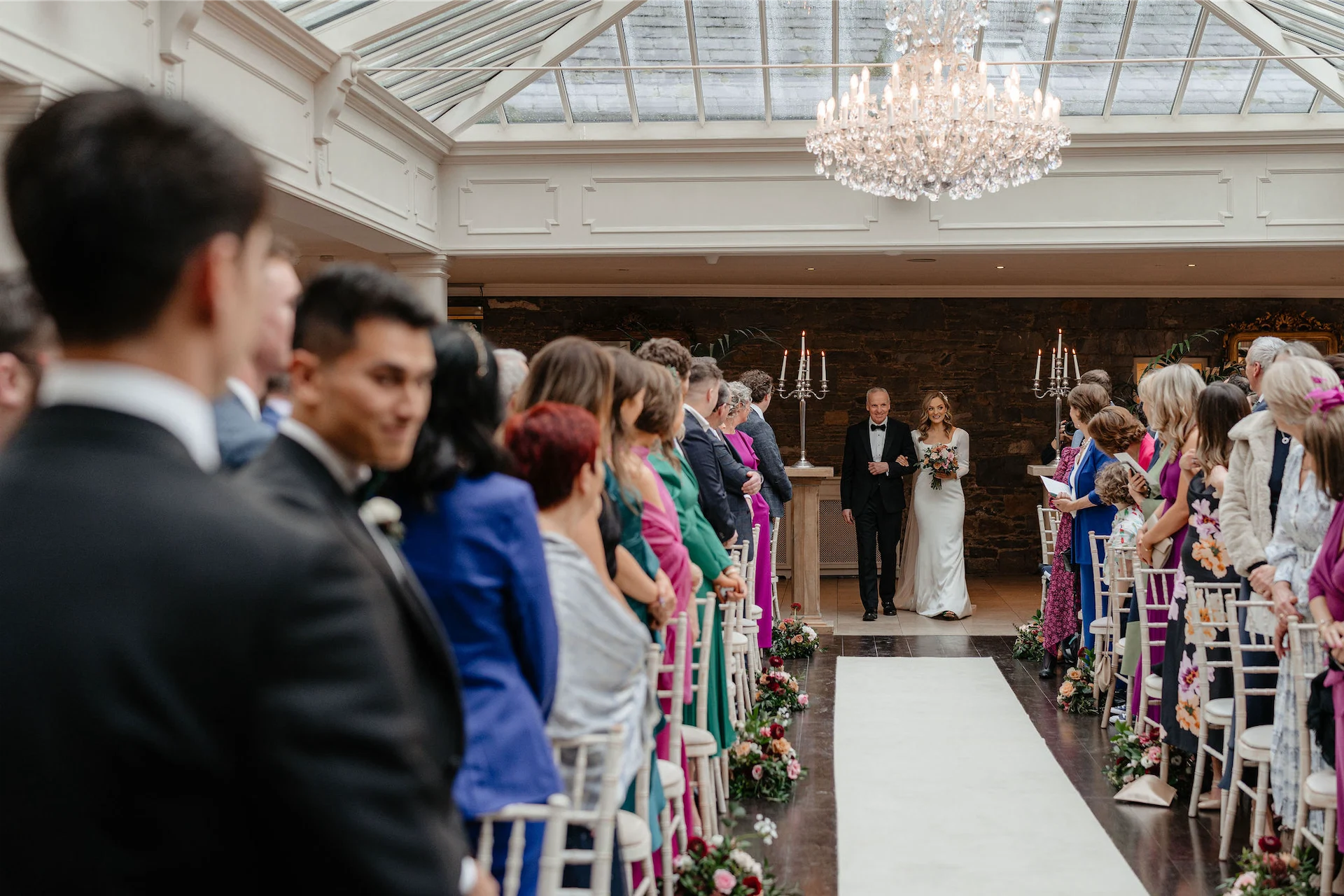 There was a moment just after I arrived that I was hidden behind a partition at the side of the ceremony room. Everyone was seated; I could feel the energy in the room and it was absolutely electric. It was a cacophony of noise that hushed to silence the instant Amy announced I was here. The music started, the adrenaline took over and I knew then that it would be a perfect day.
