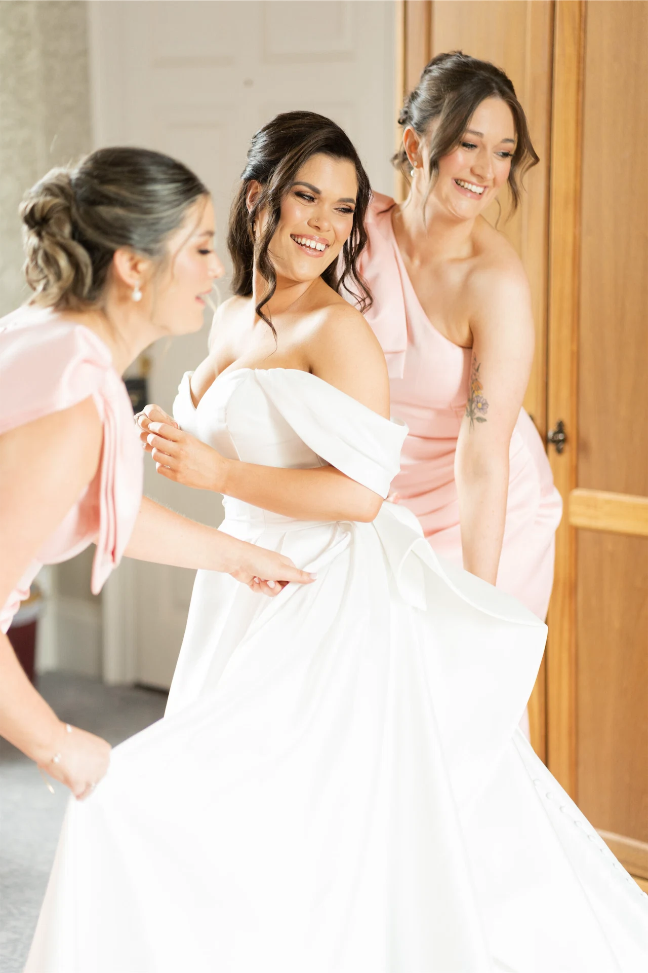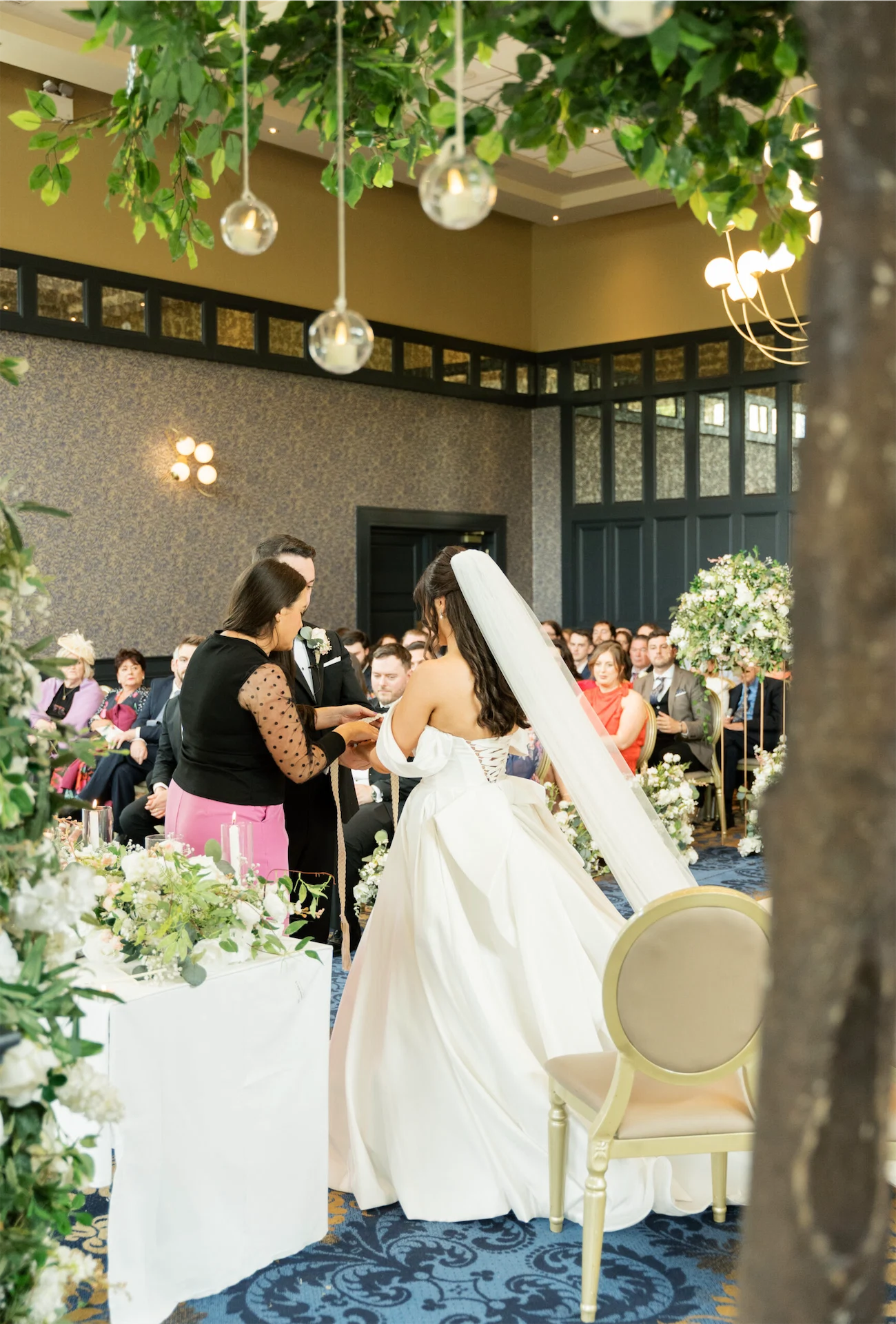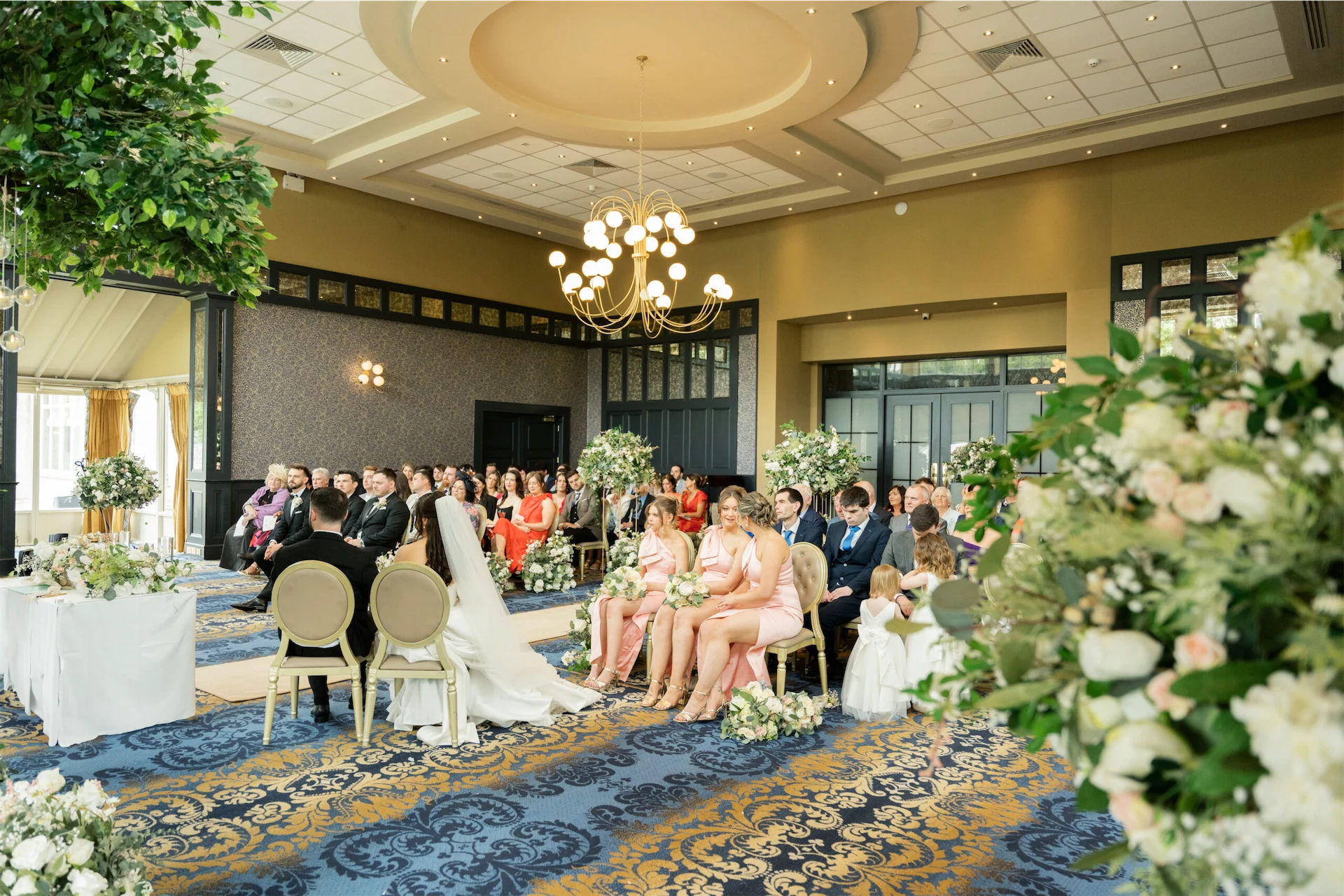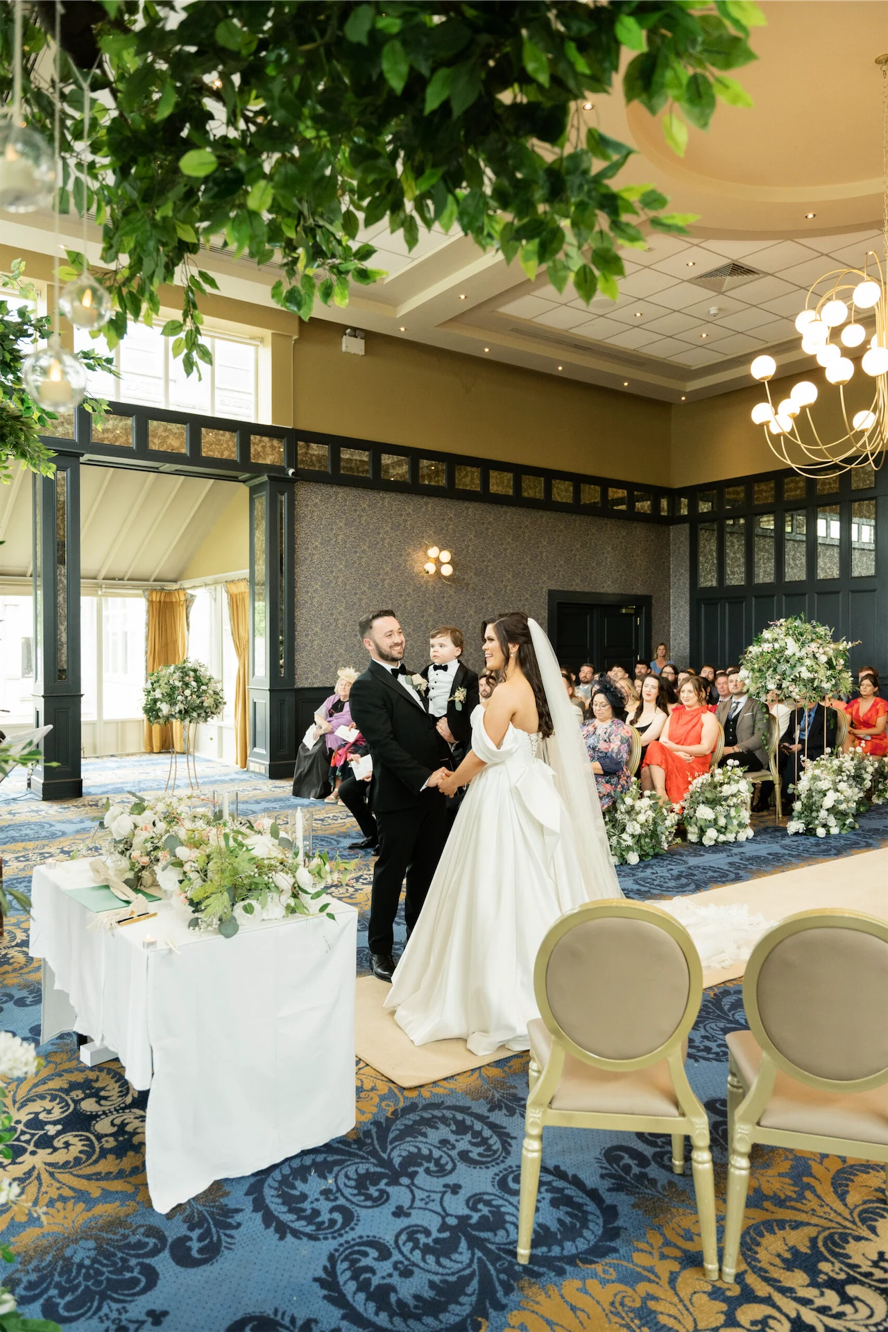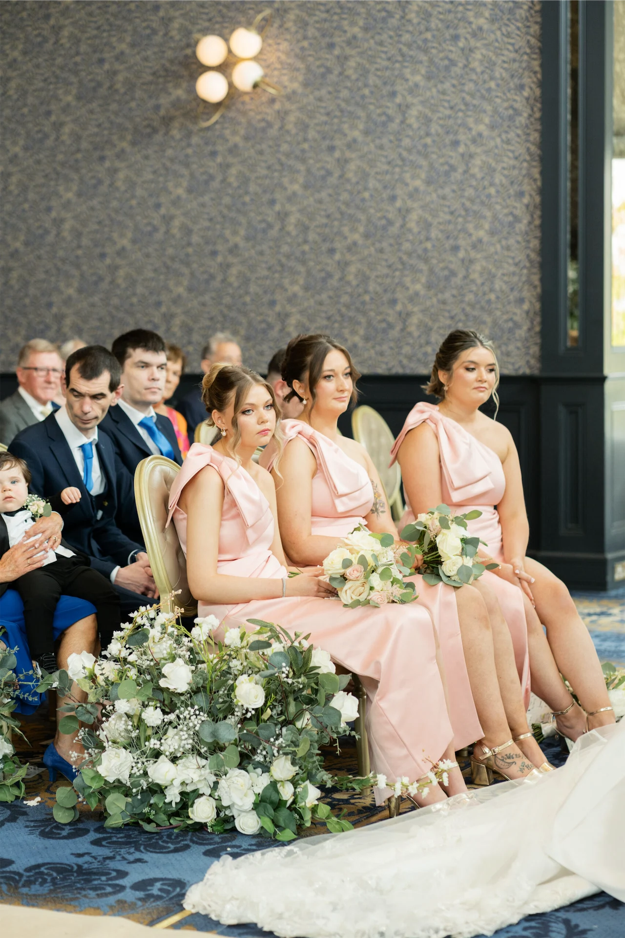 The night before the wedding, I stayed in the Lady Olivia Suite with my mum and two of my bridesmaids. That morning, we were treated to a freshly cooked breakfast delivered to the suite while we were pampered by our hair stylist and make-up artist. From the suite, I had a full view of guests arriving at the hotel, which added to the excitement. Emmet stayed in Faithlegg’s lodges beside the hotel with our one-year-old son, Ollie. He enjoyed a relaxed morning with Ollie, his dad, and his groomsmen before walking to the hotel.