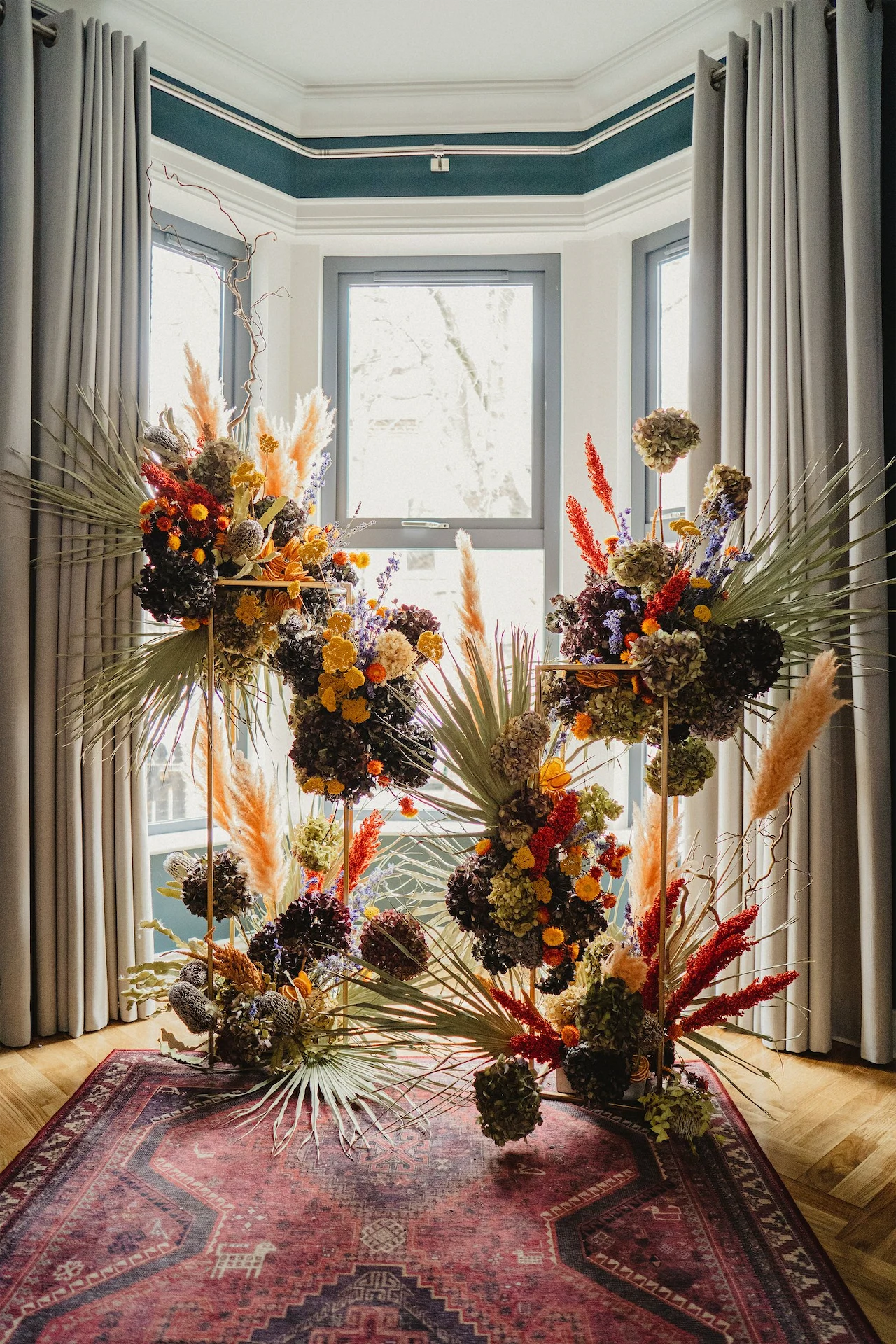 We were lucky enough to have just finished renovating our home in the months leading up to the wedding. We moved all our furniture into the office upstairs except for our Zareen Oxblood Red rug from Ruggable.