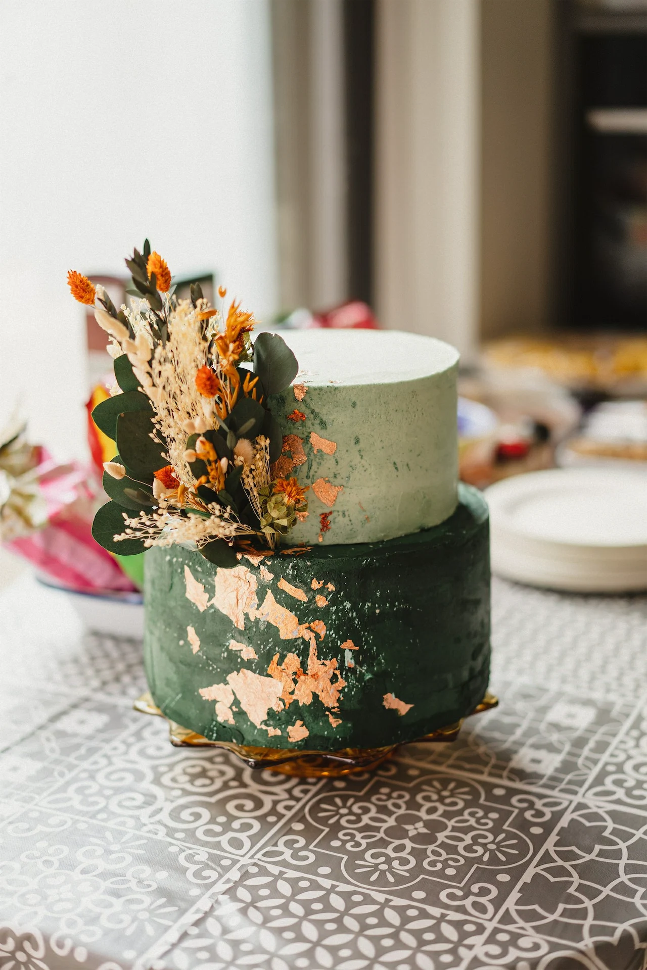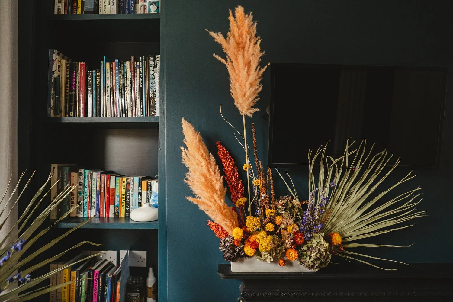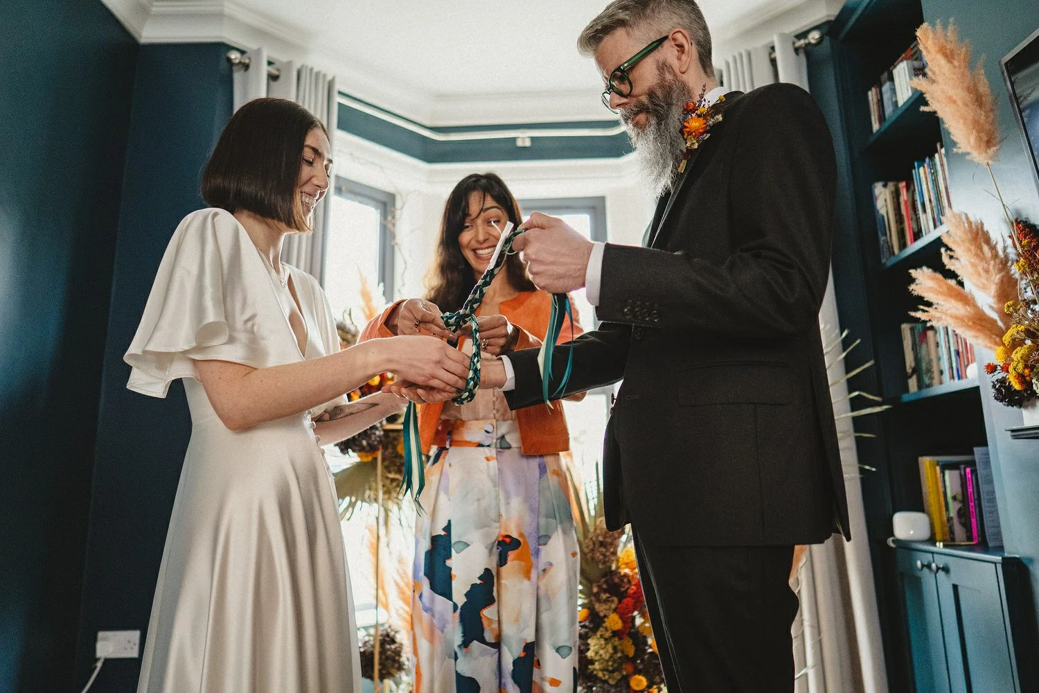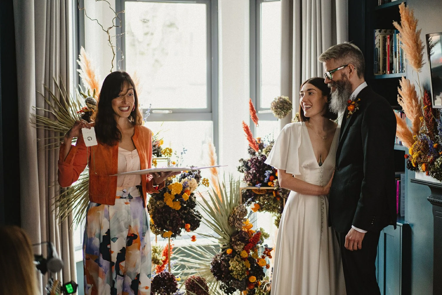 Floral Earth came to the house for a second consultation the day before the wedding to rejig our flowers to fit the living room. They added so many extra touches that really made the space feel special, from the arrangements on the fireplace to the dried oranges they’d placed on our front gate.