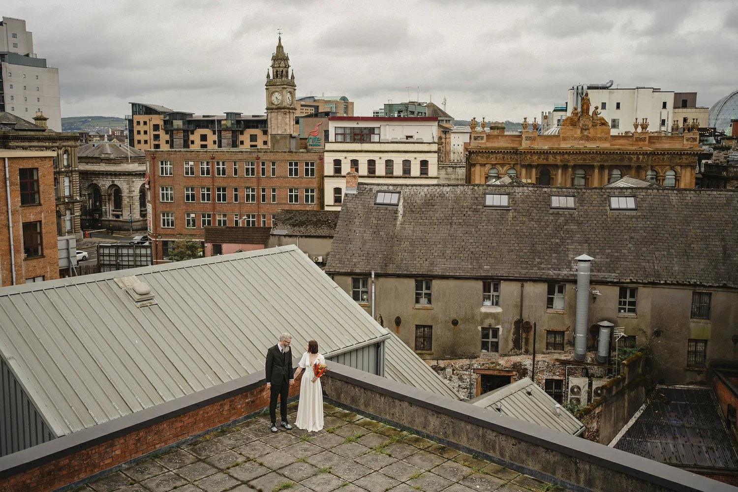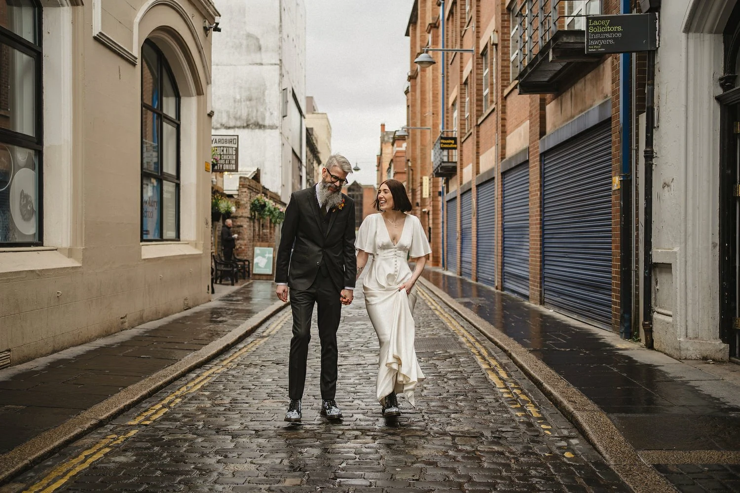 The very lovely and insanely talented Rachel Toman soundtracked our day. Tucked in the corner in our living room, she played as our guests arrived and we could hear her as we got ready in our bedroom upstairs. She kept our spirits up while we walked around the Cathedral Quarter getting our photos taken afterwards.