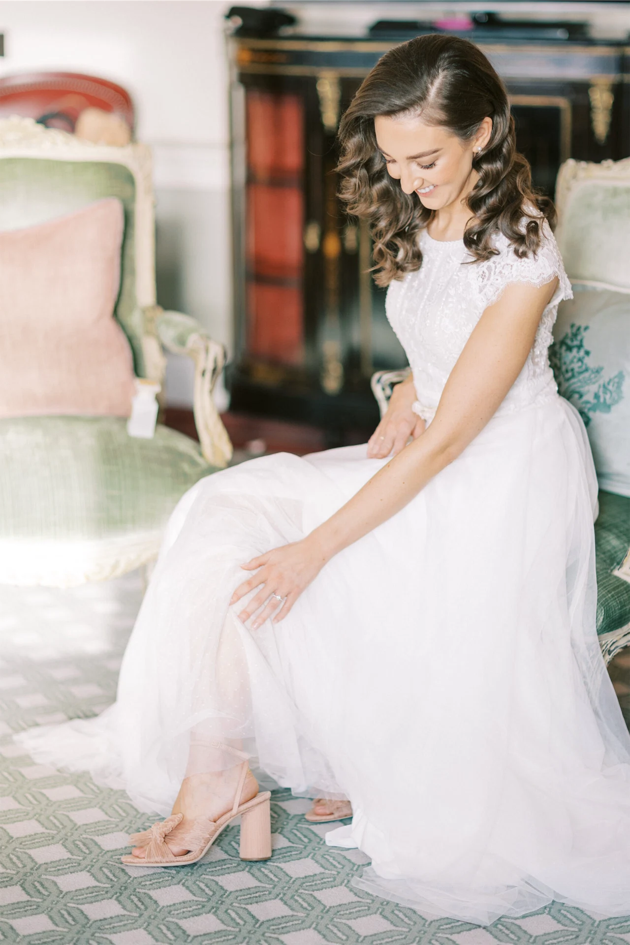 I found a picture of my dress online and loved it! I didn’t think I’d actually be able to get my hands on it but found that Alice May Bridal stocked the brand and was able to order a sample for me. I loved the lace top, the detail on the waist, and the different fabrics in the skirt.