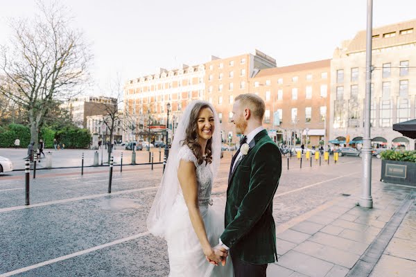 Bride’s Dress: Alice May Bridal. Bride’s Shoes: Loeffler Randall, The White & Gold. Bride’s Earrings: Tiffany & Co. Groom’s Suit: Brendan Kidd Menswear. Rings: Appleby Jewellery. Hair: Melanie Byrne. Make-Up: Lisa O’Brien. Florist, Food & Venue: The Shelbourne. Music: Sacred Sounds String Trio, The Midnight Revellers & Fergus Nolan.