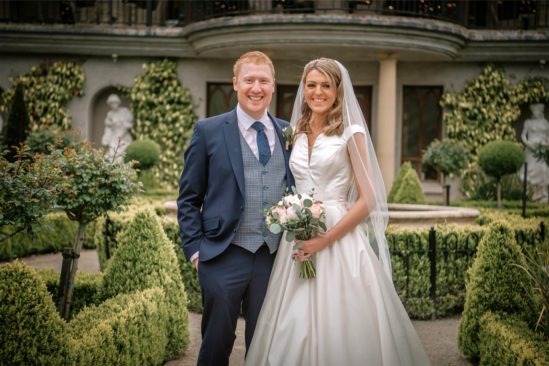 Wedding Dress, Veil & Headpiece: Belle Mariee. Bride’s Shoes: The Little White Dress. Groom and Groomsmen’s Suit: Pat O’Byrnes Manshop. Bridesmaids’ Dresses: Abelle Bridal. Ceremony Music: Louise Morris. Reception Music: Tropical Storm, Bentley Boys and DJ Paul McGuiness. Flowers: Flower Innovations. Make-Up: Keara Kelly Make-up. Hair: Hair By Caoimhe. Wedding Car: Classic and Executive Wedding Cars. Cake: Mrs Smiths Bakery (Emma Smith). Videographer: Shay Casserley.