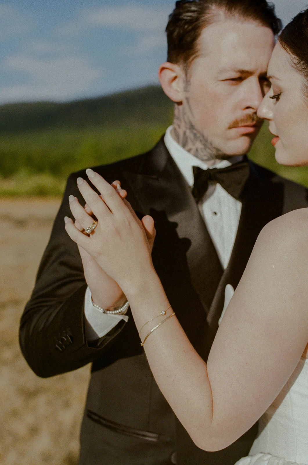 Our first dance was a little unconventional. It was just the photographer and us. We were standing by a lake, and she asked us to dance. As we did, I softly sang Follow You by Bring Me The Horizon. I then started to cry, so I stopped, but we continued dancing.