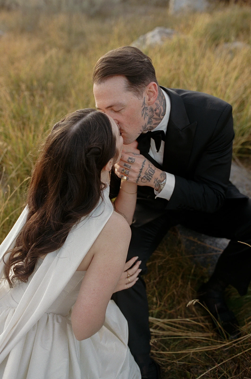 Wedding dress: Watters at a&bé bridal shop. Groom’s suit: Indochino. Shirt: 100hands. Rings: Michael K Diamonds and Soul Engraver.
