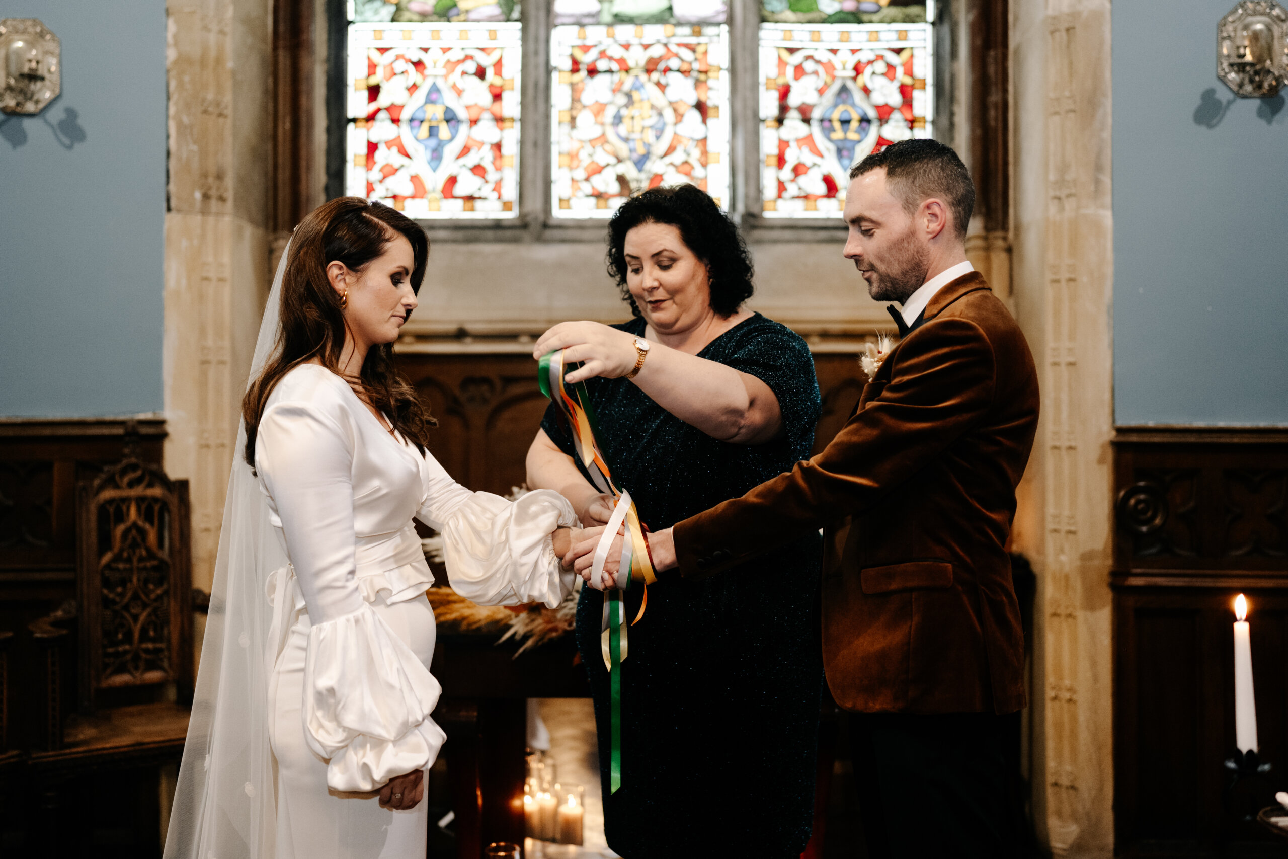 Our ceremony was a non-religious civil ceremony, held in the chapel in Markree Castle, completely personal to us. Our celebrant Lee made sure every part of our ceremony was all about us and what we wanted, from our love stories, to the music, to our readings, and my personal favourite, the hand fasting.