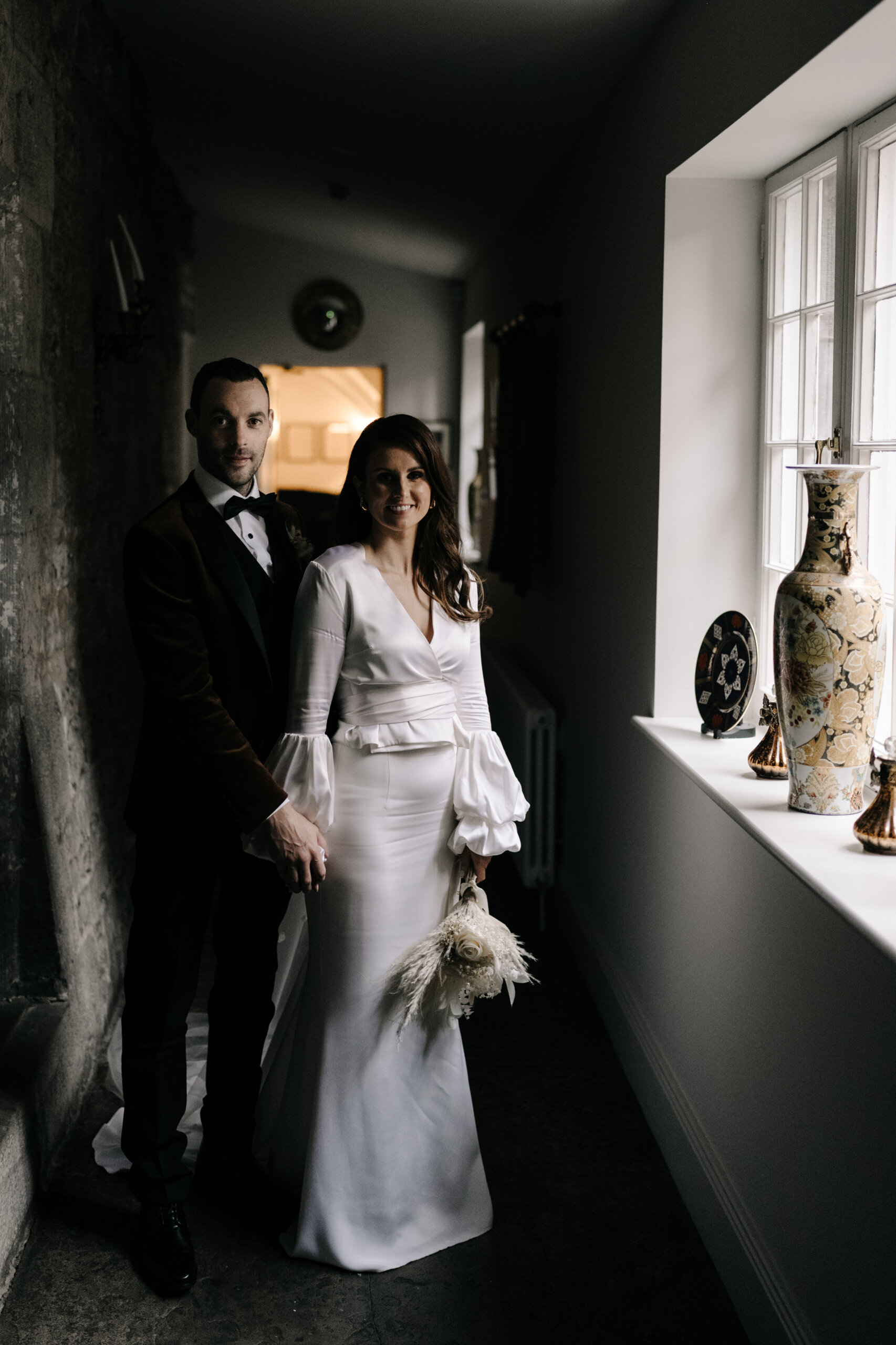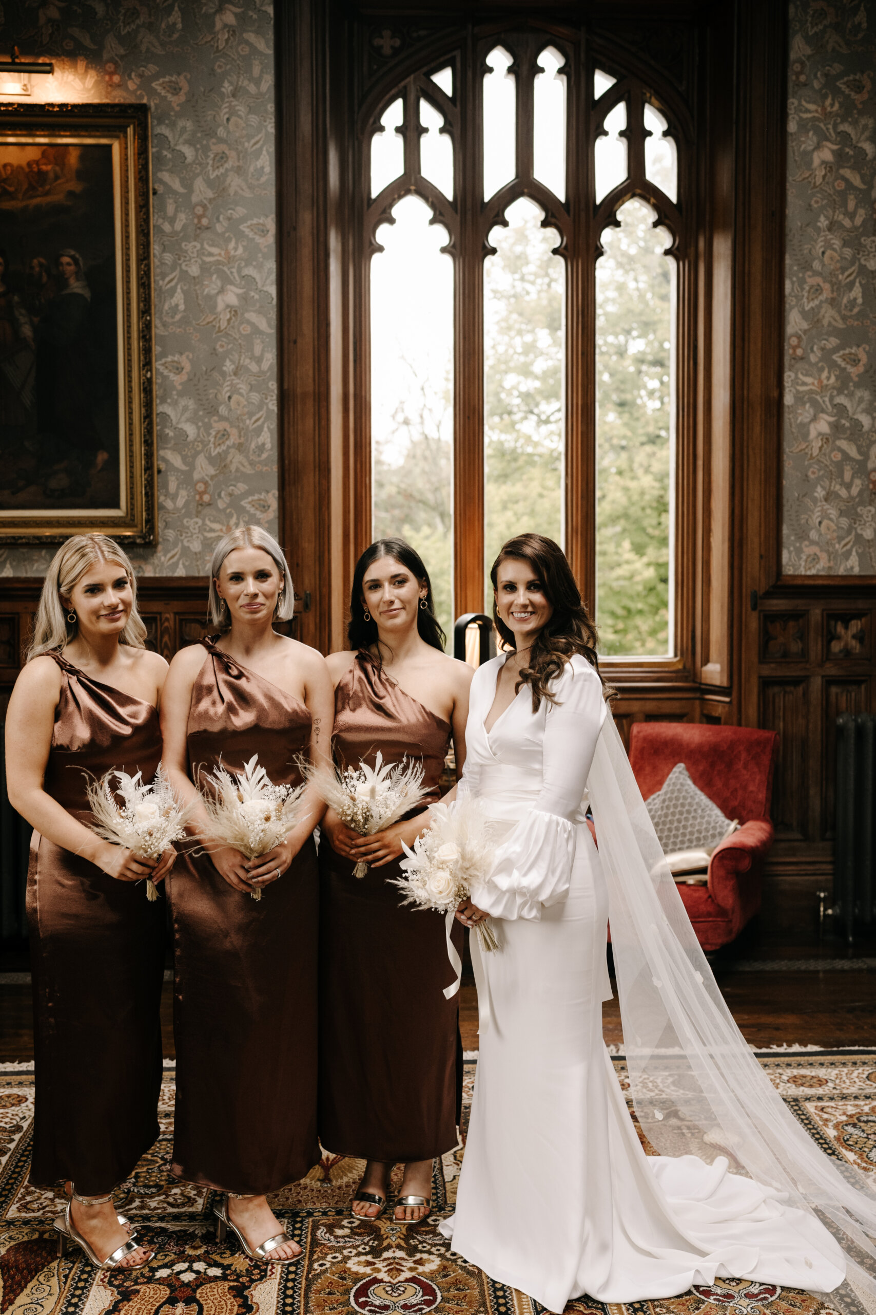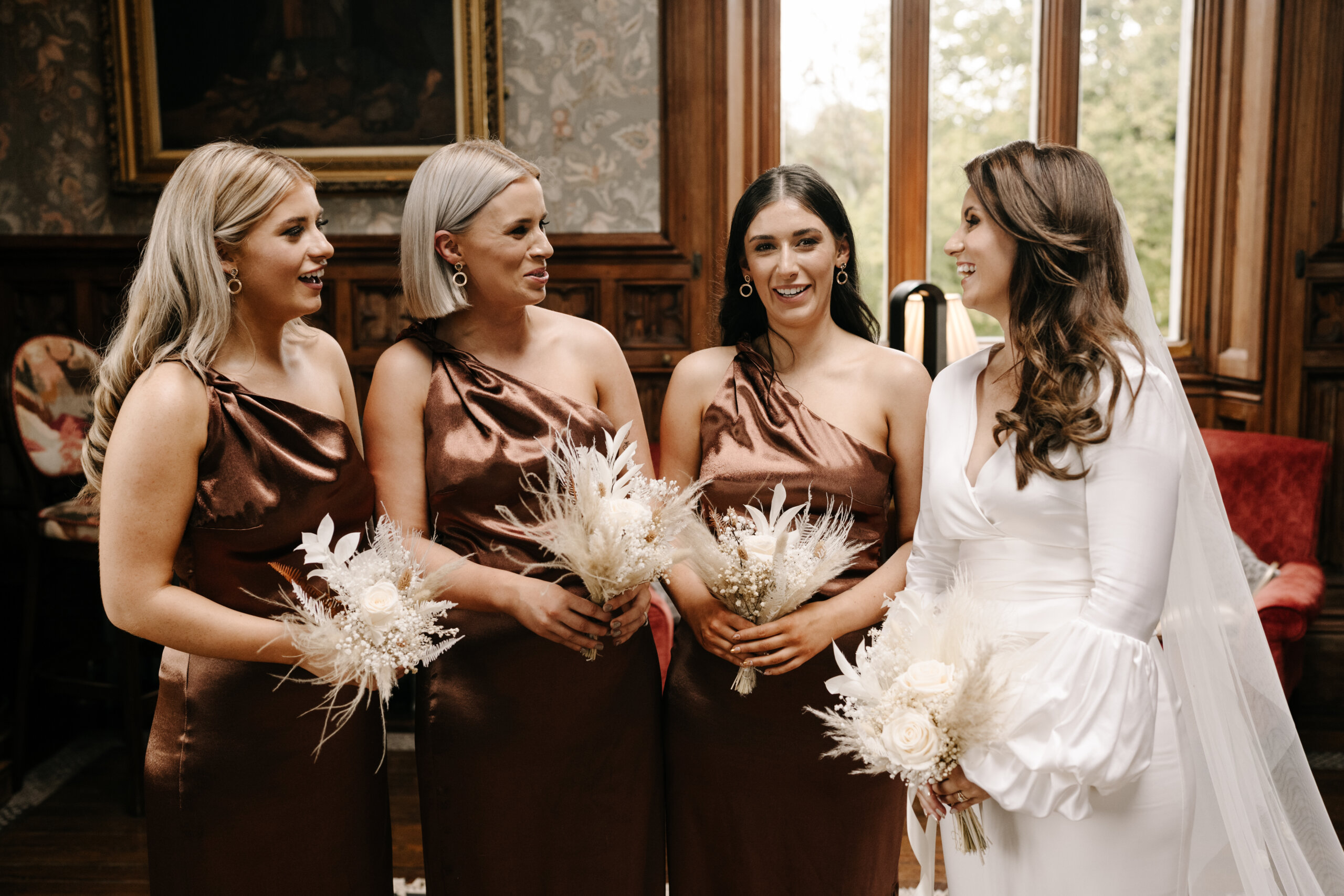 Our personalities, personal style and the time of year were the inspiration for our wedding aesthetic. Relaxed, modern, autumnal chic. We kept everything very simple, including our decor and flowers. The colours of the bridesmaids’ dresses and Simon’s suit jacket represented the autumnal theme perfectly. My vision for the flowers was neutral with a touch of autumnal tones.