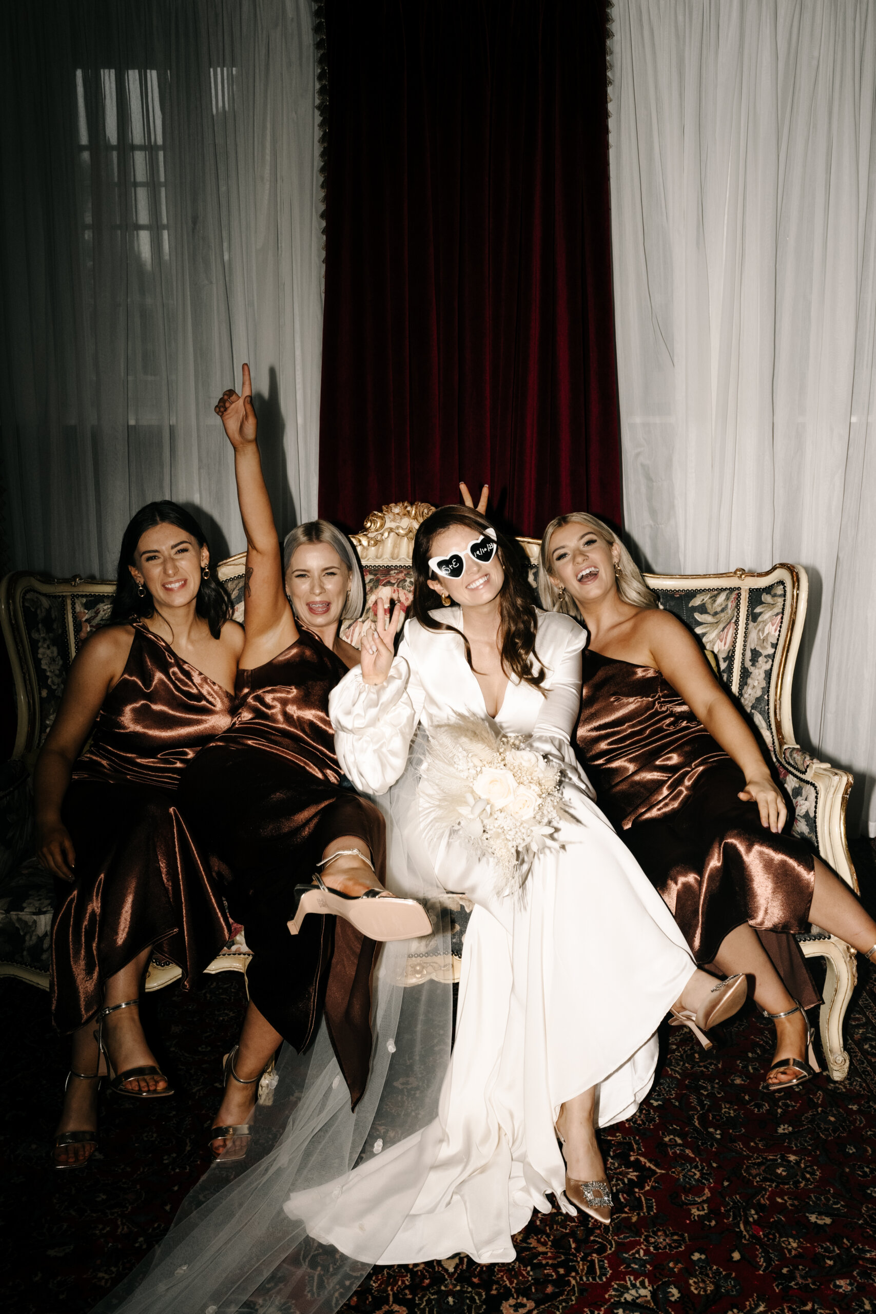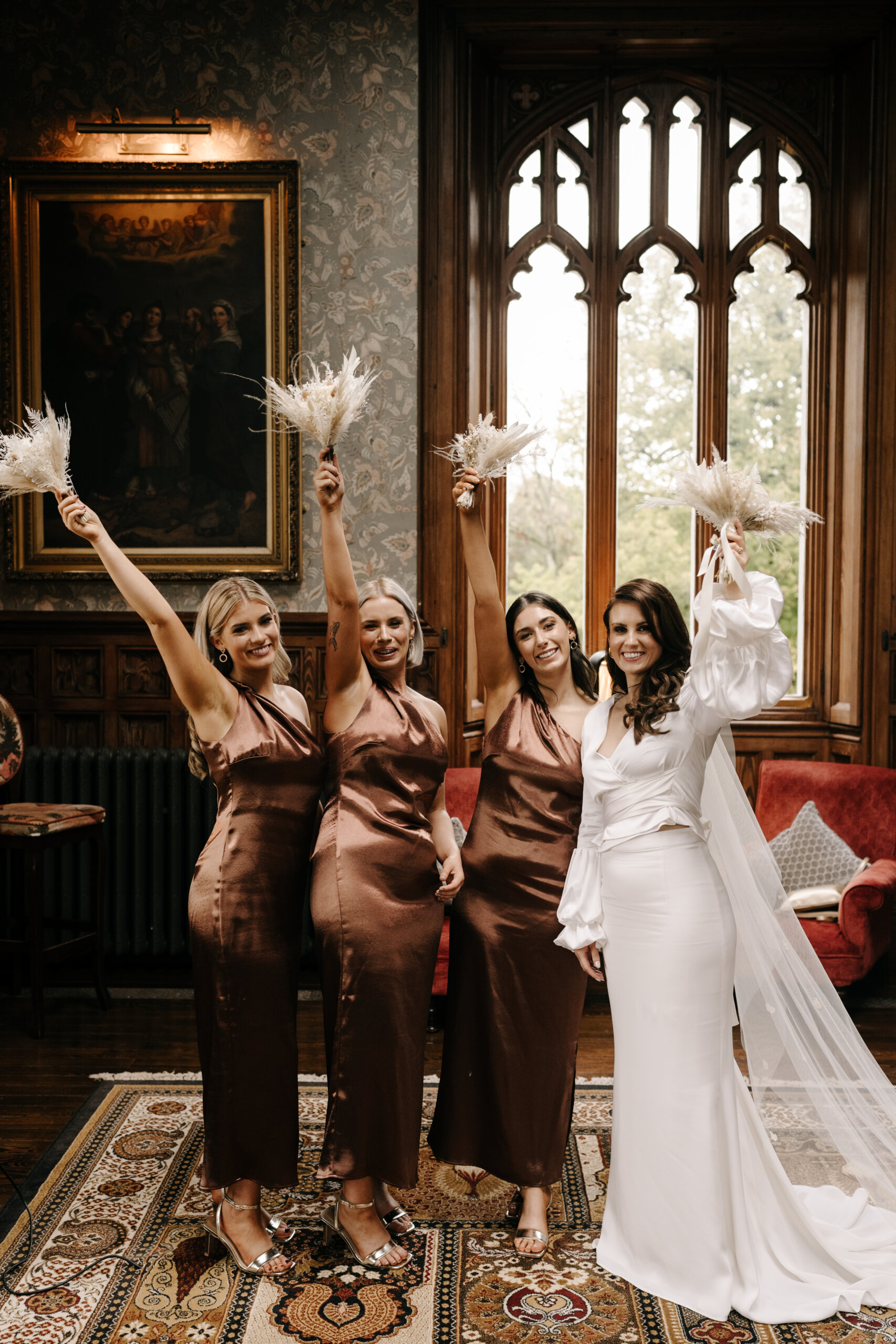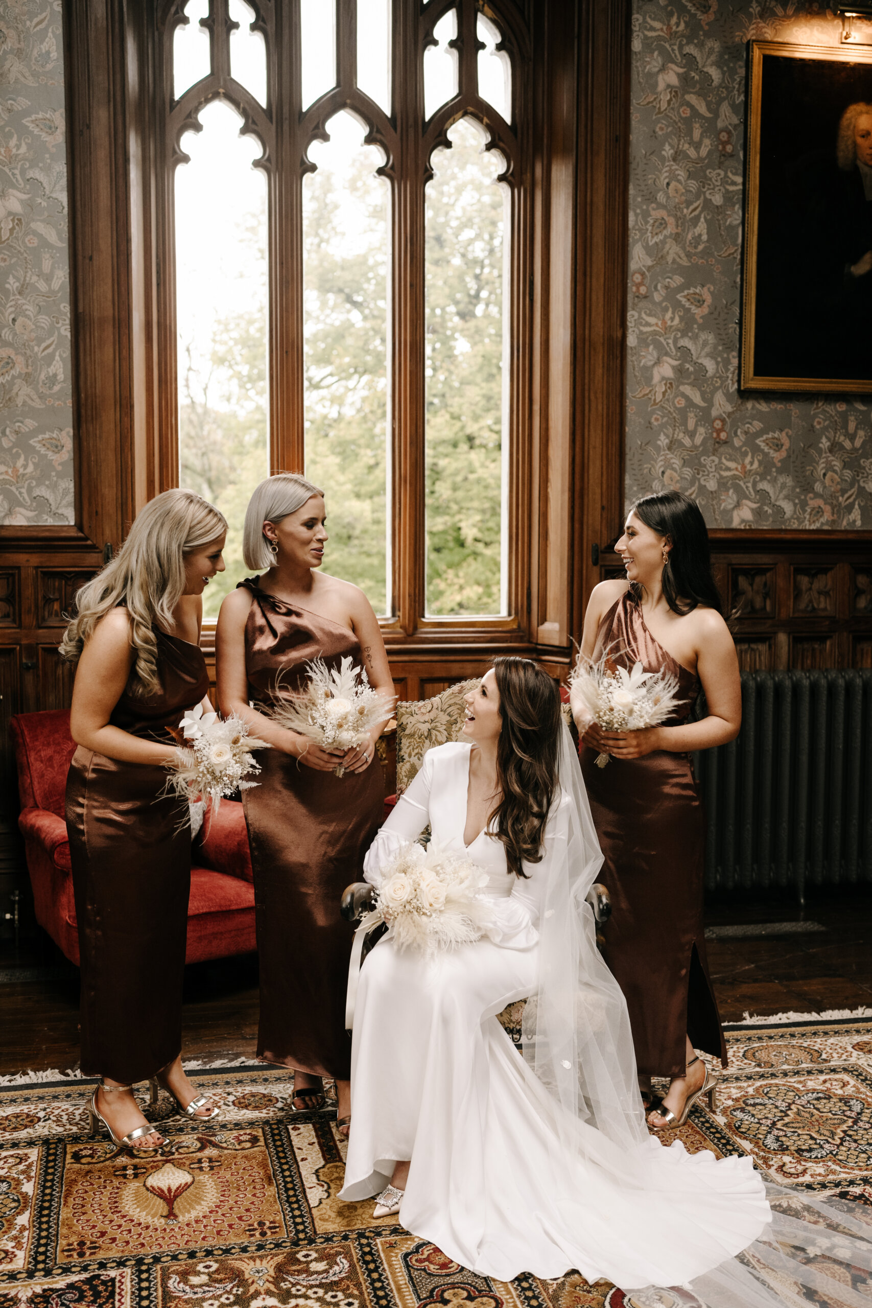 Our personalities, personal style and the time of year were the inspiration for our wedding aesthetic. Relaxed, modern, autumnal chic. We kept everything very simple, including our decor and flowers. The colours of the bridesmaids’ dresses and Simon’s suit jacket represented the autumnal theme perfectly. My vision for the flowers was neutral with a touch of autumnal tones.