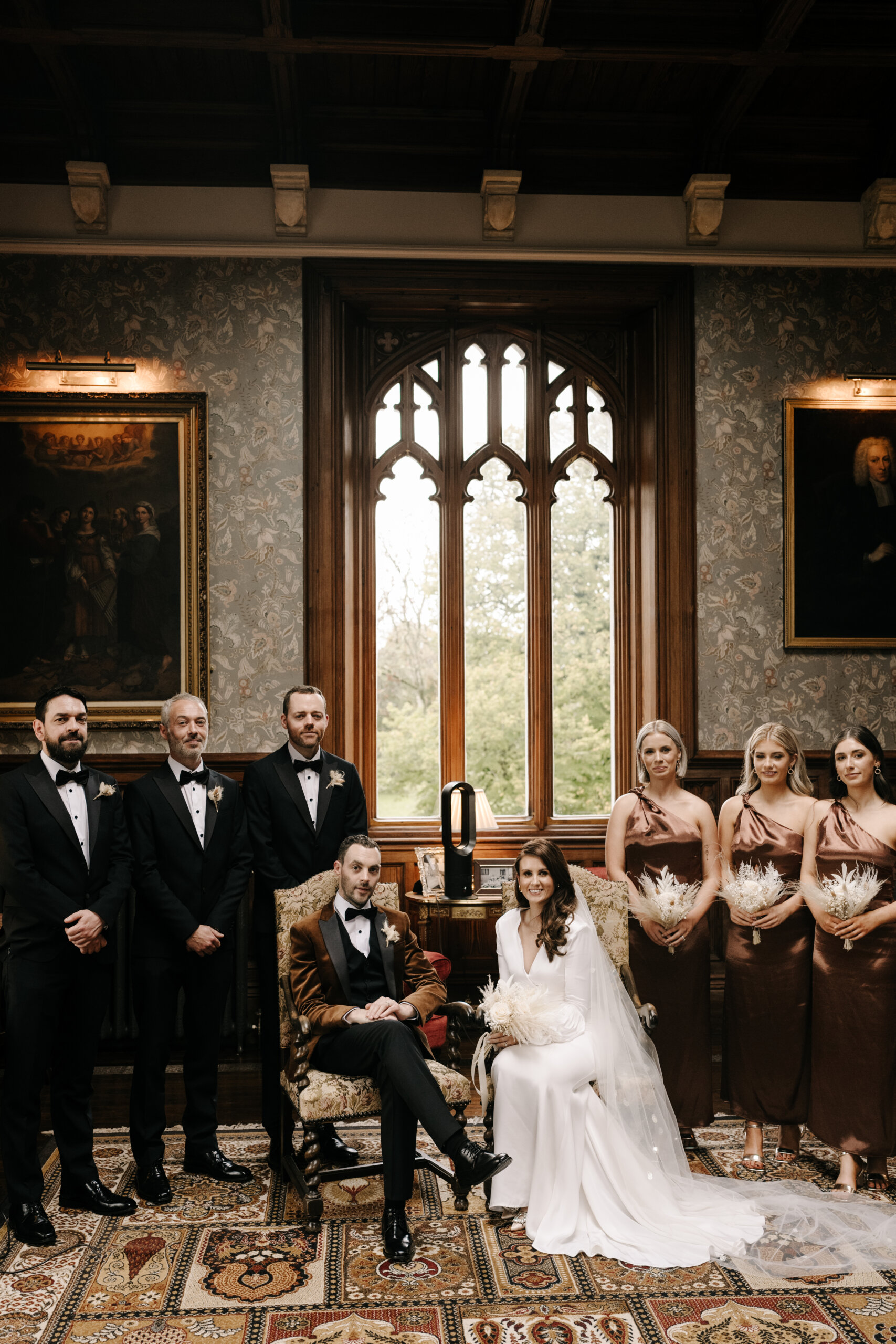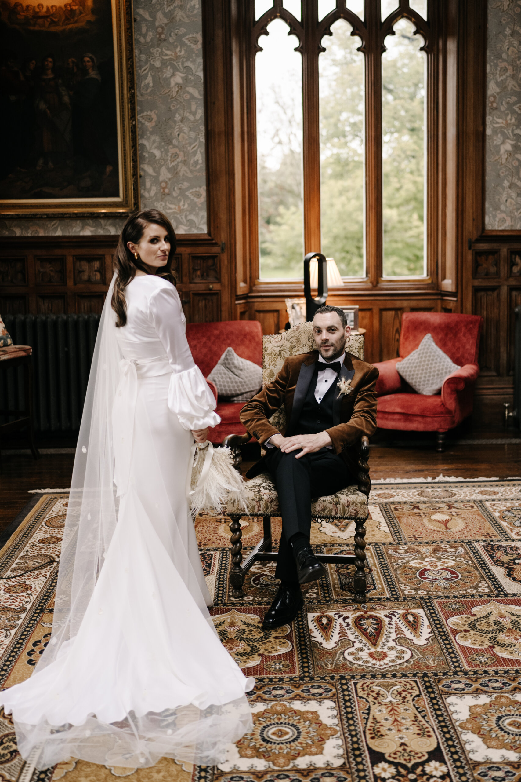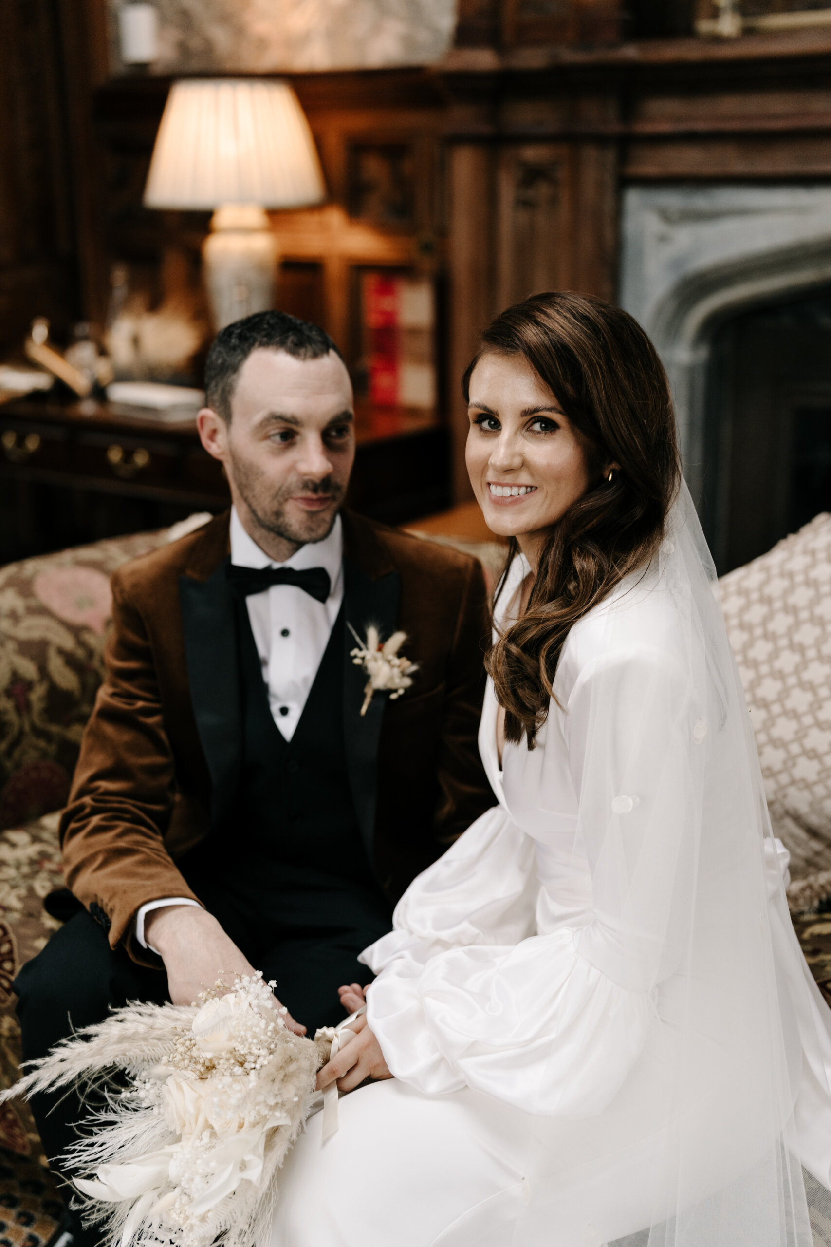 Venue: Markree Castle. Dress: Lola Varma. Bridal Boutique: White Blossom Bridal Boutique. Bridal Accessories: Veil was the chapel-length handmade Stella Veil by Blue Meadow Bridal; Earrings were the Ella Drop Earrings from PRYA Jewellery. Suit: Lavin’s Menswear, Ballymote. Bridal Party Outfits: Mother of the bride’s outfit was from McElhinney’s Ballybofey; Mother of the groom’s outfit was from Slevins Department Store. Flowers: Twig & Stem. Cake: Parklane Cakes. Stationery: Wedding Invitations from Abbie Worton Design. Make-up: Aoife Boyle. Hair: Martina from Dollhouse Hair & Beauty. Wedding Rings: Chupi. Ceremony/Reception Music: Garry Doherty. Band: The Trutones. DJ: DJ & Sax. Celebrant: Lee Gallagher from loveleeweddings.com.