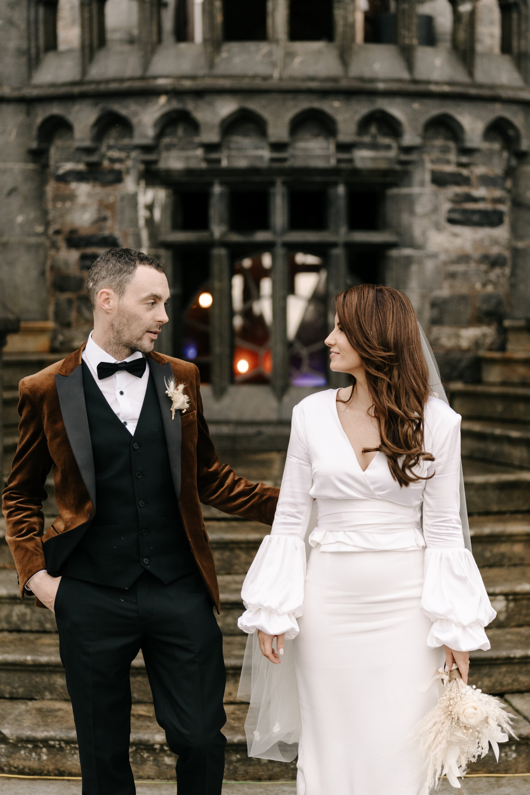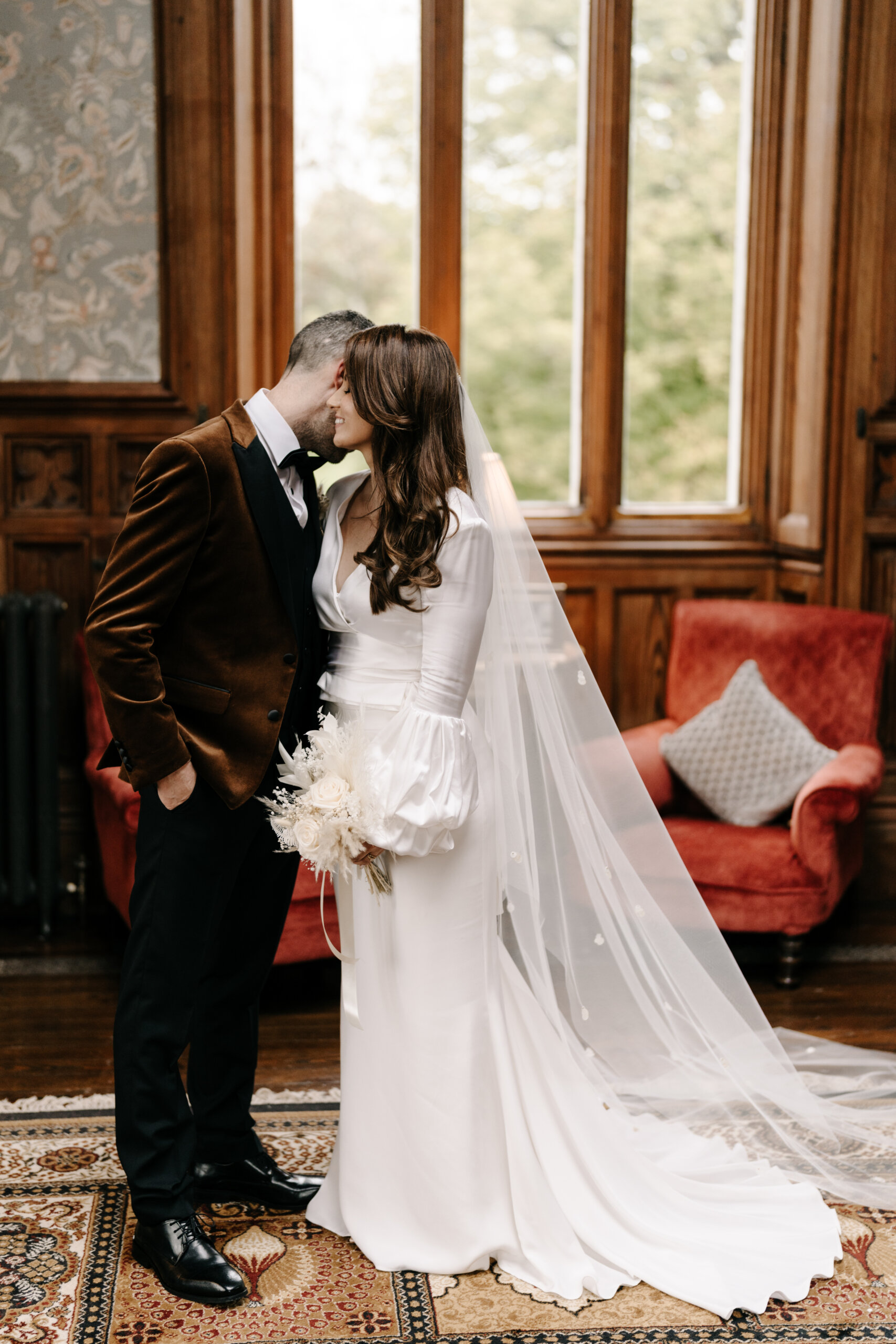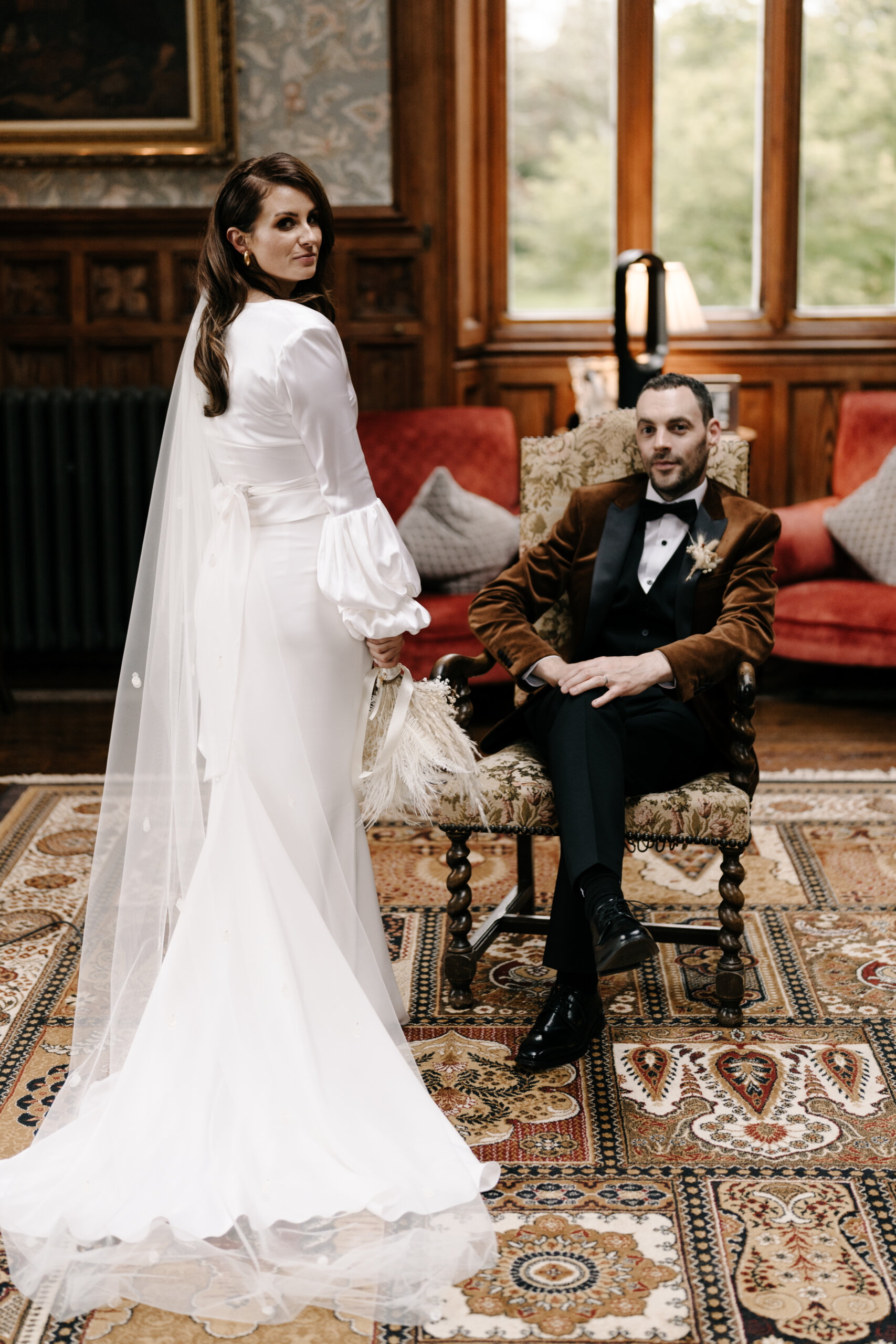 Venue: Markree Castle. Dress: Lola Varma. Bridal Boutique: White Blossom Bridal Boutique. Bridal Accessories: Veil was the chapel-length handmade Stella Veil by Blue Meadow Bridal; Earrings were the Ella Drop Earrings from PRYA Jewellery. Suit: Lavin’s Menswear, Ballymote. Bridal Party Outfits: Mother of the bride’s outfit was from McElhinney’s Ballybofey; Mother of the groom’s outfit was from Slevins Department Store. Flowers: Twig & Stem. Cake: Parklane Cakes. Stationery: Wedding Invitations from Abbie Worton Design. Make-up: Aoife Boyle. Hair: Martina from Dollhouse Hair & Beauty. Wedding Rings: Chupi. Ceremony/Reception Music: Garry Doherty. Band: The Trutones. DJ: DJ & Sax. Celebrant: Lee Gallagher from loveleeweddings.com.