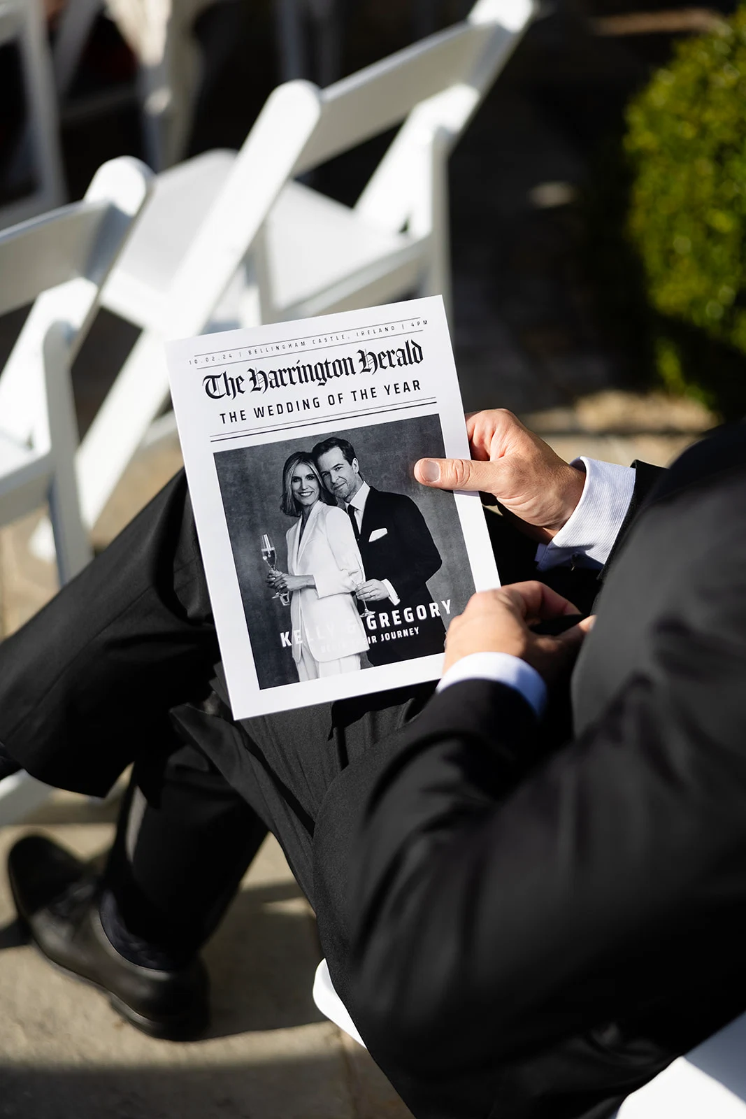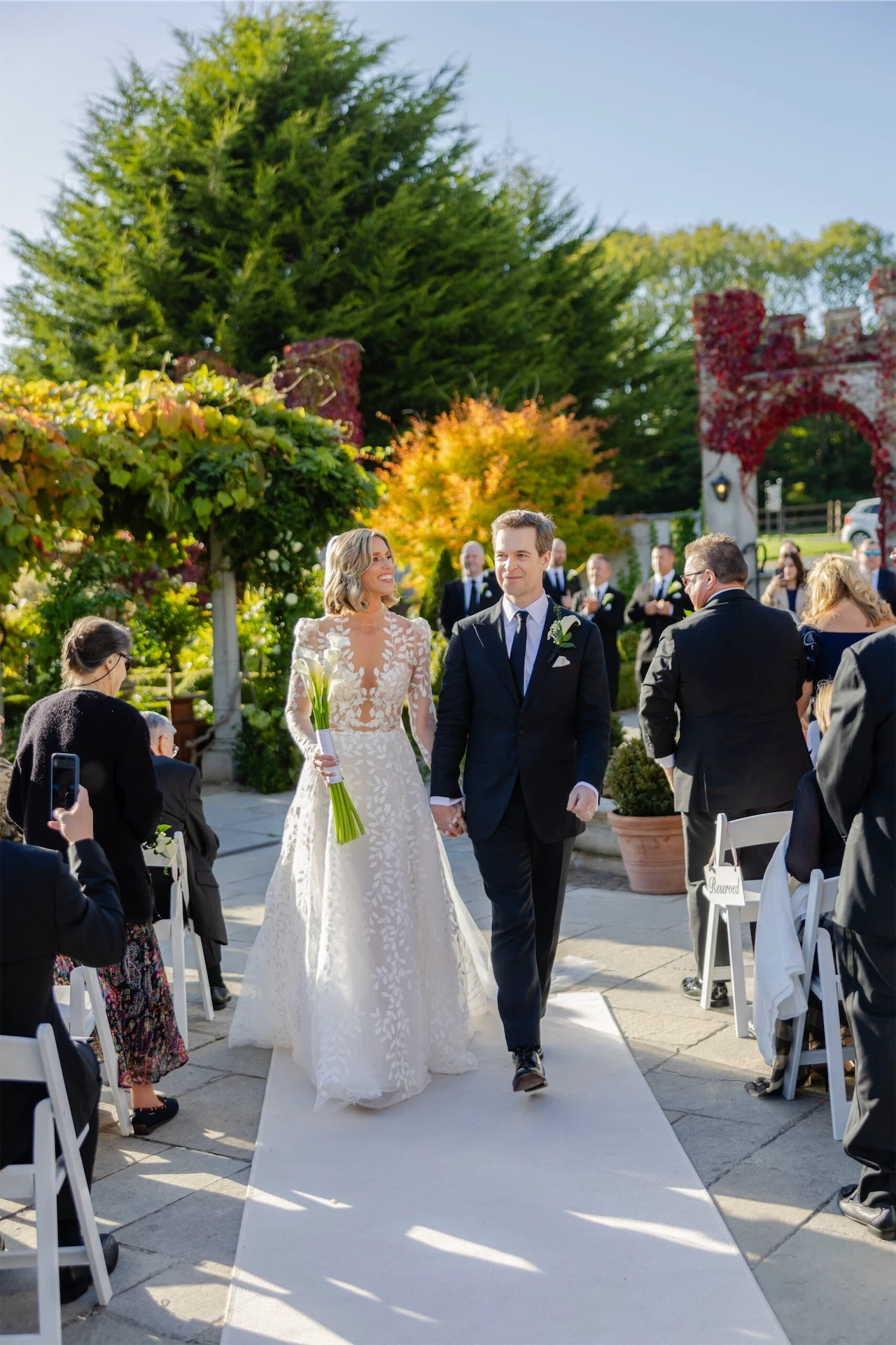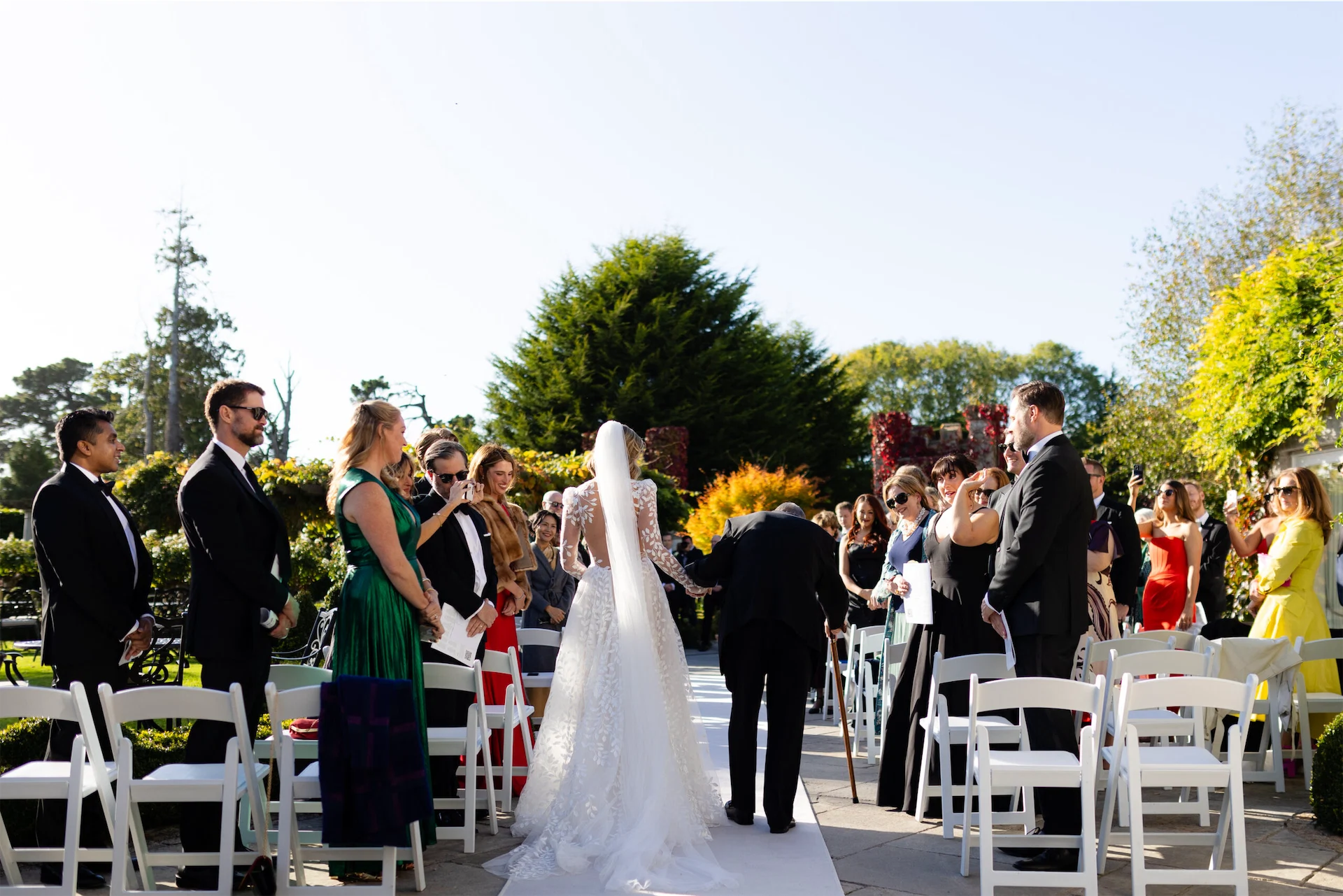 Held on October 2, 2024, the wedding took place at Bellingham Castle. We exchanged vows in an outdoor ceremony surrounded by lush castle grounds/gardens and 120 of our closest family and friends from all over the world. Our dear friend, David O’Leary, served as the officiant. As one of the first individuals who got to know us as a couple, he delivered the perfect mix of humour and heartfelt commentary.