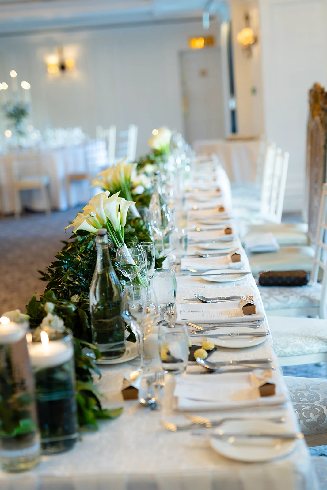 The reception took place in the Bute Suite, an elegant yet welcoming space where guests enjoyed a beautifully prepared gourmet meal, punctuated by humorous and heartfelt speeches and toasts. Amongst the courses, we chose to serve nettle soup as part of the dinner — a meaningful nod to Irish tradition and a tribute to the many loved ones who had travelled to be with us. Greg also curated the playlists for the reception and dinner, incorporating songs that had personal significance for everyone in the room – some of which were his late parents’ favourite pieces.